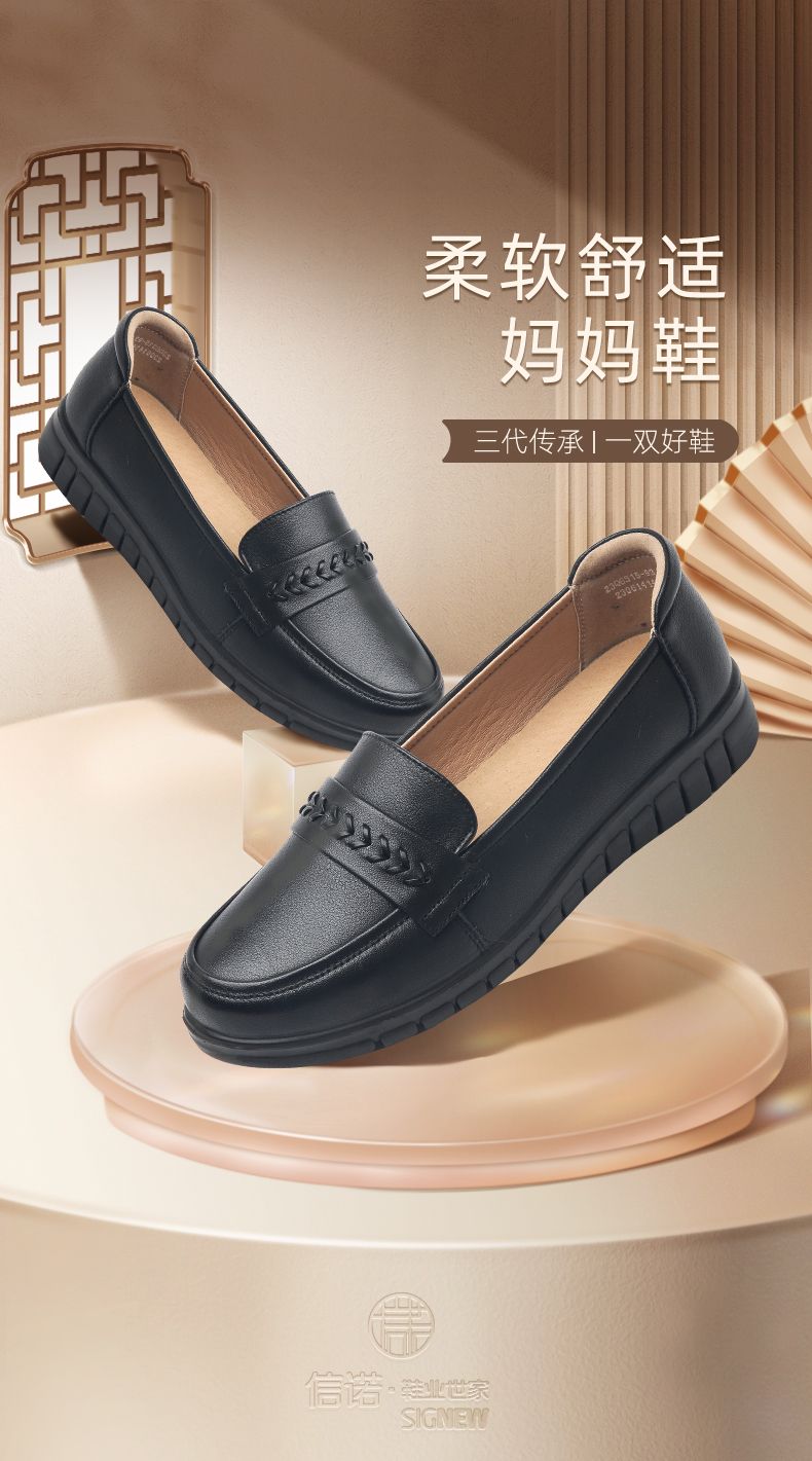 信诺真皮软底妈妈鞋透气中老年单鞋女轻便舒适平底中年休闲皮鞋23Q6315-93
