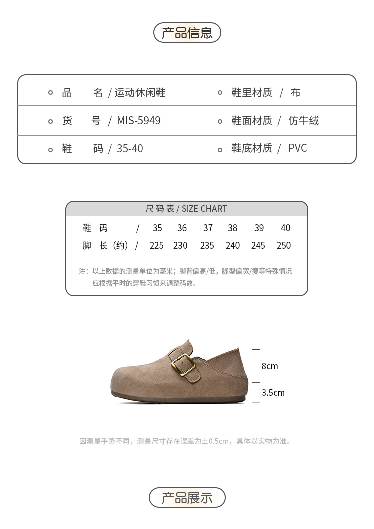【YW】无忧购春季新款厚底百搭舒适两穿一脚蹬勃肯休闲鞋MIS-5949(3.7截单后3-7天发货)