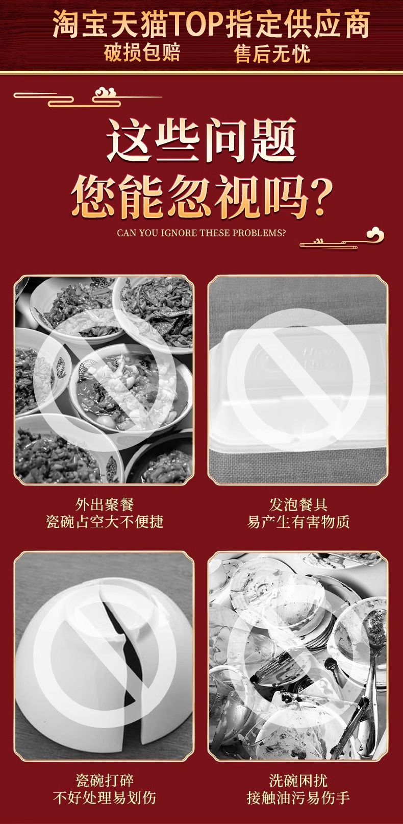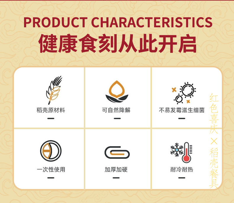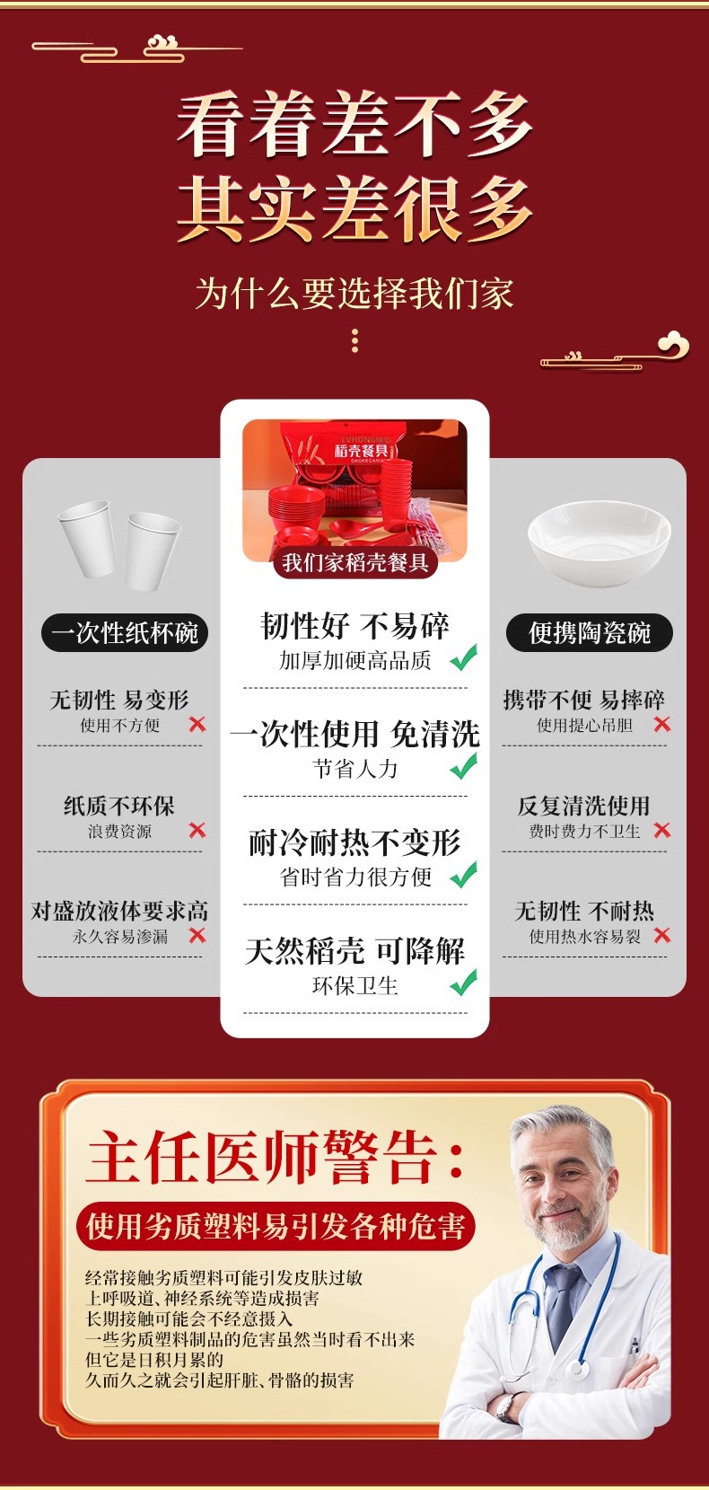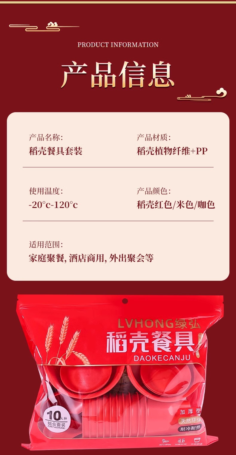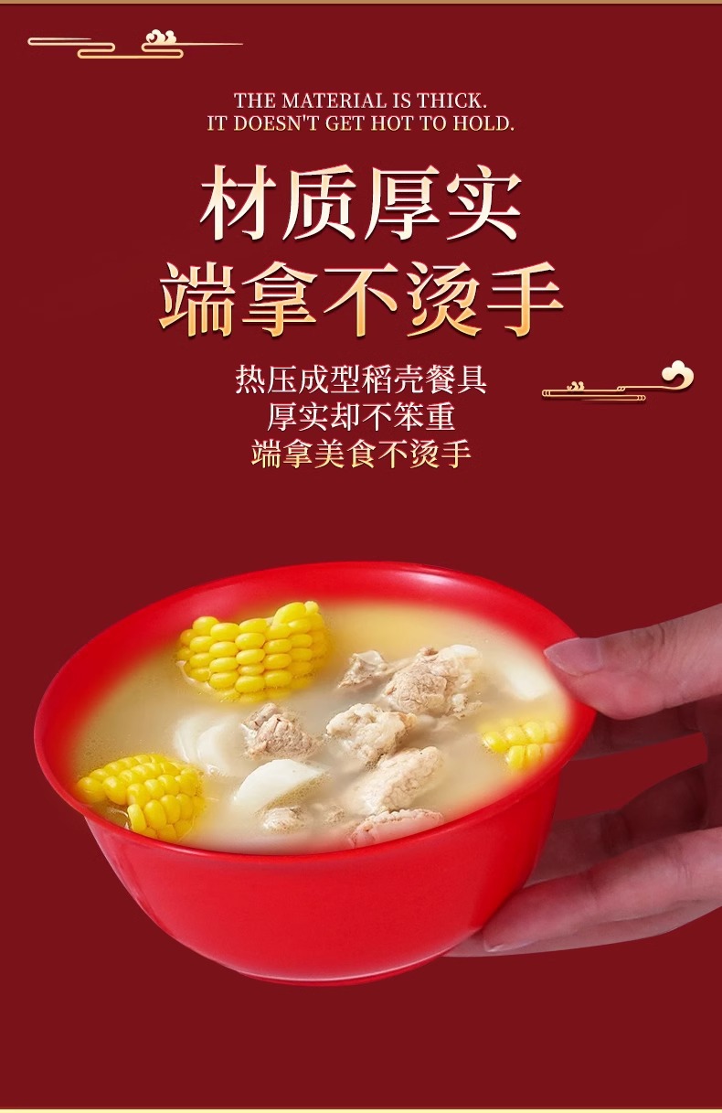 「19.9到手10人份!一次性套装」一次性碗筷杯三件套 组合酒席用红色婚宴新年过年家用套装稻壳餐具10人份餐饮用具