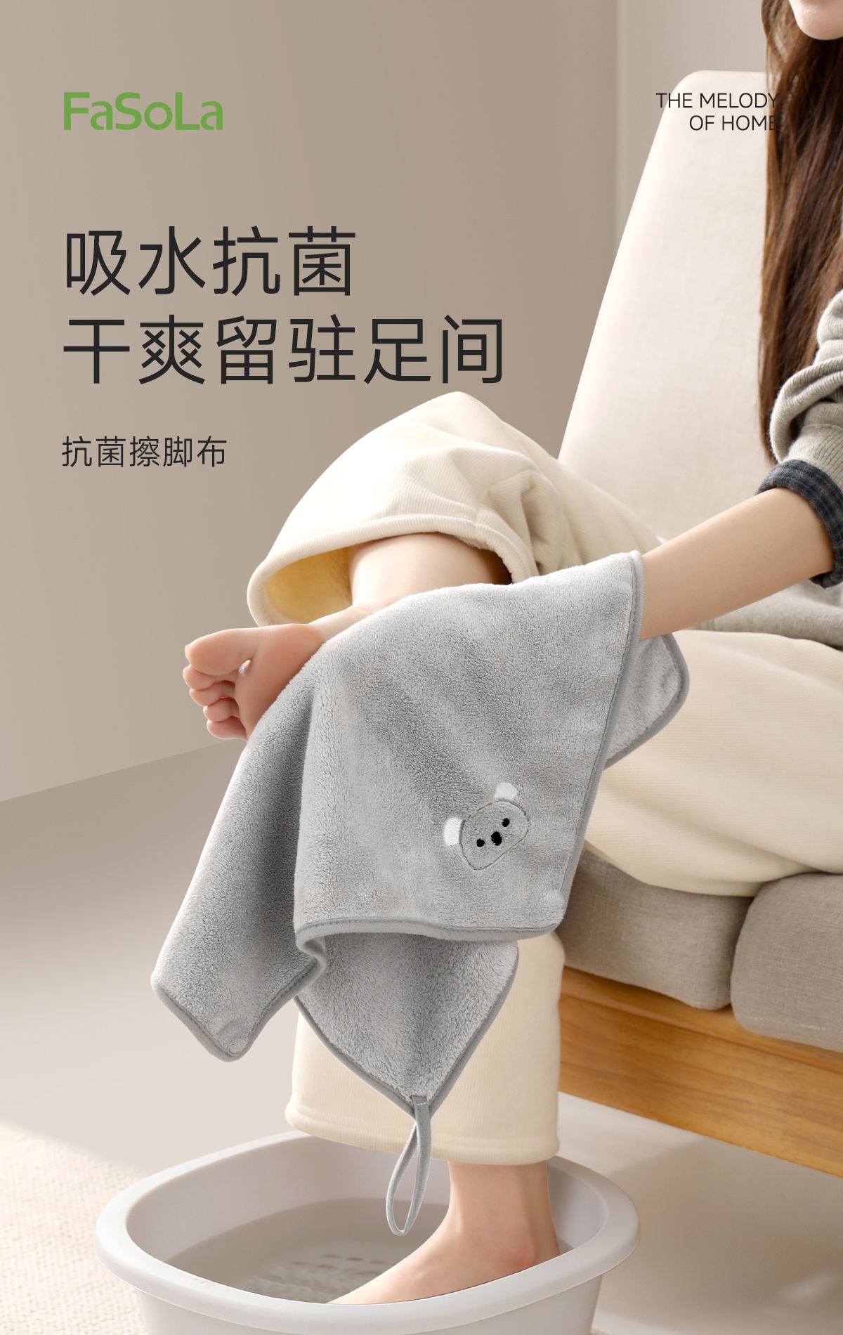 FaSoLa抗菌擦脚巾家用擦脚布洗脚毛巾加厚成人足浴专用儿童吸水布