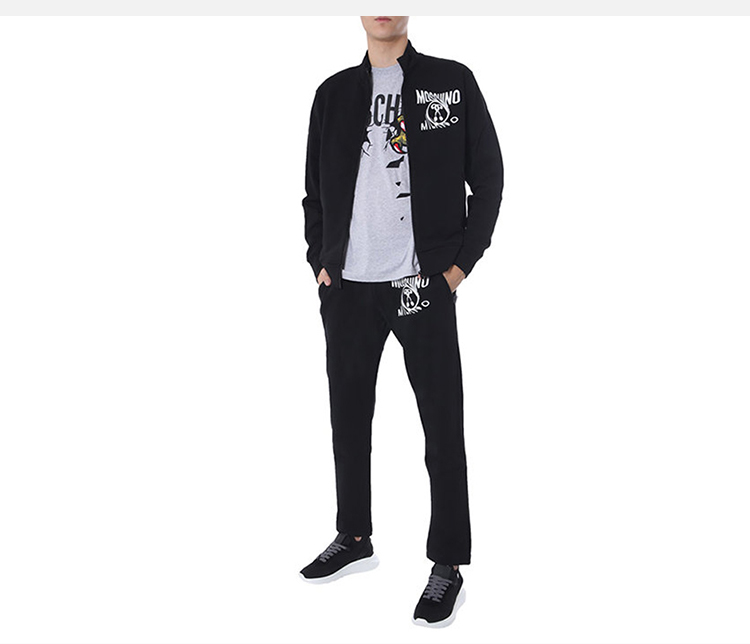 MOSCHINO 莫斯奇诺 男士棉质徽标印花休闲运动裤 黑色 0333 0227 1555