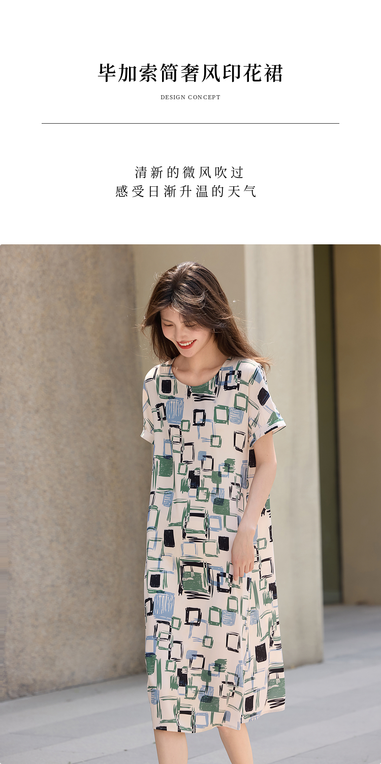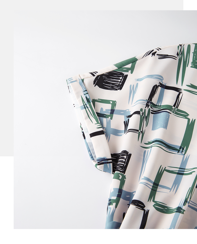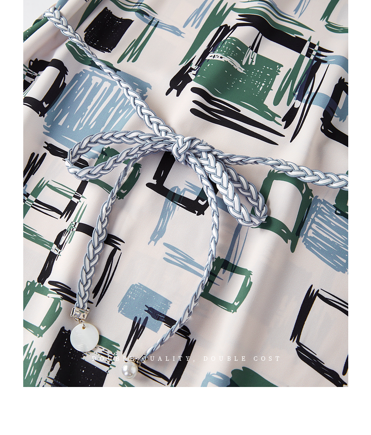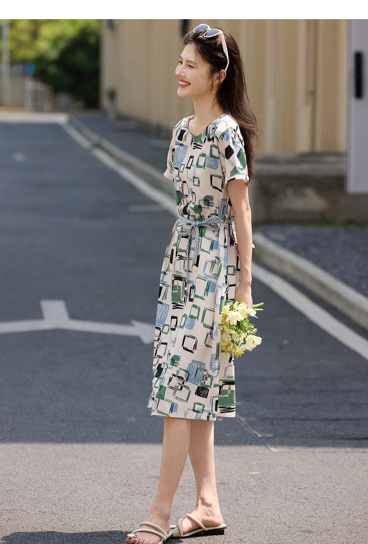 【专属特价】熙世界艺术感涂鸦格子印花连衣裙女夏新款气质度假风系带显瘦裙子