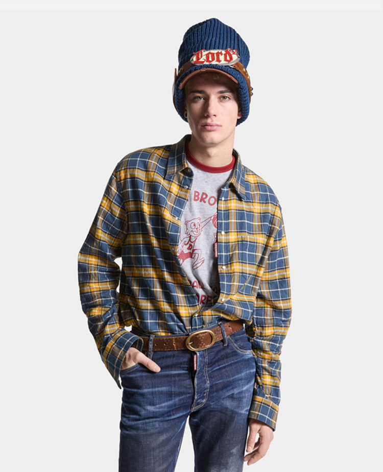 DSQUARED2 男士法兰绒棉质长袖衬衫 格子色 S71DM0739 D35132 002F