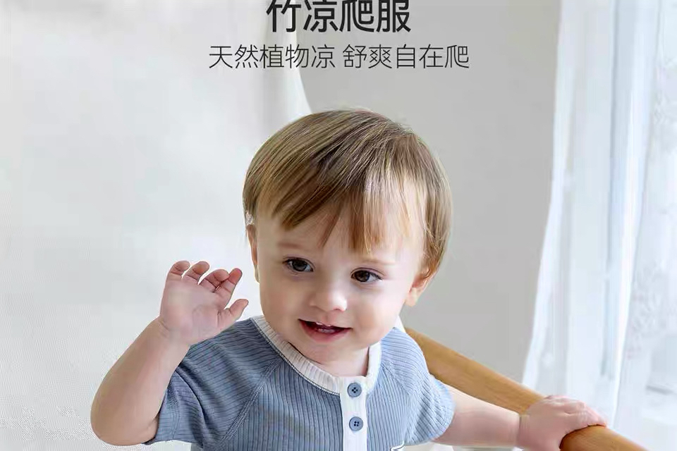 Domiamia 男女宝宝针织短袖前中开爬服 新生儿竹纤维凉感连体衣
