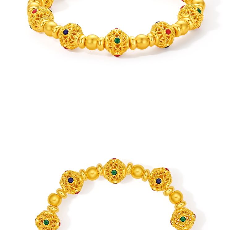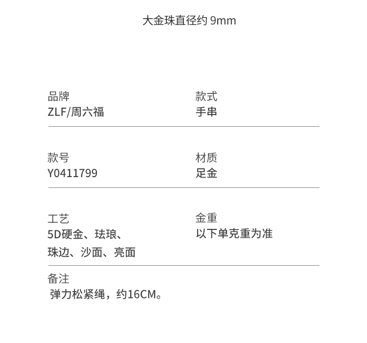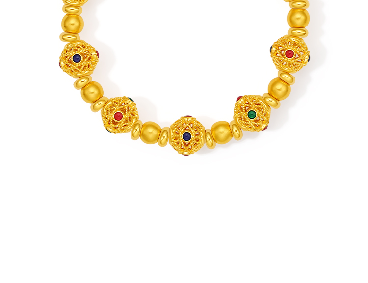 周六福黄金手串女款5d硬金花丝金珠珐琅绣球定价旗舰店送礼物官方