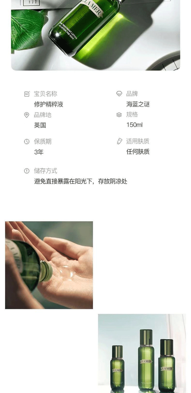 【全球购A义乌】【铁三角】海蓝之谜精粹水150ml+希思黎全能乳液125ml+娇韵诗(第九代)经典双萃精华50ml 请单拍-合并订单不发货