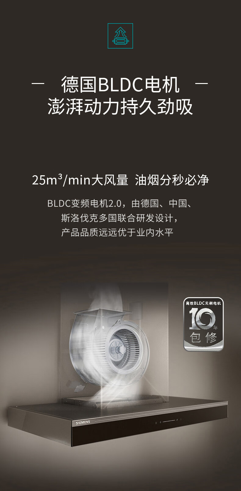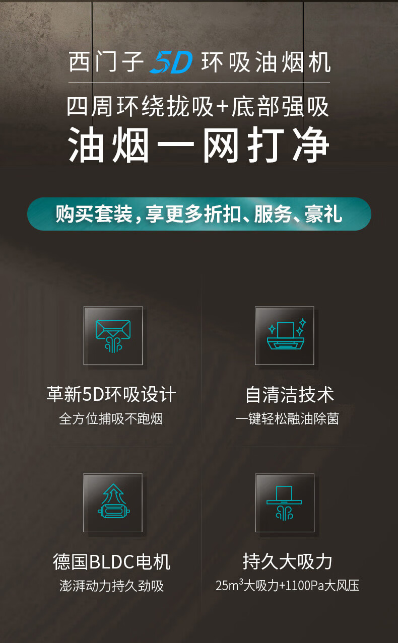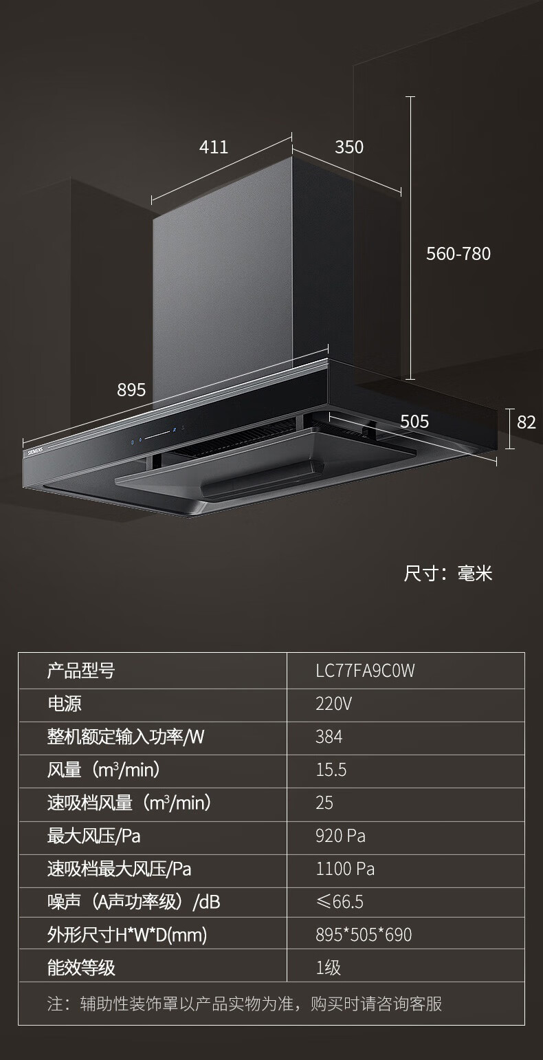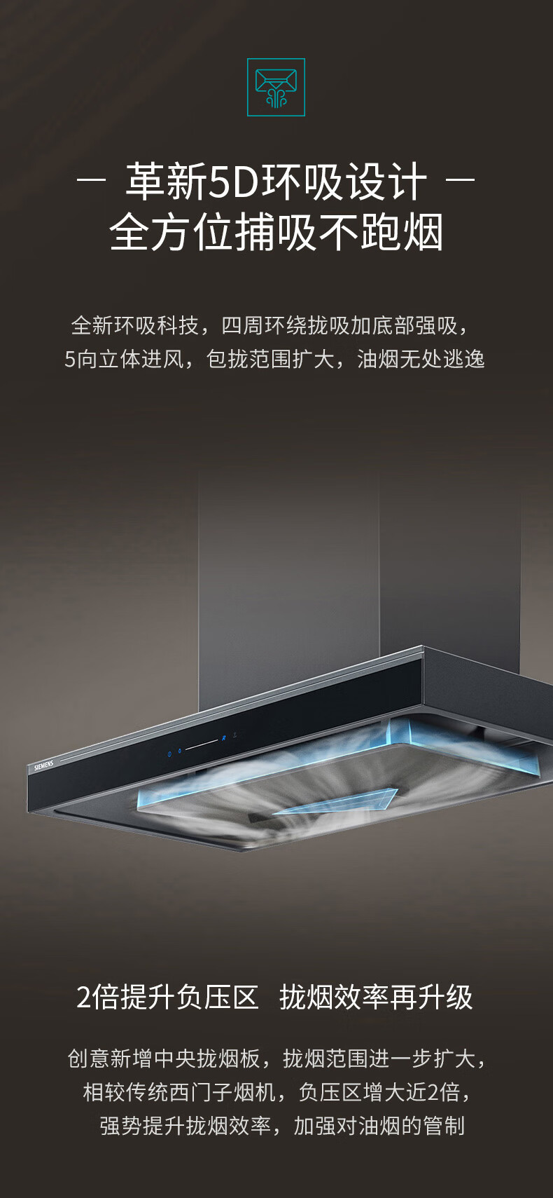 西门子(SIEMENS)欧式5D环吸油烟机 25立方持久大吸力 高效BLDC无刷电机德系精工高颜值抽油烟机LC77FA9C0W