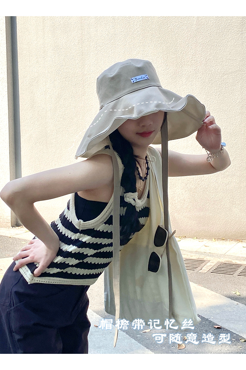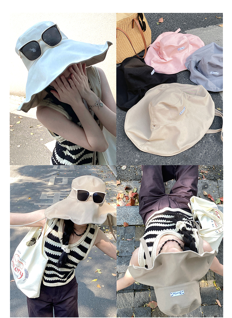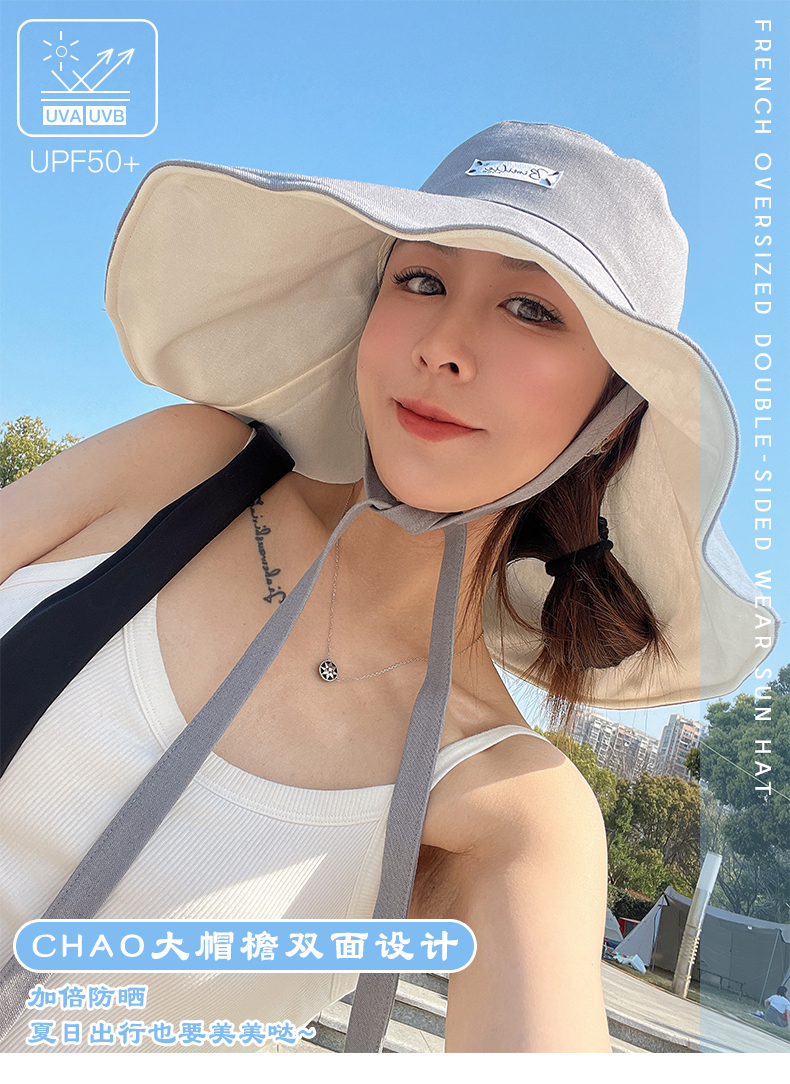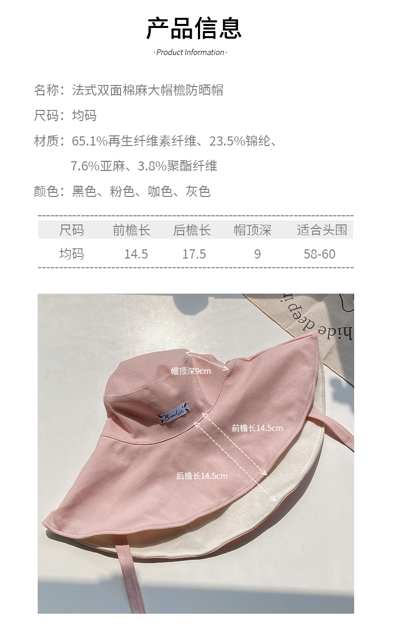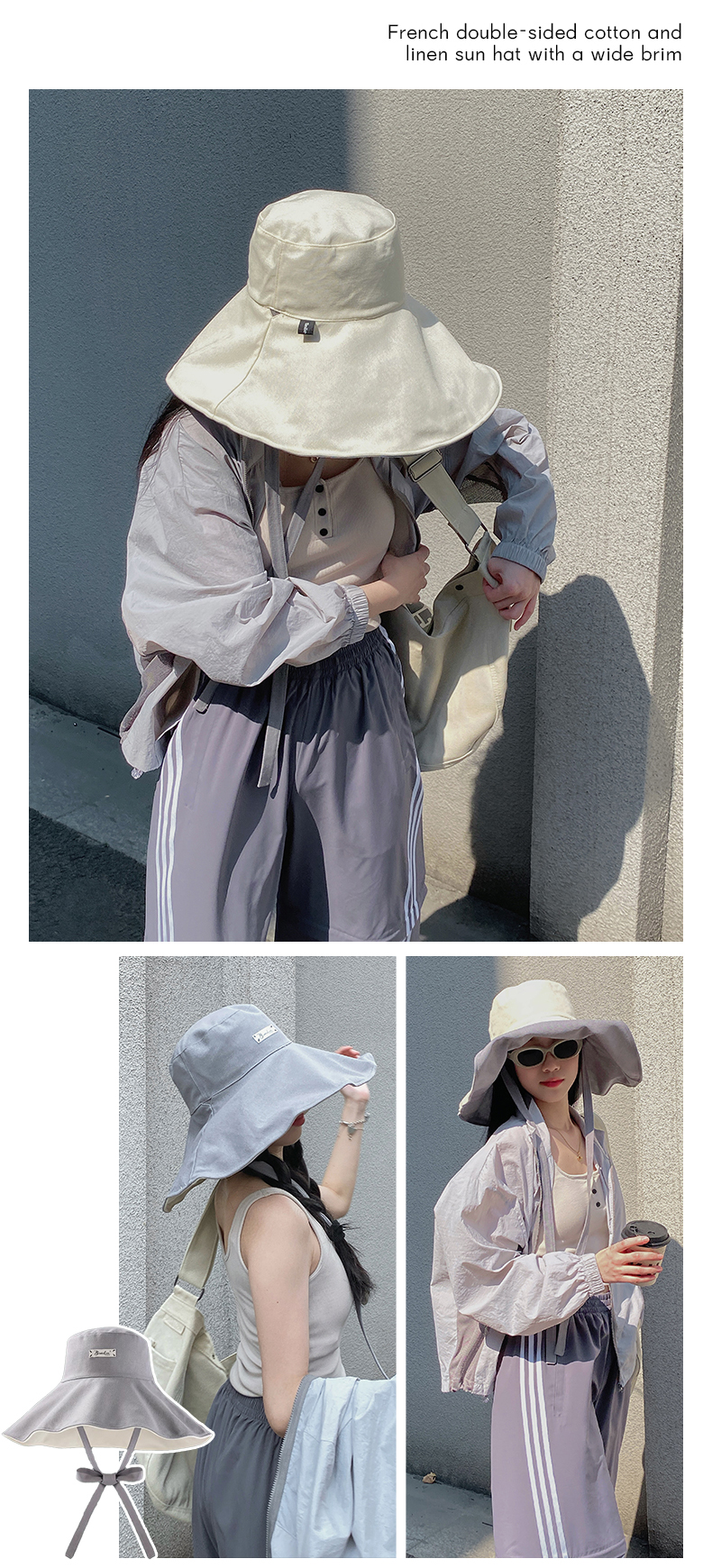 【法式双面棉麻大帽檐防晒帽】UPF50+大帽檐,防晒至脖颈!防风挂绳,双面可戴!随意折叠,方便收纳!莫兰迪配色,怎么搭配都很时髦!