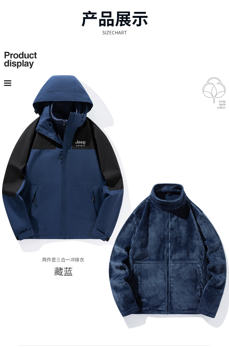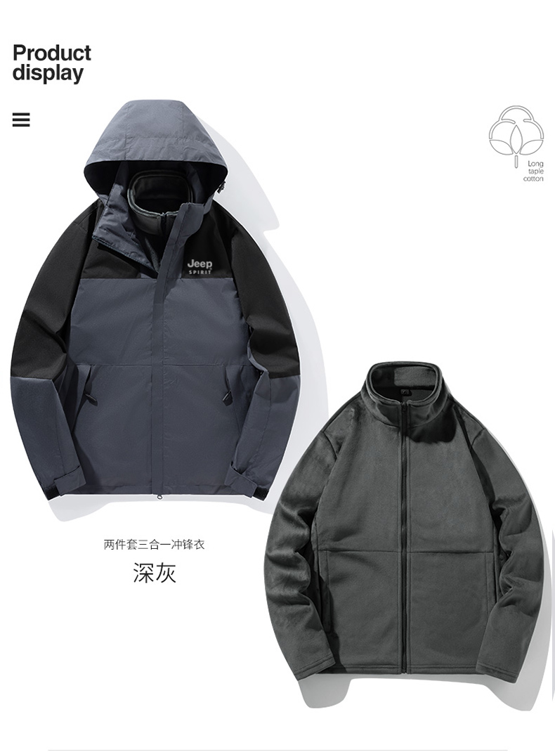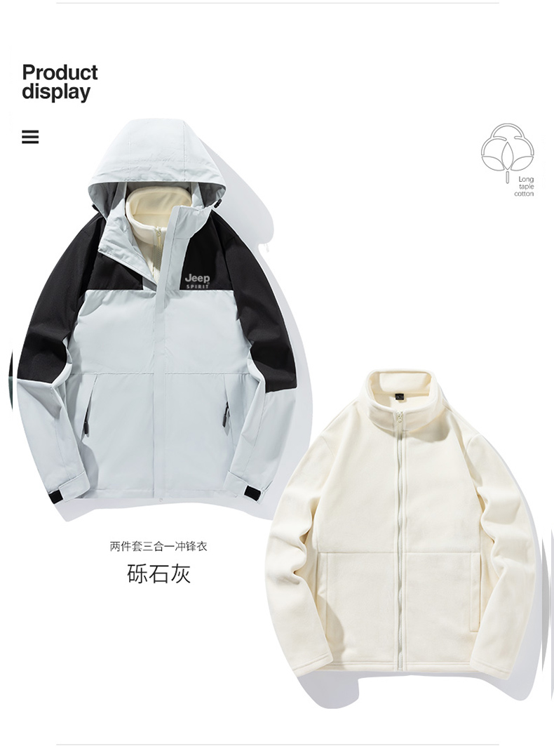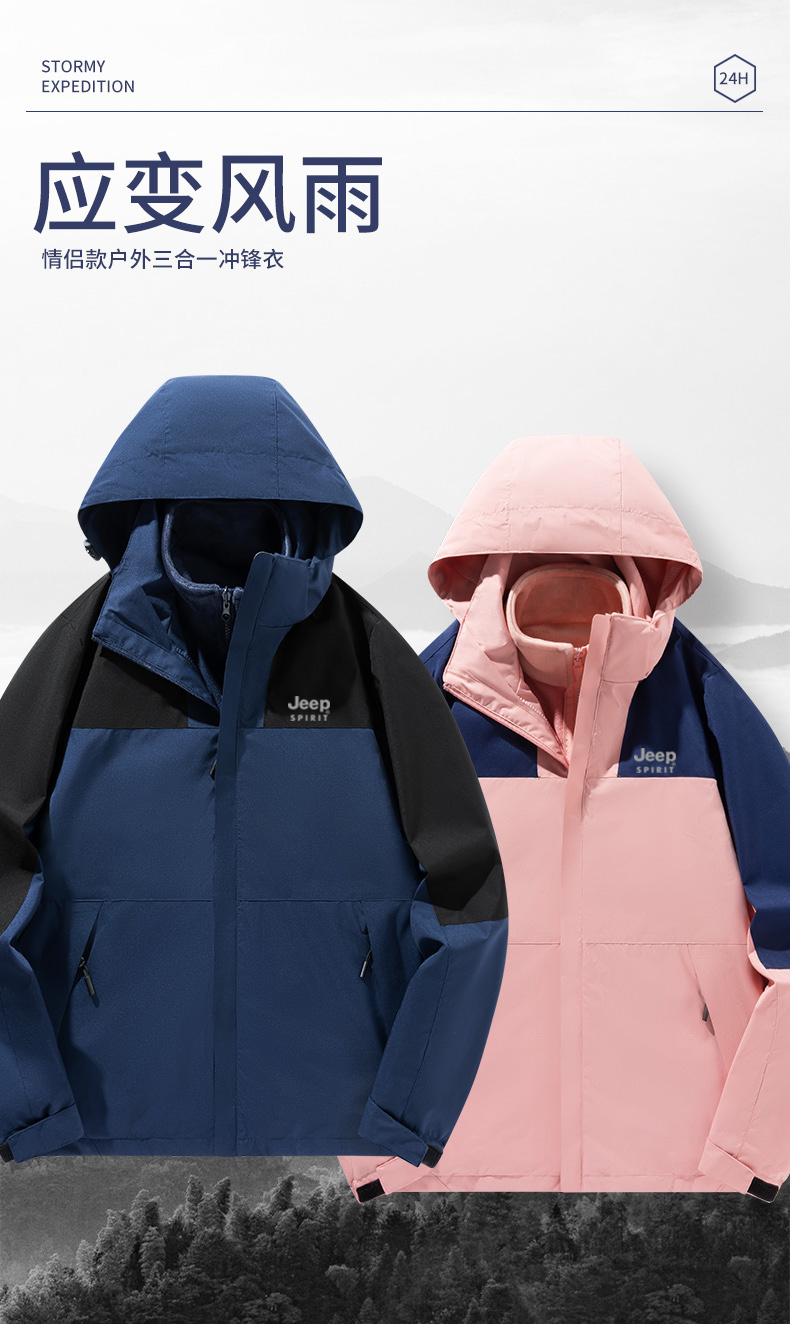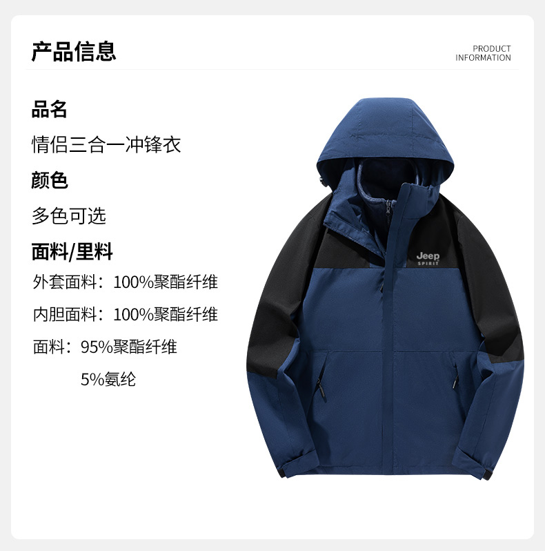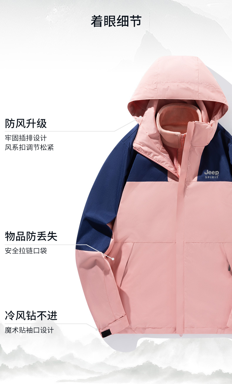 【反季清仓】 JEEP SPIRIT吉普三合一冲锋衣JP-DN2308SHY款情侣款户外防风防水登山服 可拆卸内胆外套