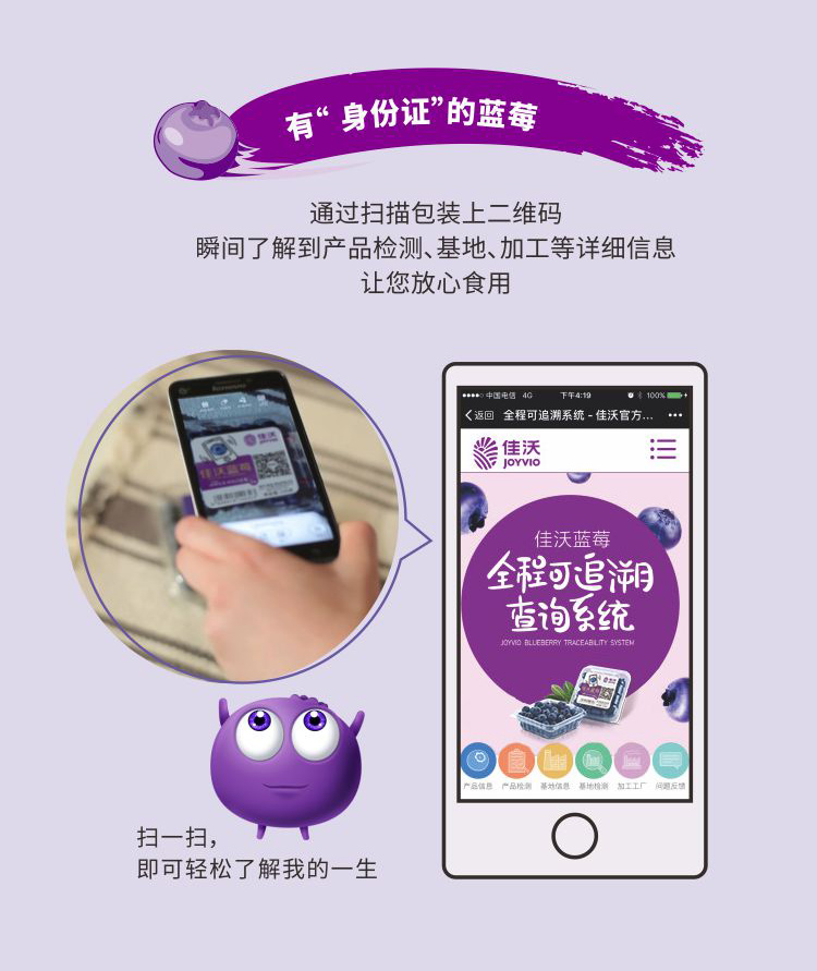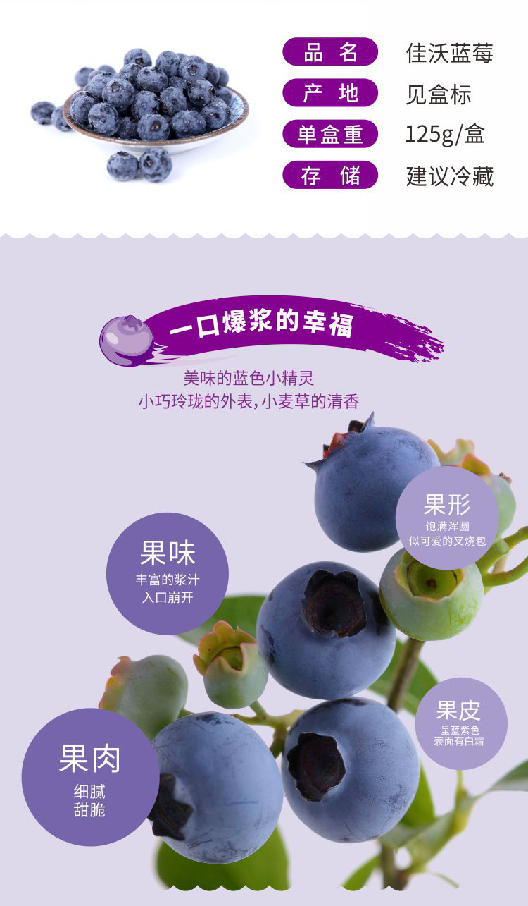 佳沃蓝莓125g*4盒精选山地蓝莓 礼盒装新鲜当季水果 18mm+