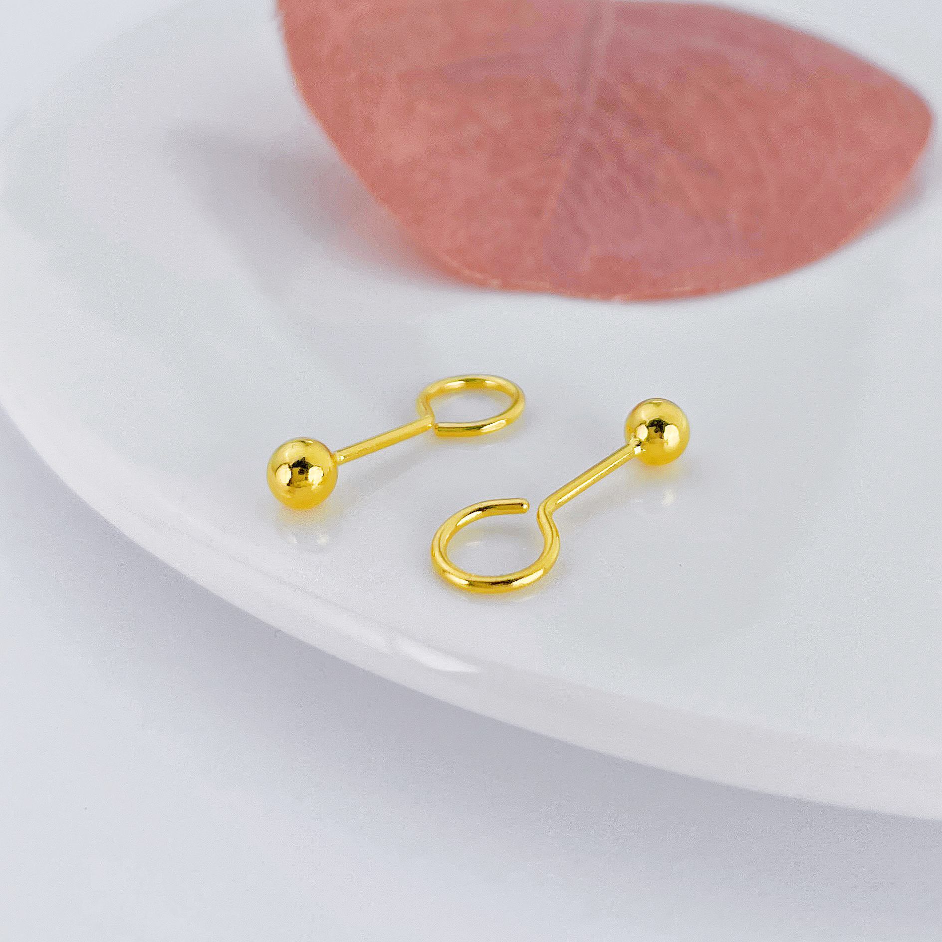 【限时克减150元】足金999 (足金999字印)5G黄金空心光珠圆珠泡钉耳钉(约3.8mm)(5GES00426-02)(预售产品下单后不退款不退货不换货不补差价)