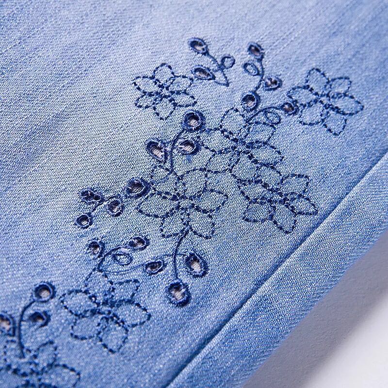 氏牛仔裤春秋新款休闲长裤柔软牛仔布裤子百搭绣花弹性182A0067