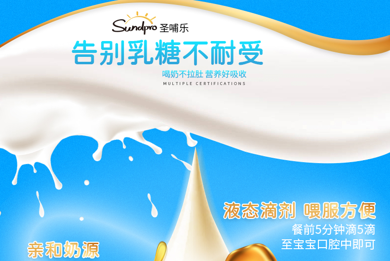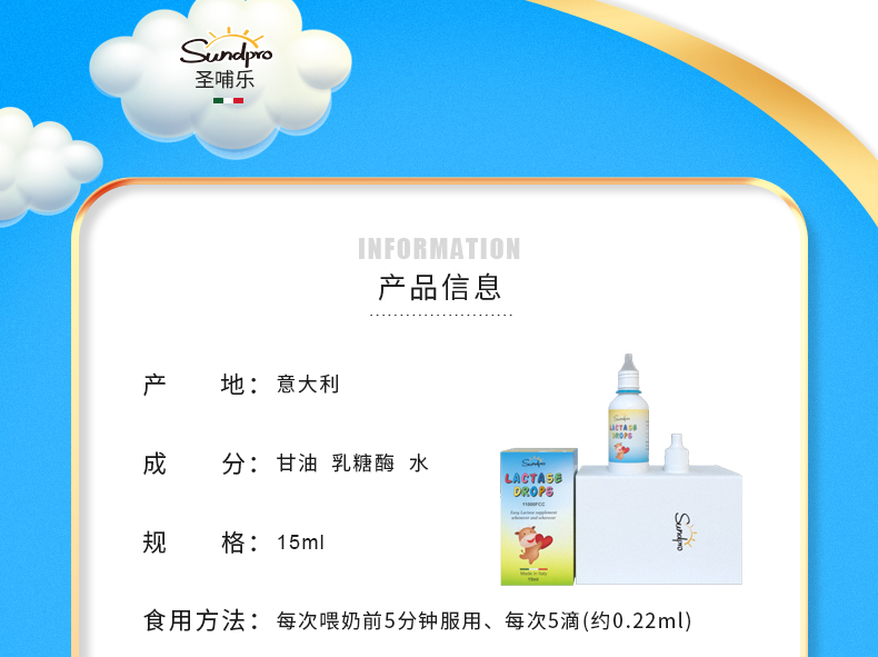 圣哺乐酸性乳糖酶滴剂婴儿婴幼儿大人乳糖不耐受检测试乳糖酶15ml