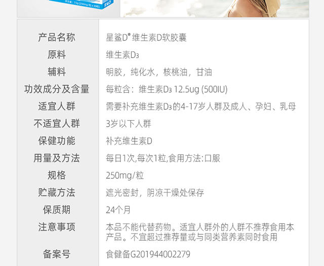 星鲨 星鲨D维生素D软胶囊30粒*3盒 3岁以上