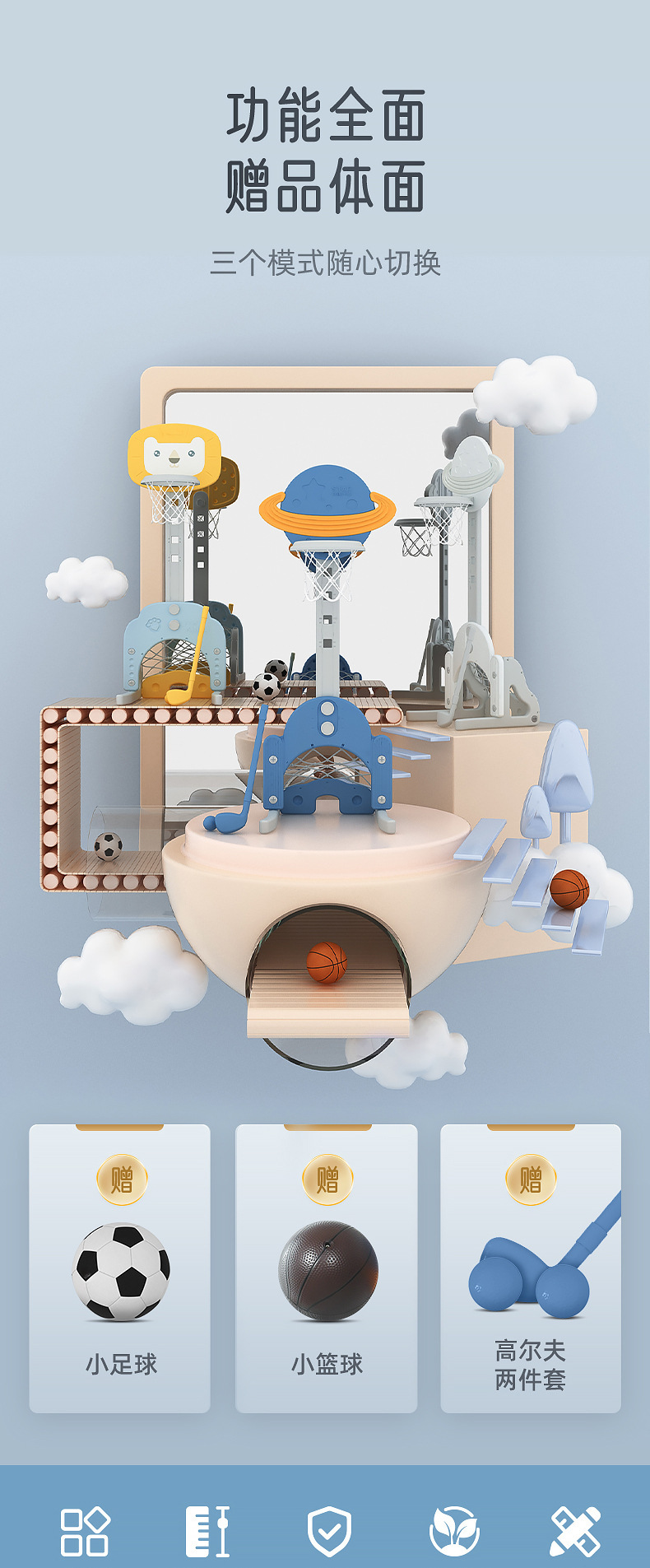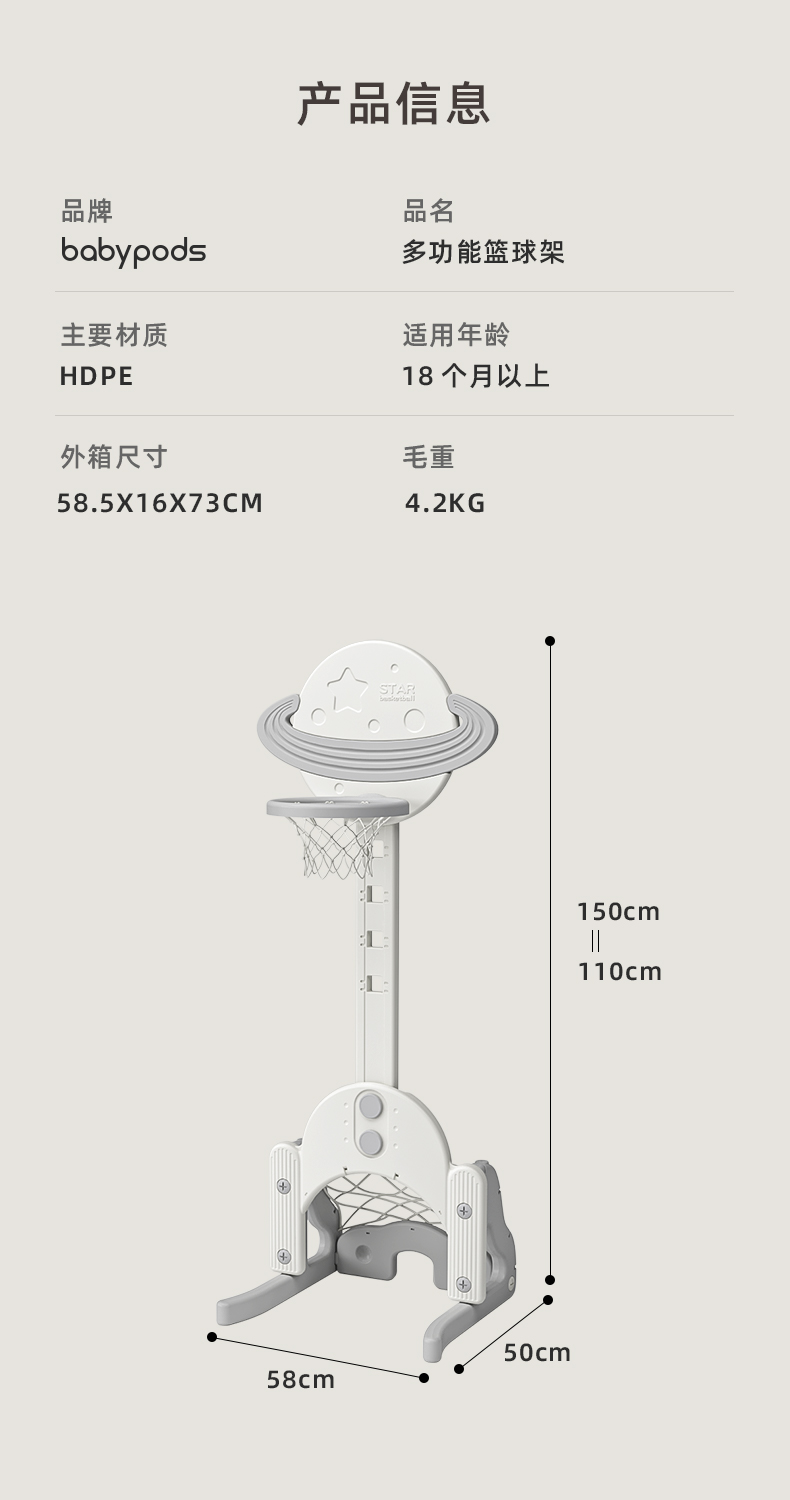 【“爱动宝宝”好礼物】babypods多功能可升降篮球架 「赠三种球」儿童室内家用篮球框 投篮架 篮球/足球/高尔夫 宝宝玩耍不扰民