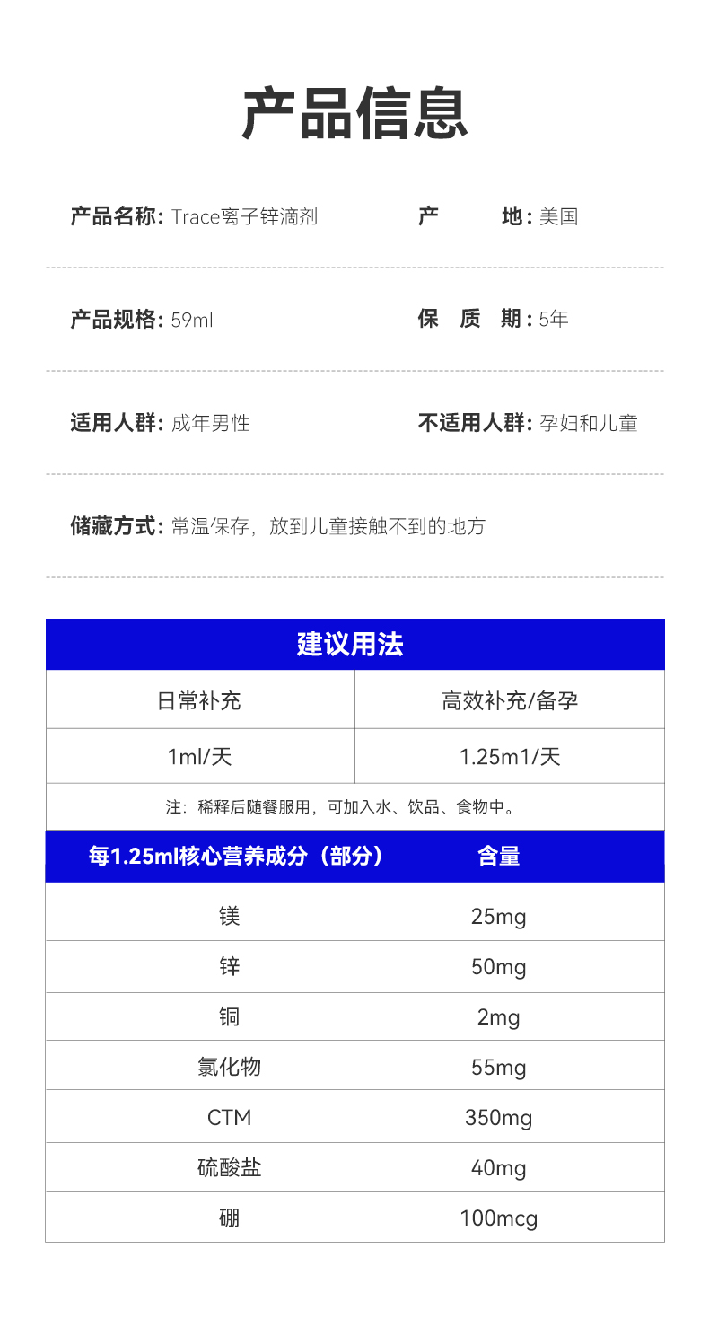 TRACE牌液态离子锌滴剂59ML
