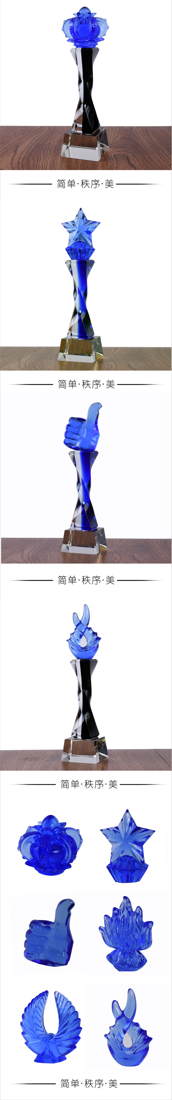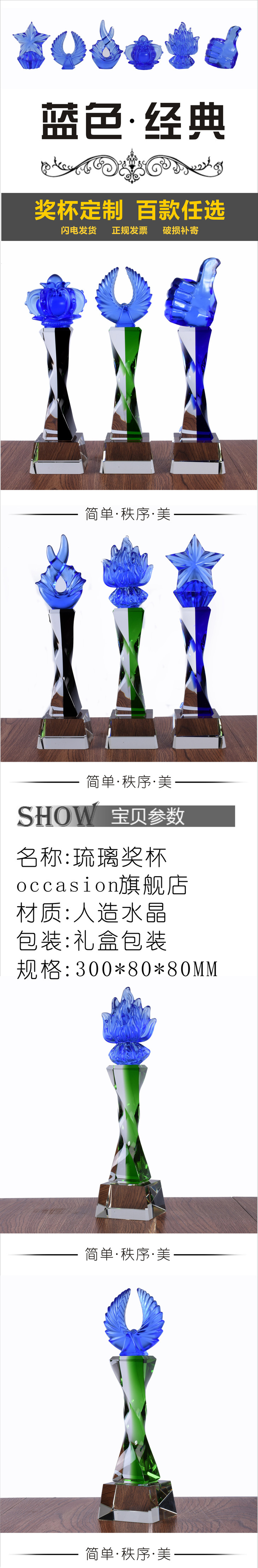 蓝色奖杯定制水晶创意奖杯琉璃奖杯个性纪念品定做企业表彰奖杯