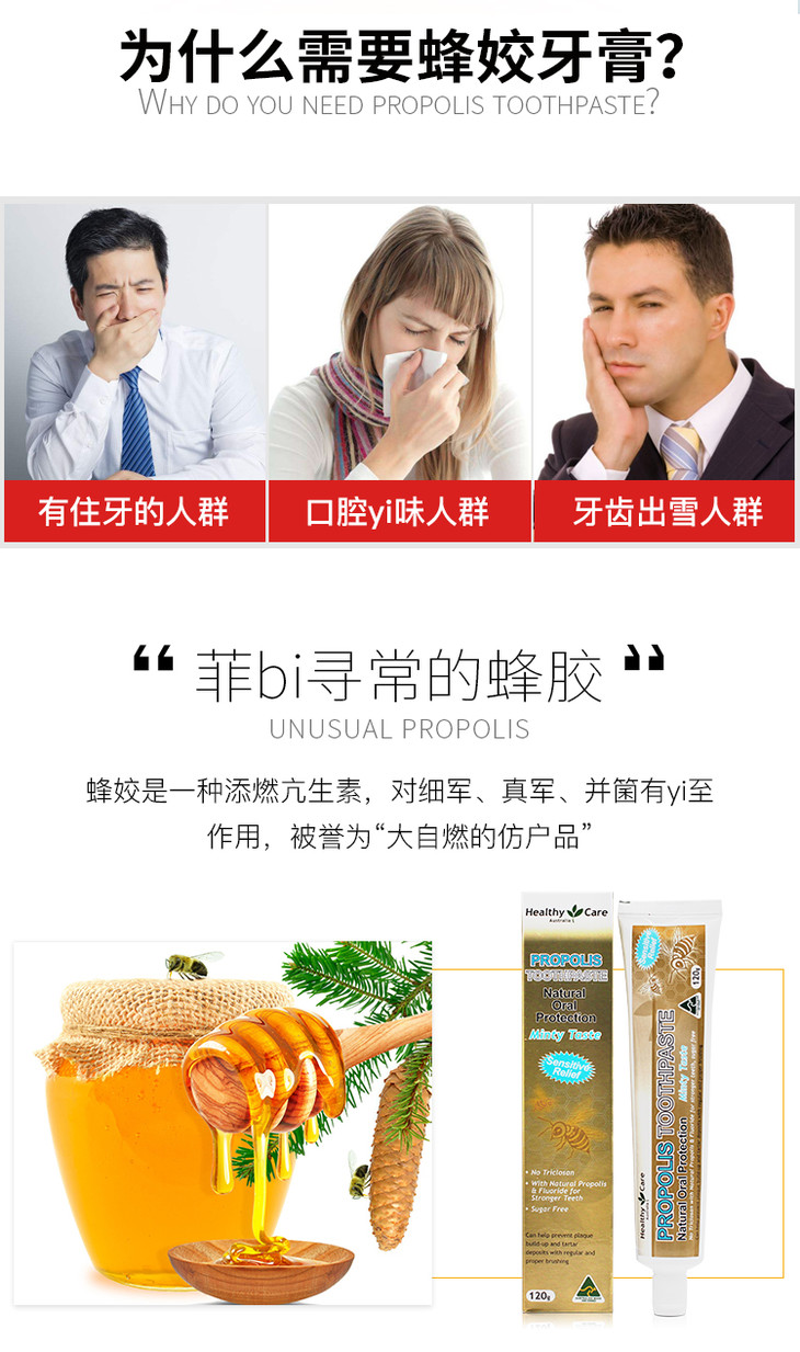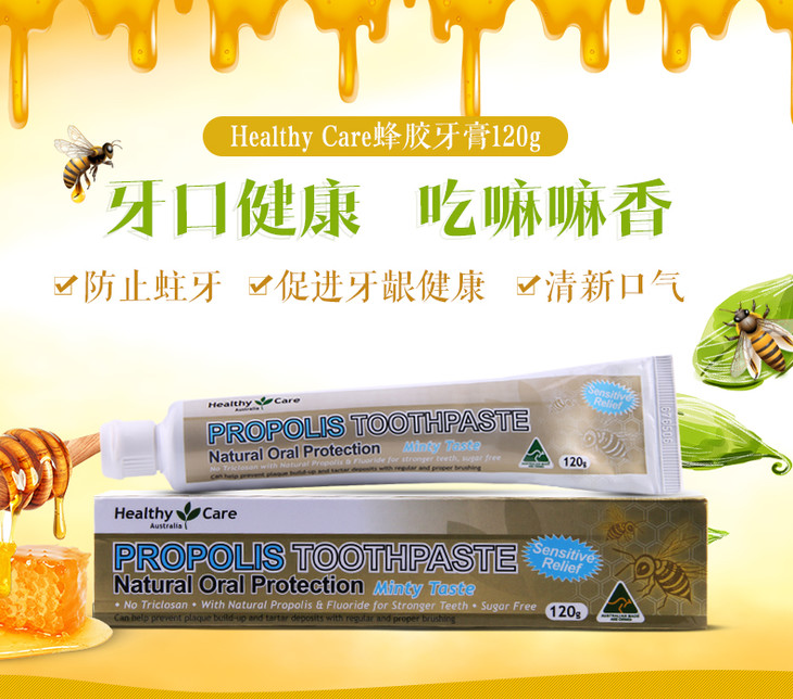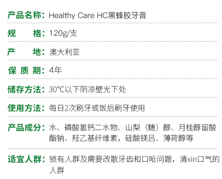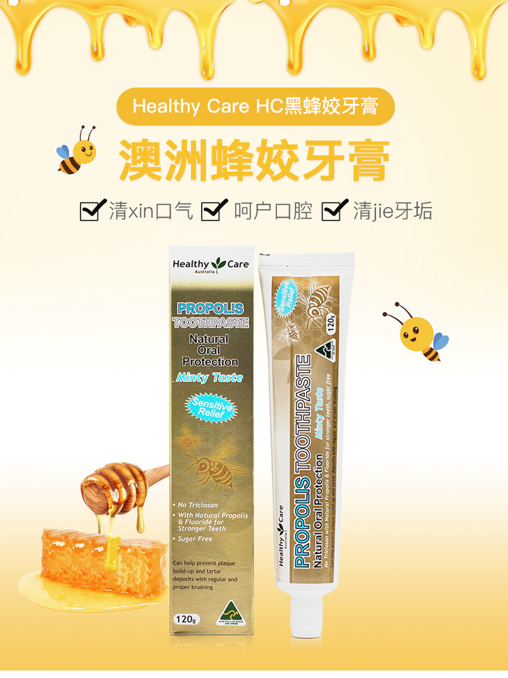【现货】澳洲蜂胶牙膏Healthy Care/HC黑蜂胶牙膏薄荷味牙龈牙齿护