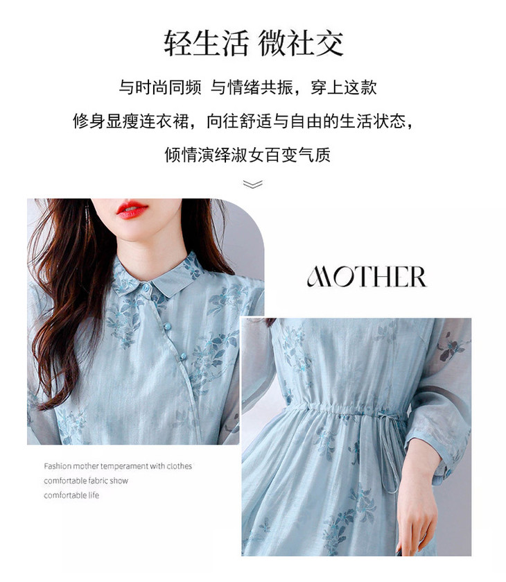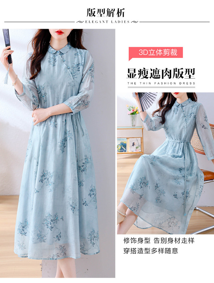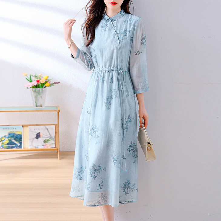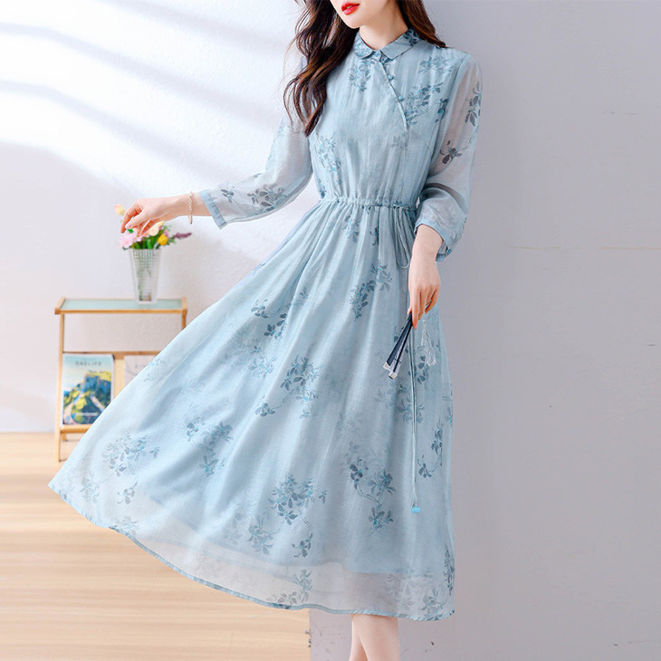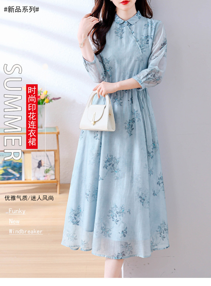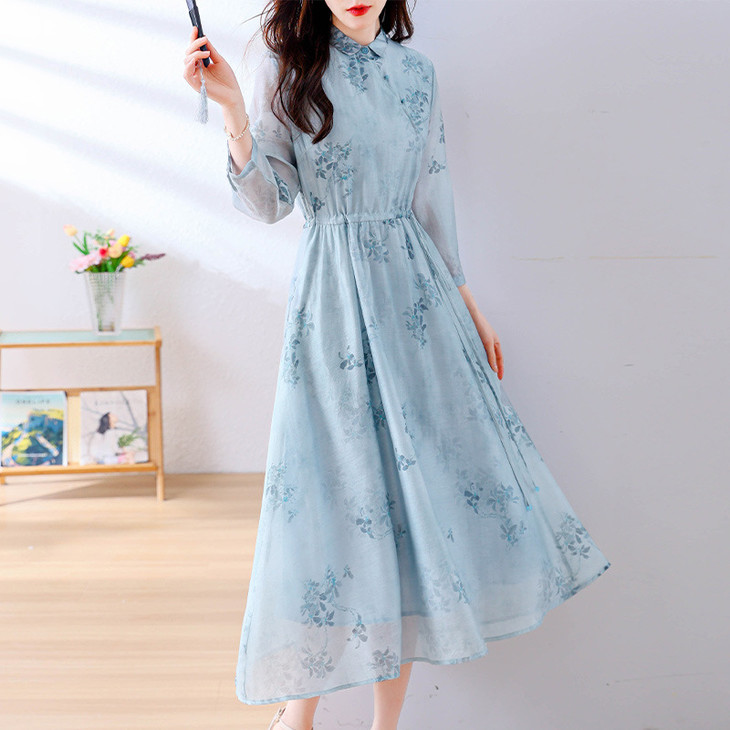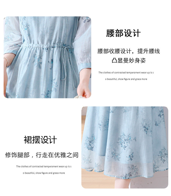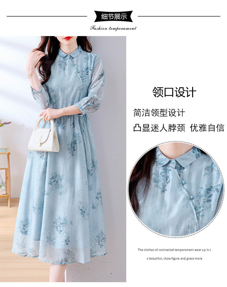小清新文艺国风轻薄宽松显瘦盘扣气质蓝色连衣裙AHM-blty8713