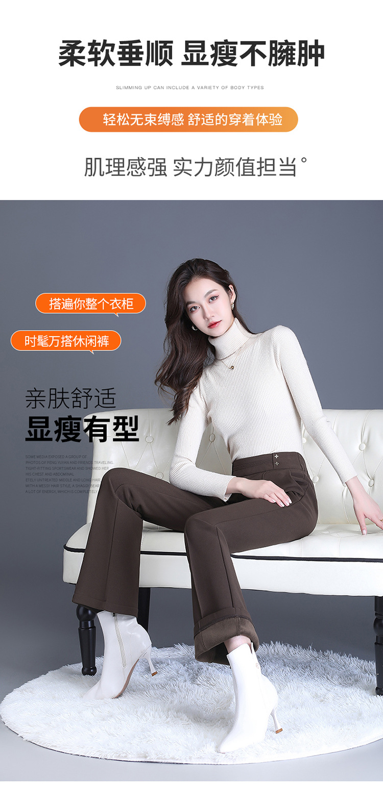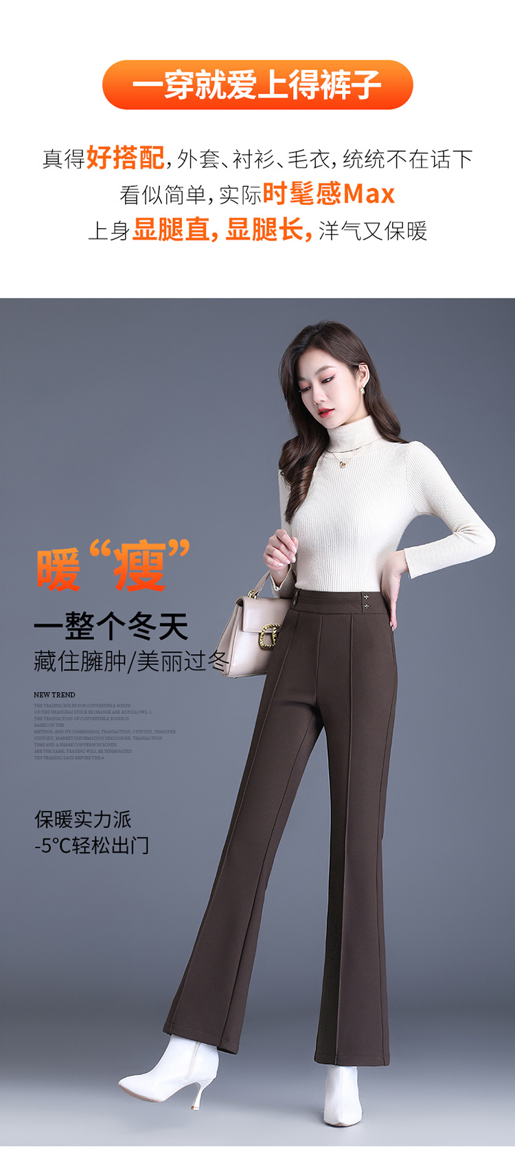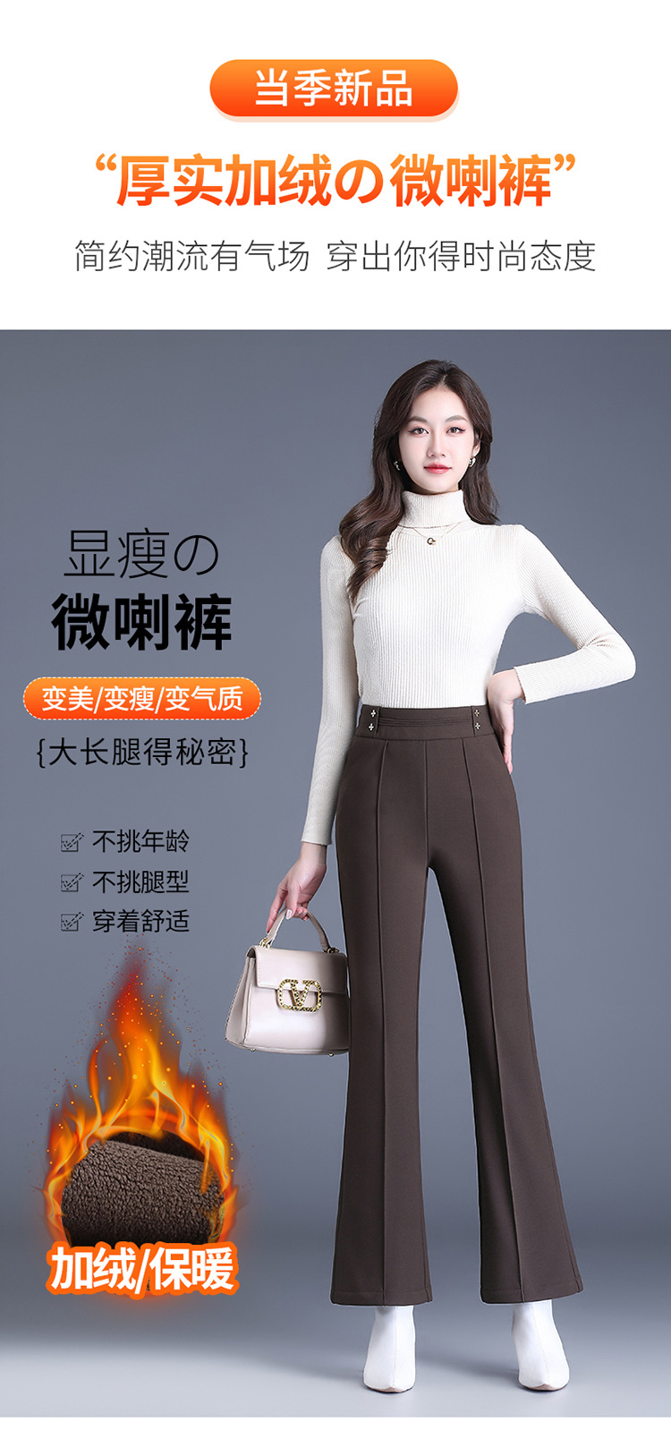 简约拼接修身时尚加绒通勤气质优雅微喇裤MYX-YBS-28127-L