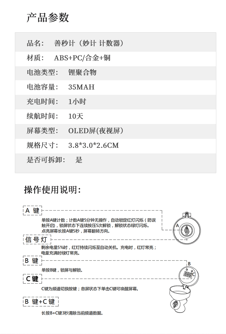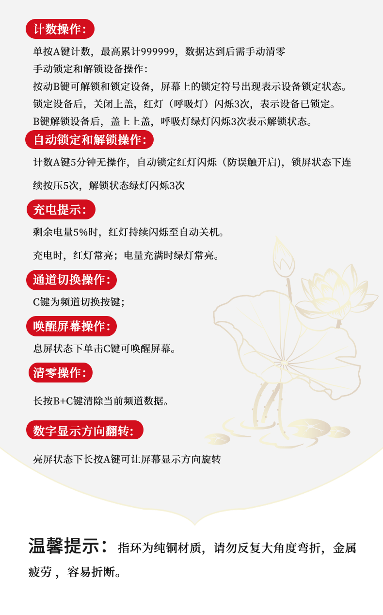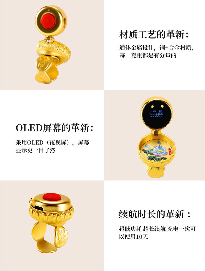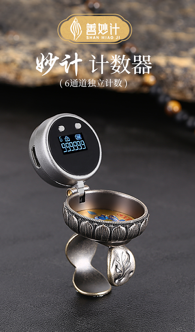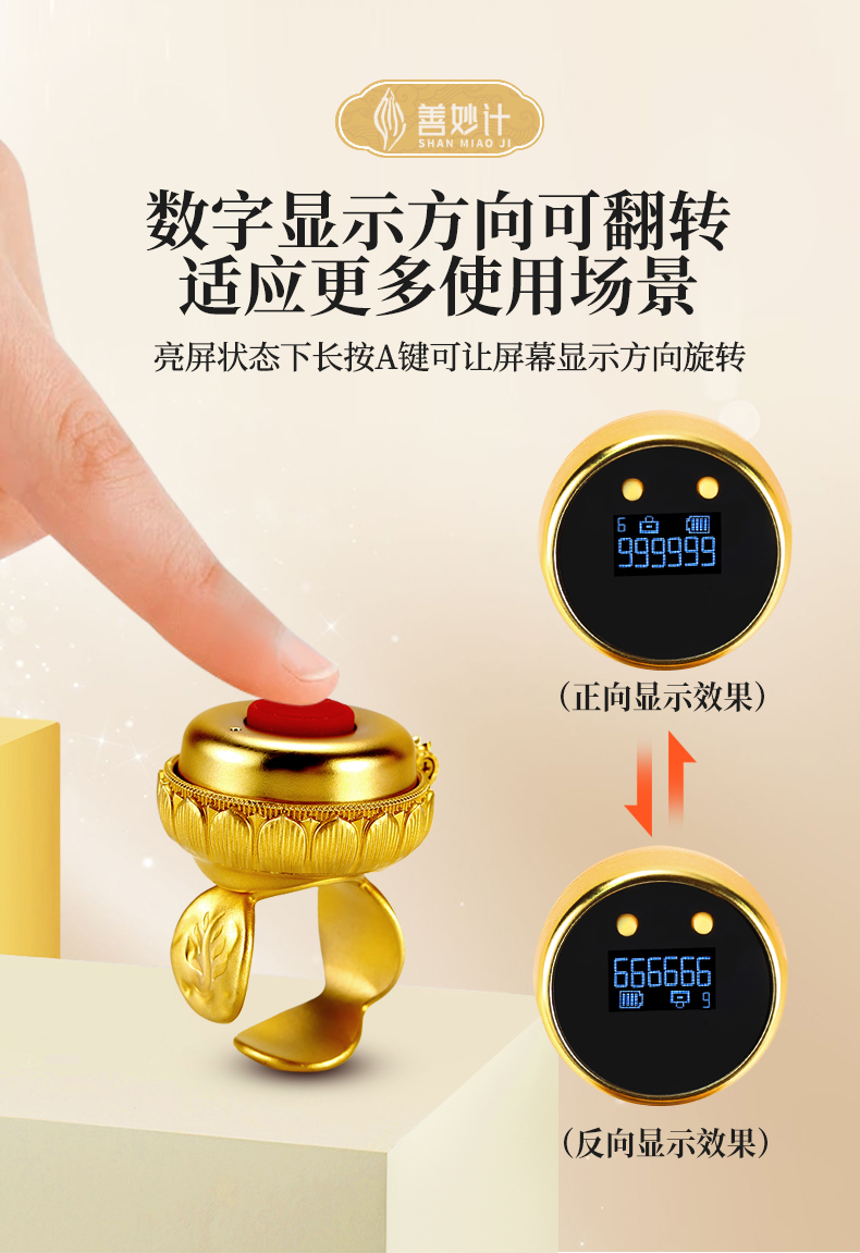 善妙计夜视充电OLED数显屏手按计数器迷你型戒指型鎏金记数器