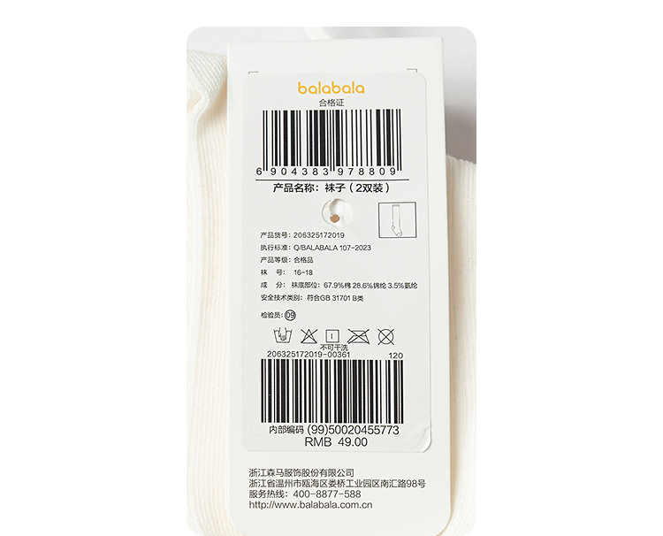 巴拉巴拉女童袜子秋新品儿童中筒袜无骨手工缝两双装
