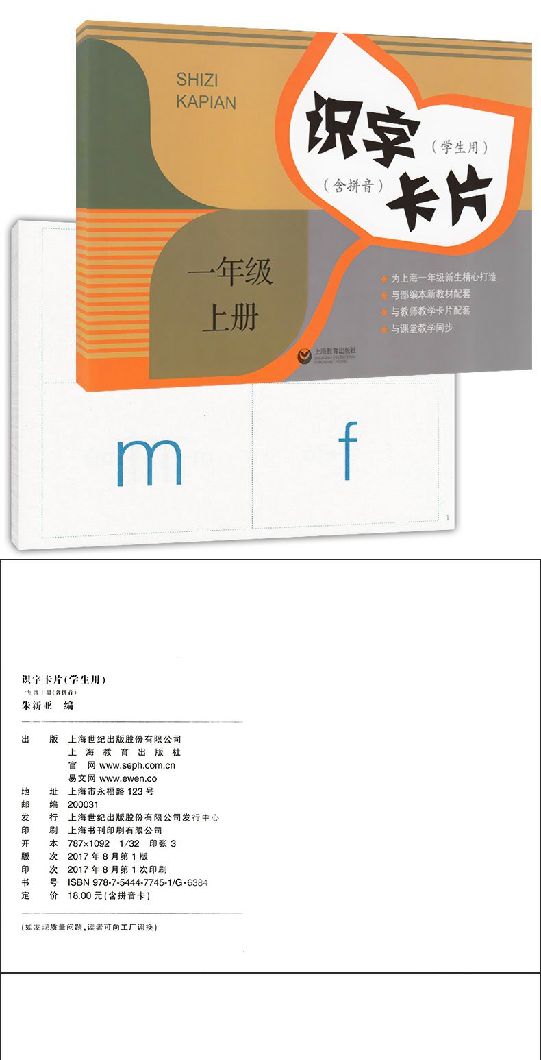正版现货 新版 上海小学教材教辅 识字卡片学生用书含拼音 1年级上/一年级上册第一学期小学生汉语拼音生字学习卡片 1语文教学卡片