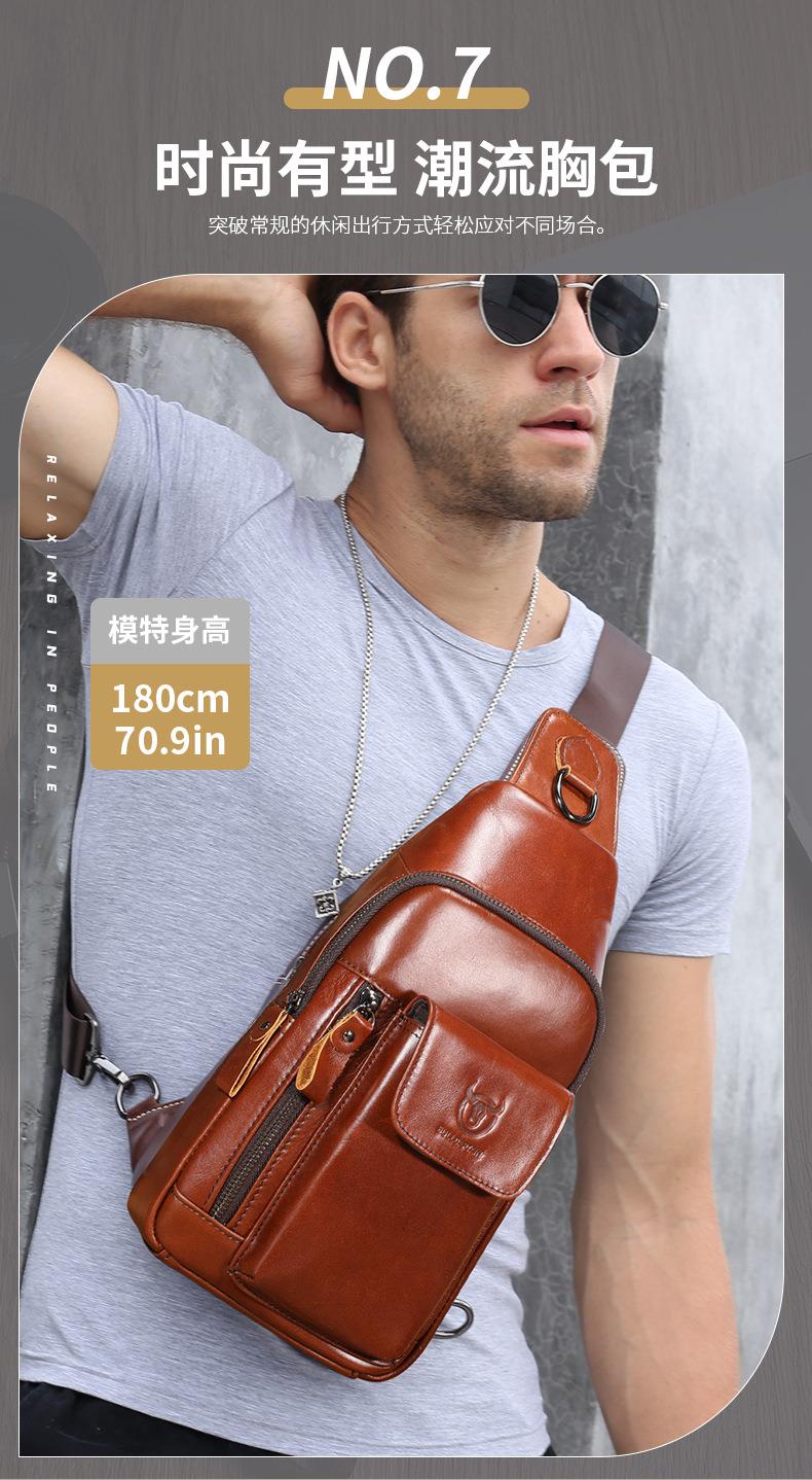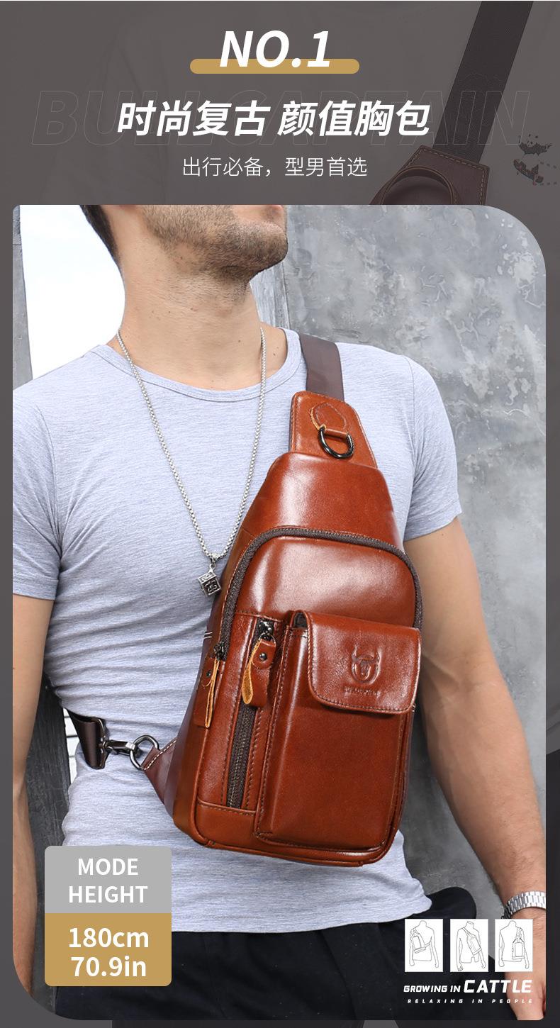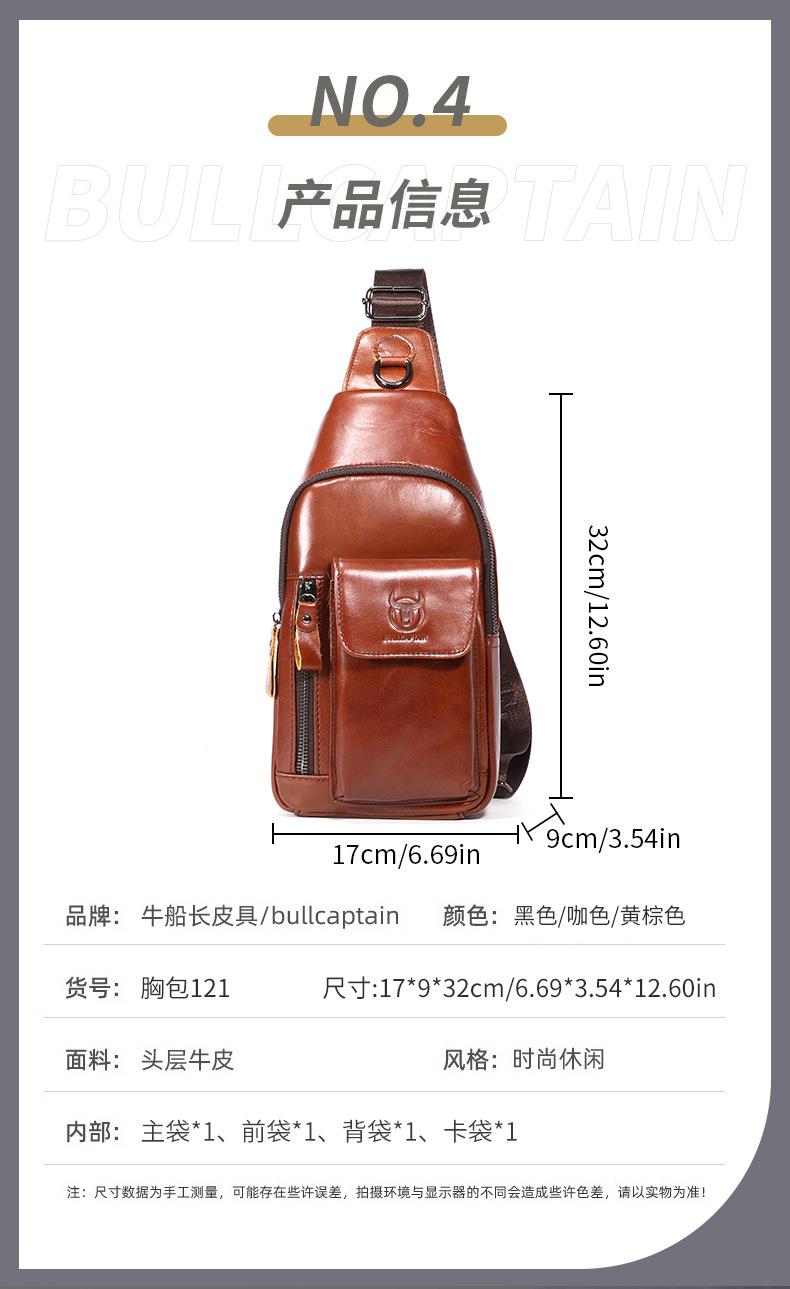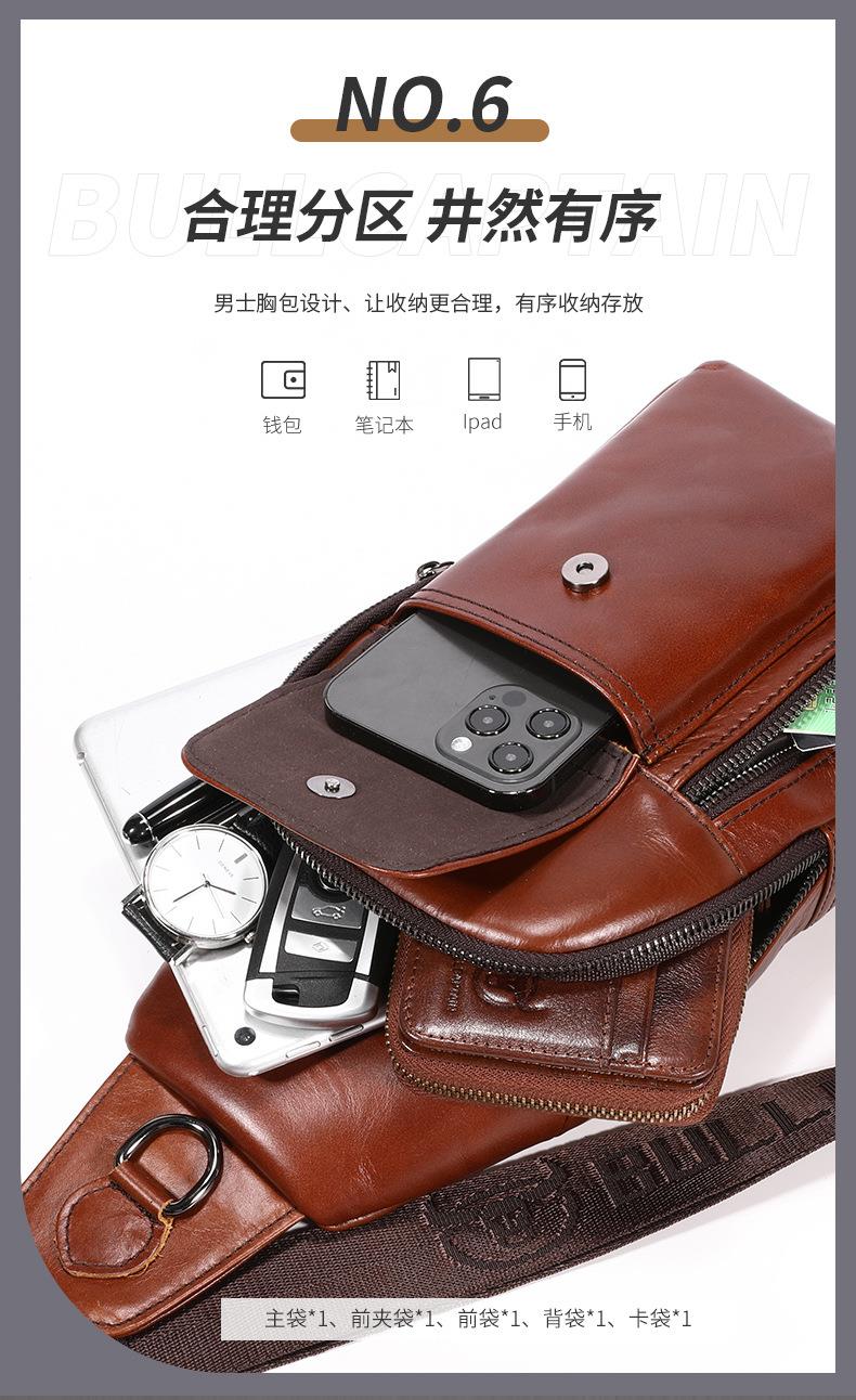 牛船长新款2021男士头层牛皮胸包男真皮单肩斜挎胸前插手机袋背包