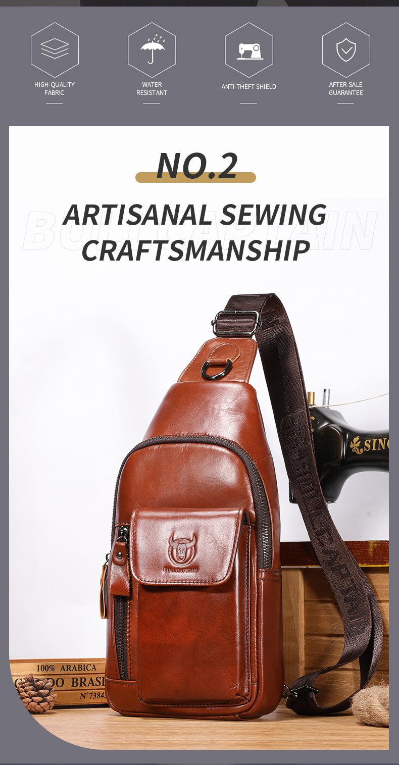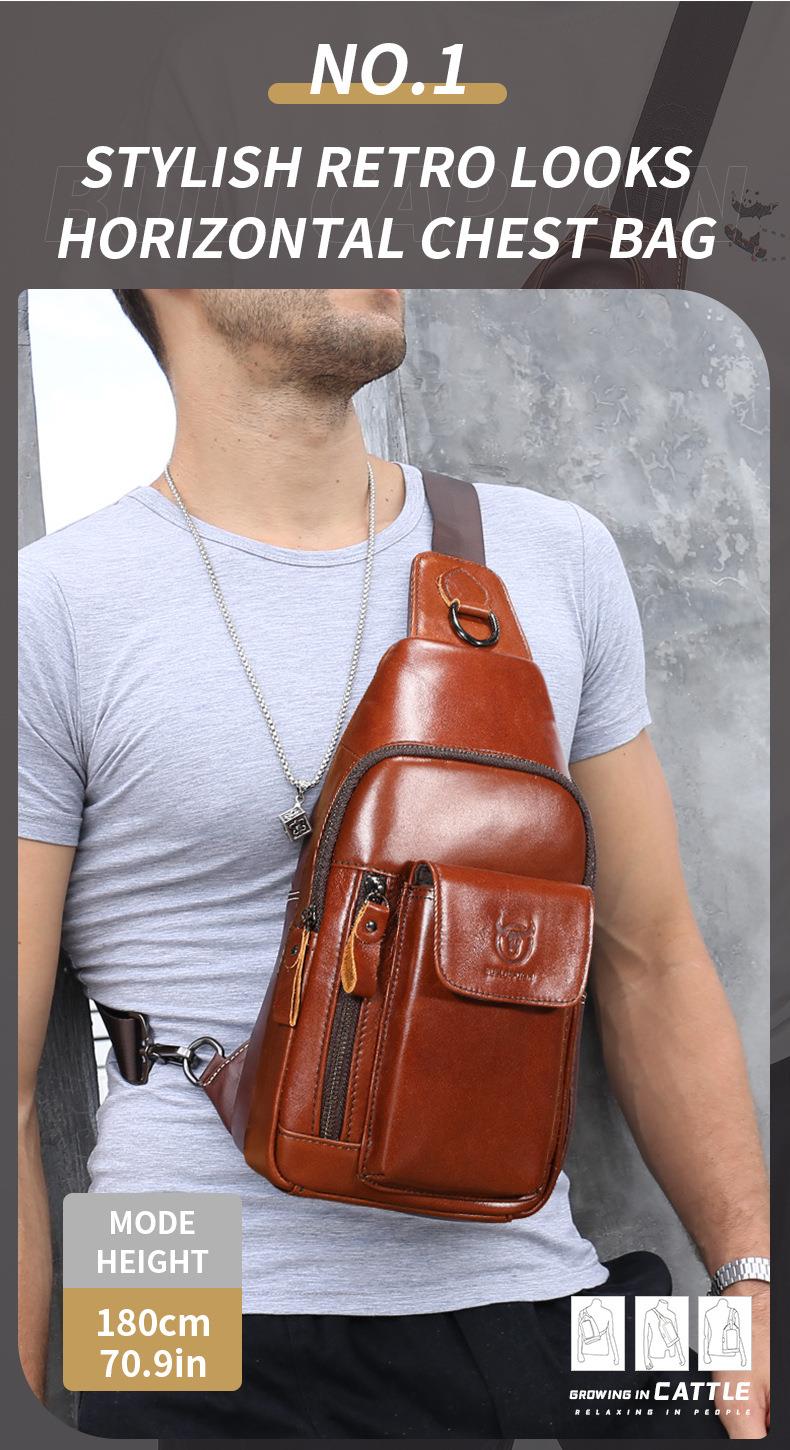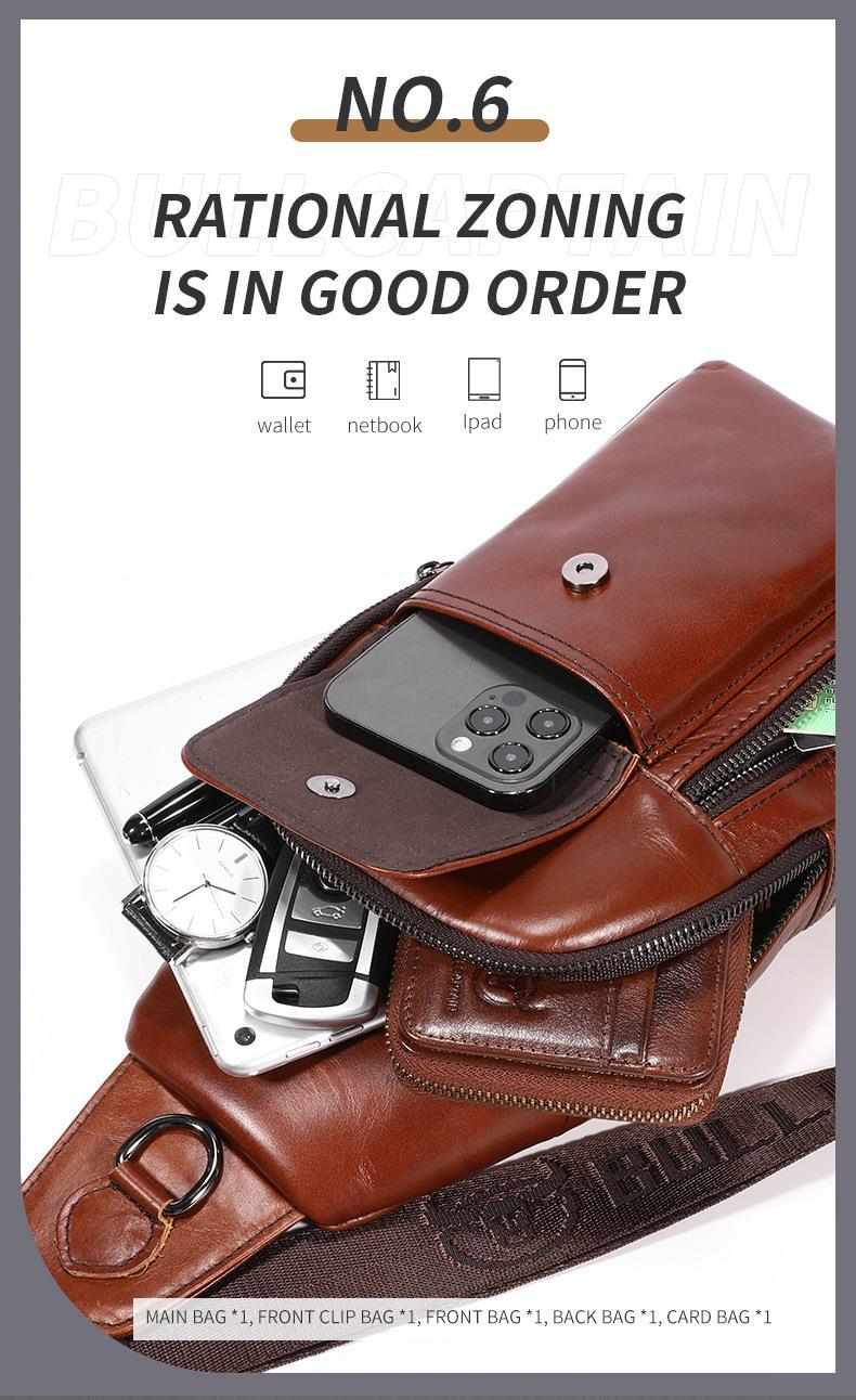 牛船长新款2021男士头层牛皮胸包男真皮单肩斜挎胸前插手机袋背包
