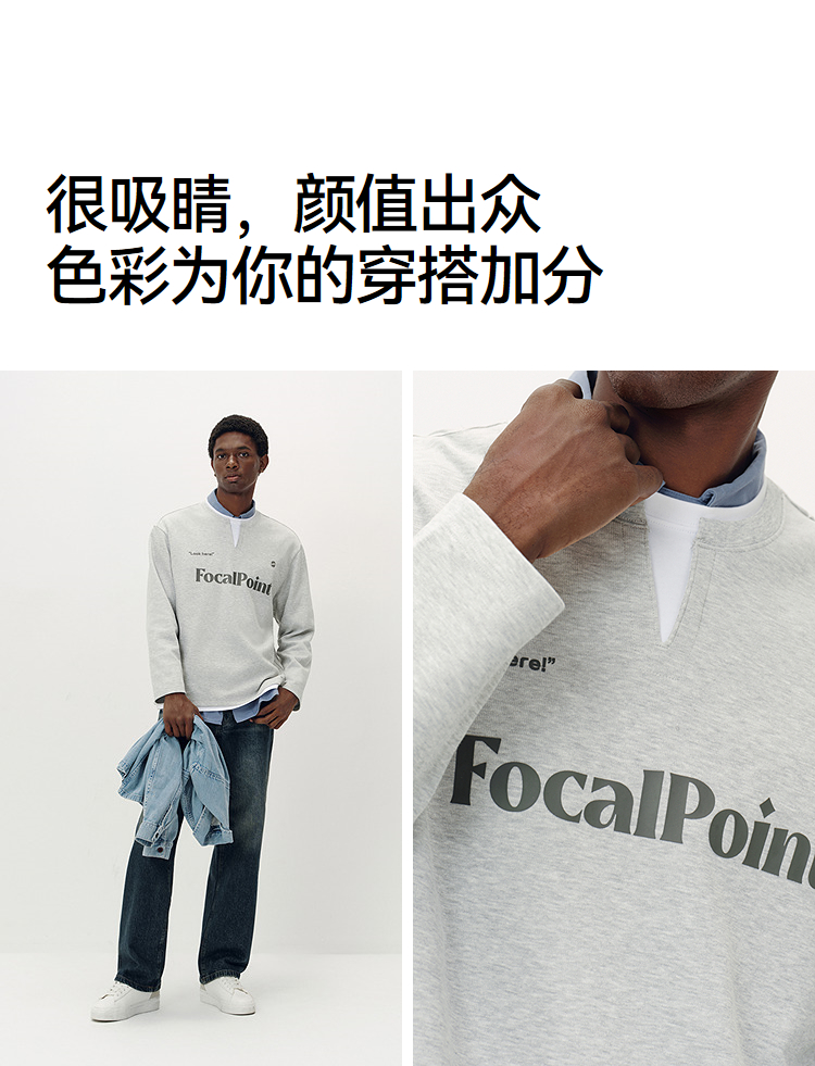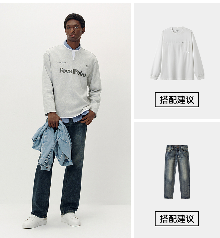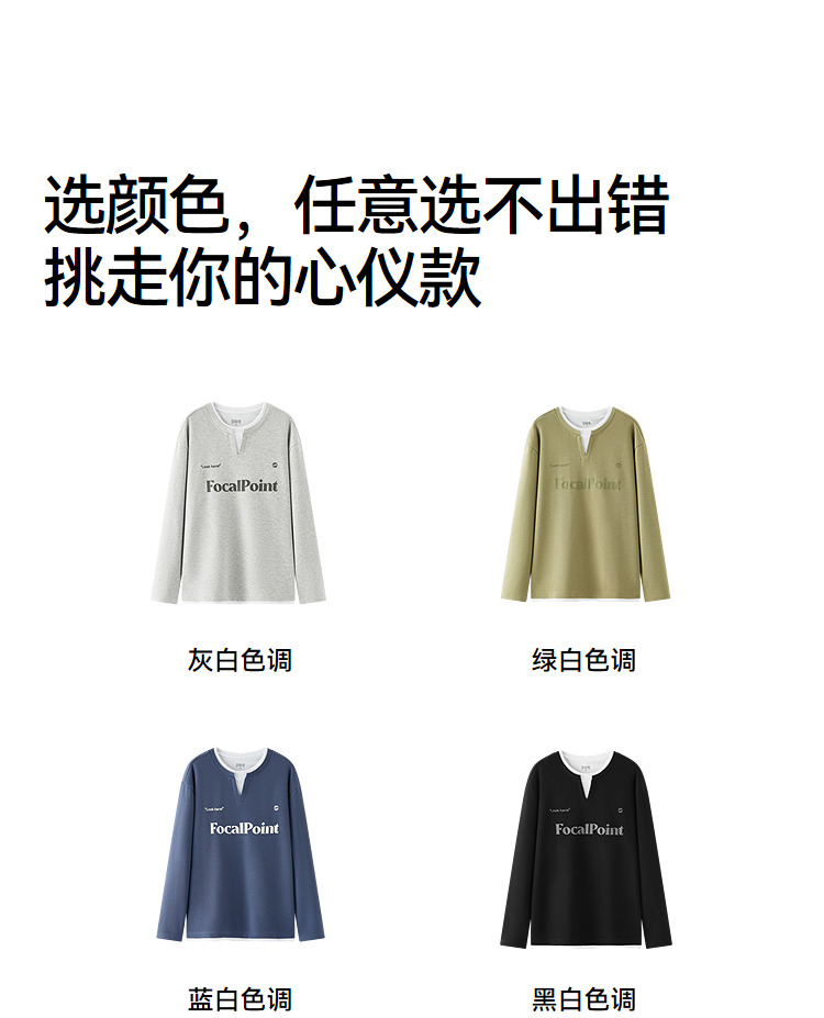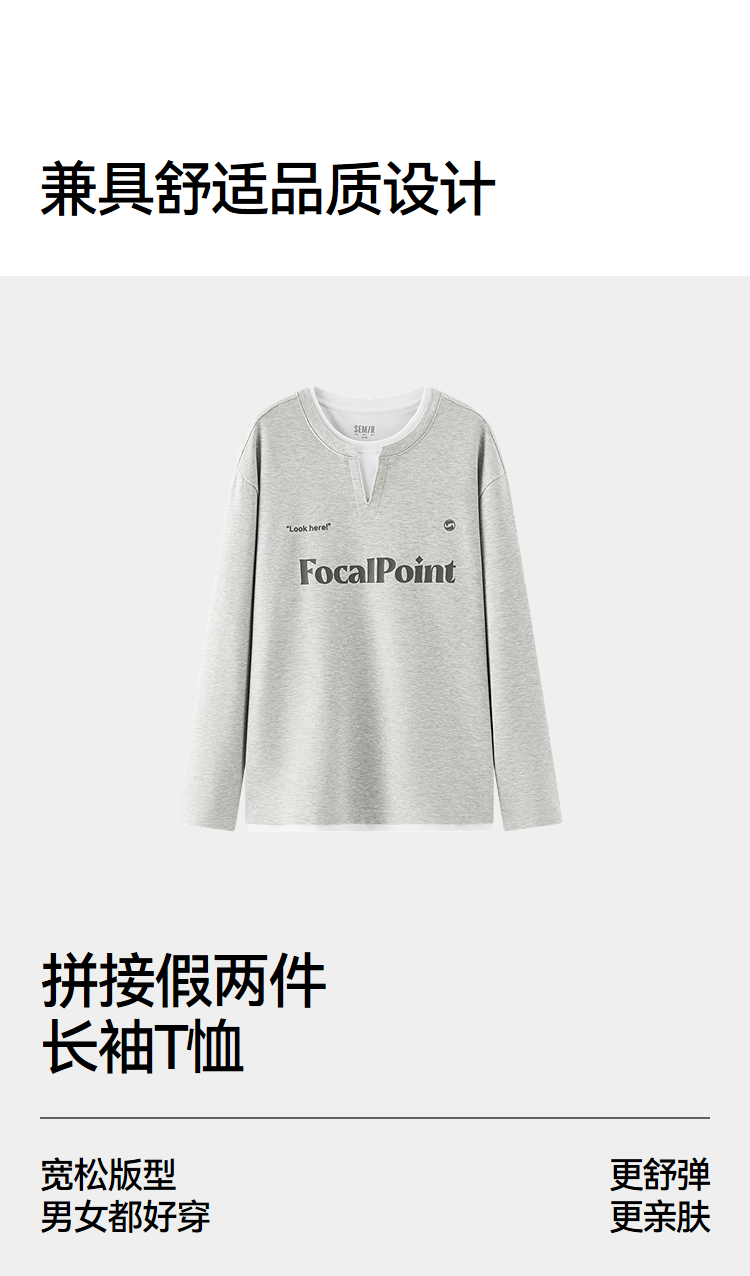 [商场同款]森马长袖T恤男拼接假两件情侣装2025秋季新款印花上衣