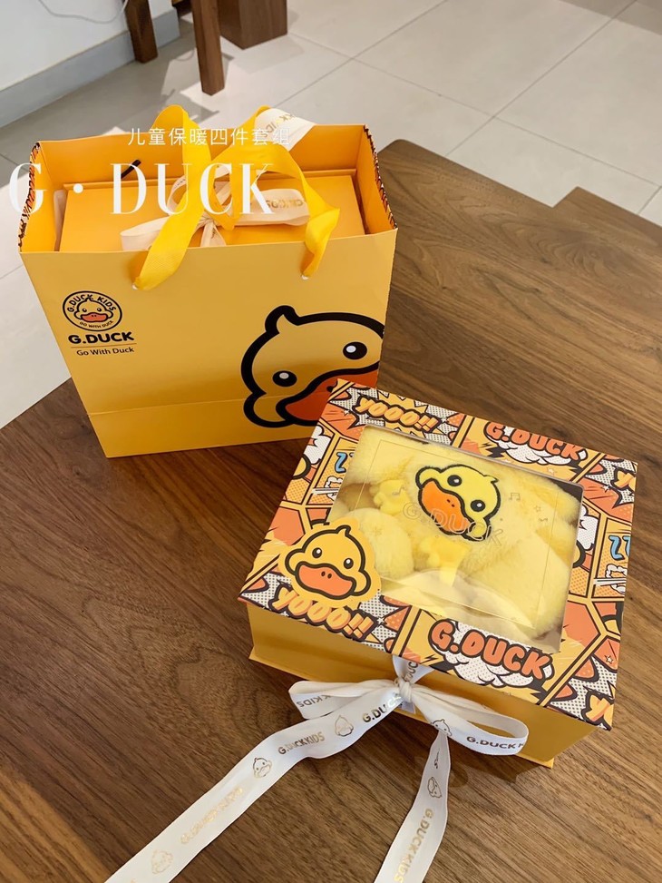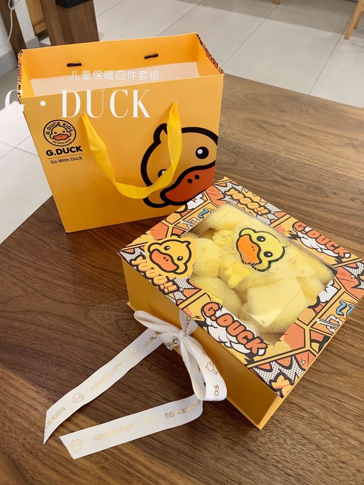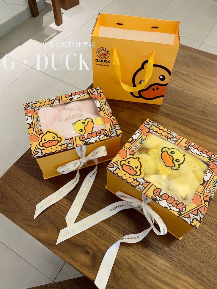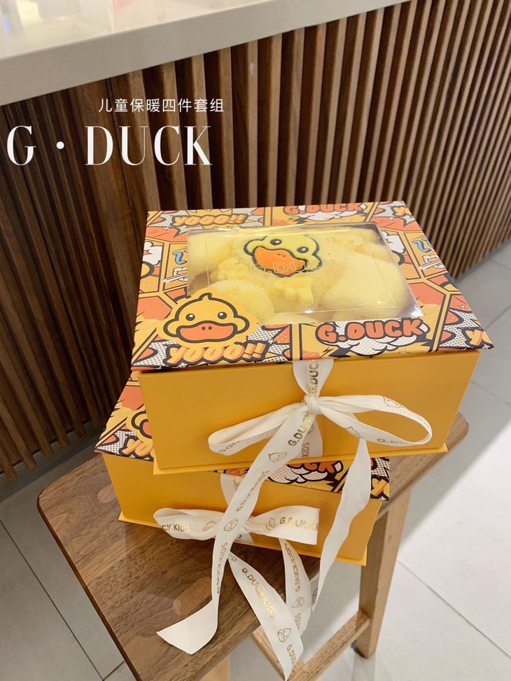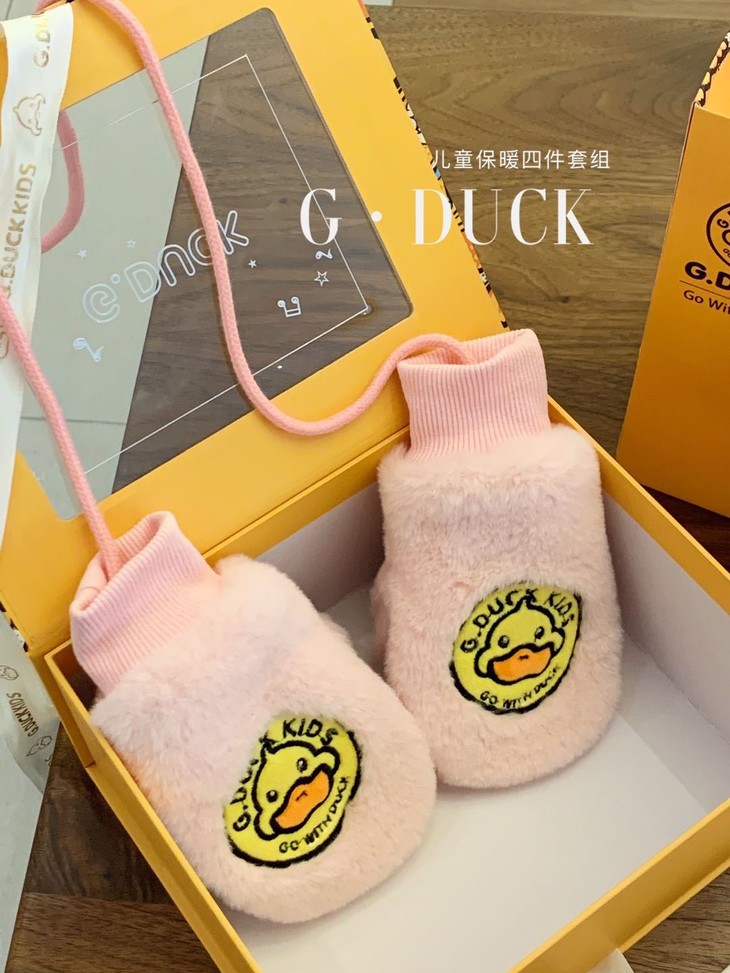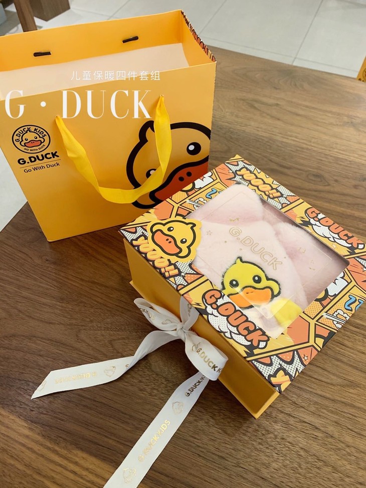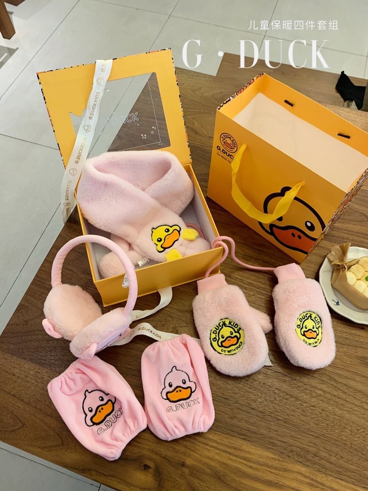 𝗖𝗵𝗼𝗼𝘀𝗲 𝘆𝗼𝘂𝗿 𝗰𝗼𝗹𝗼𝗿 - 内含四件套 - 手提袋+精致礼盒 丝绒金字Logo丝带 妥妥的高级感~ 适用年龄(𝟑-𝟏𝟐岁) 立体保暖耳罩1⃞个 兔毛绒交叉围脖1⃞个 羊羔绒挂绳手套1⃞对 丝绒小黄鸭袖套1⃞对