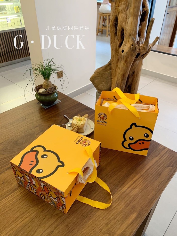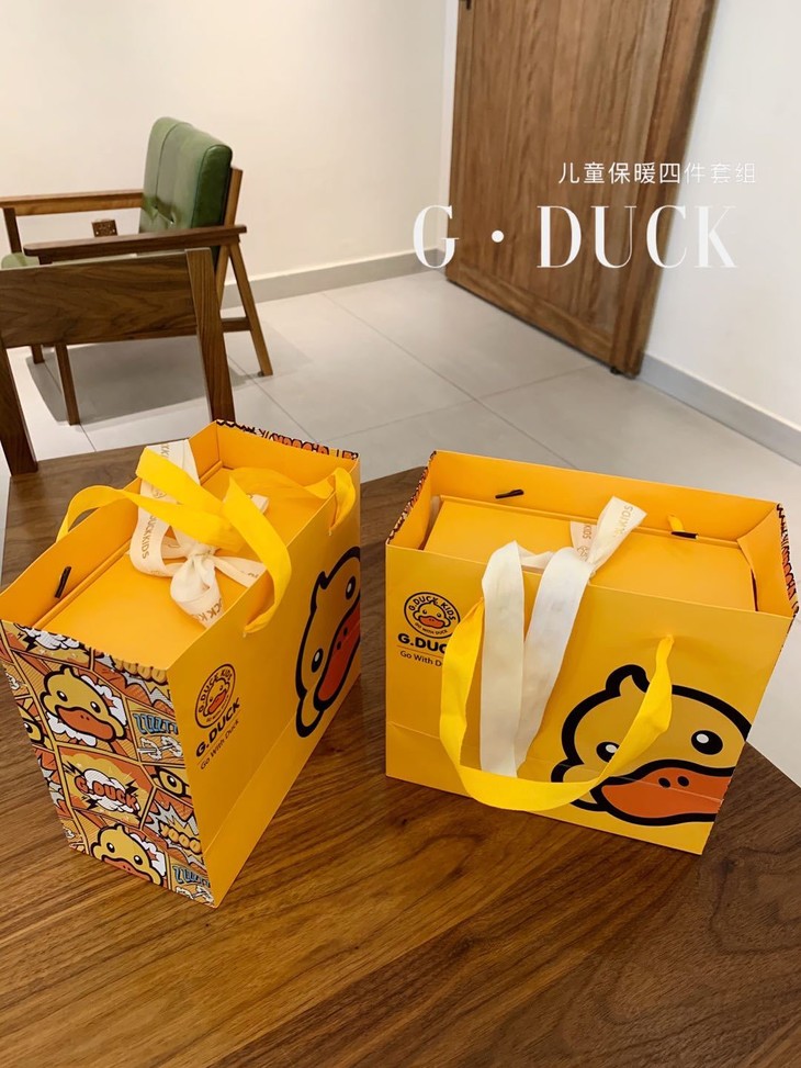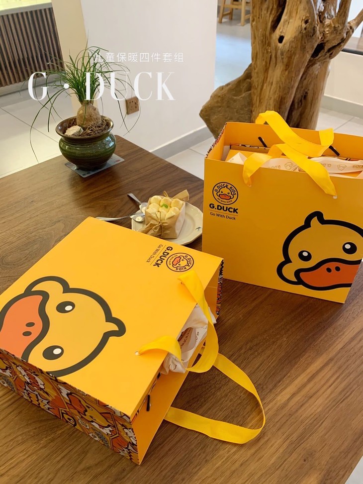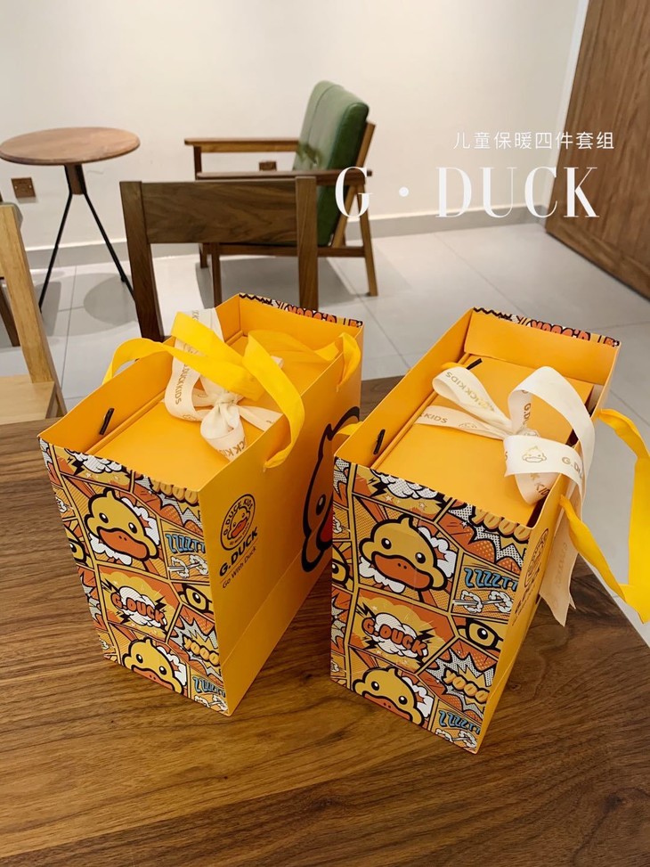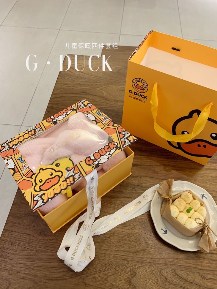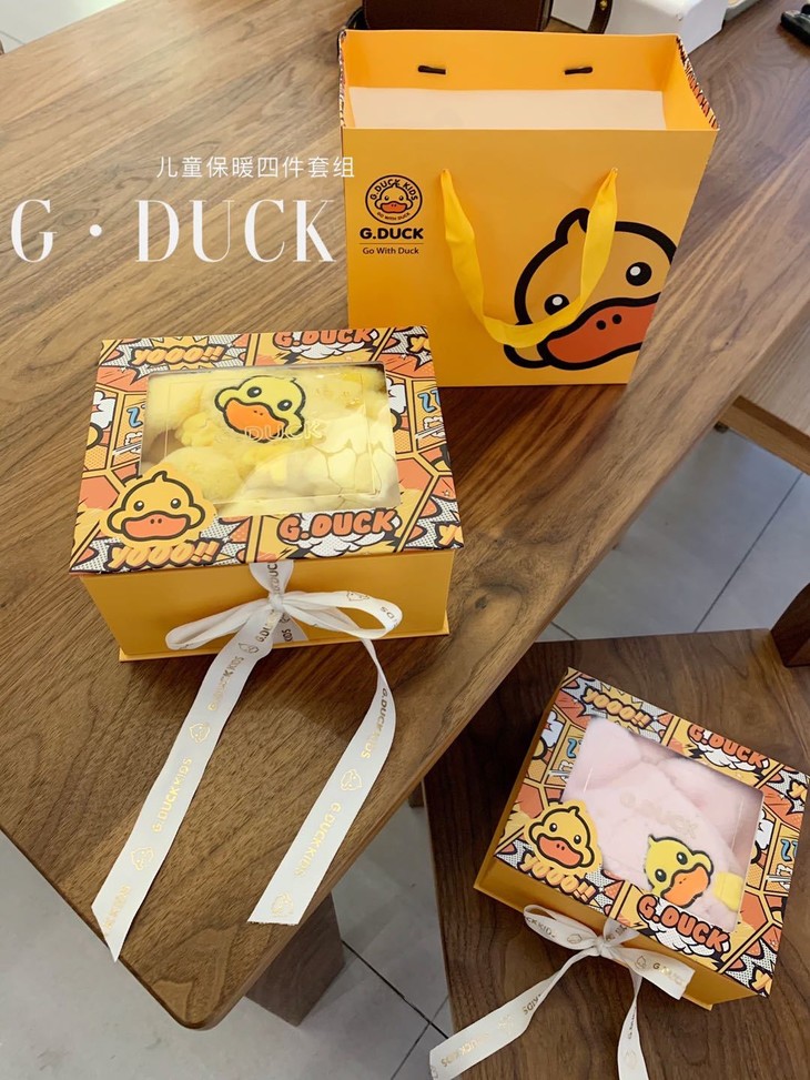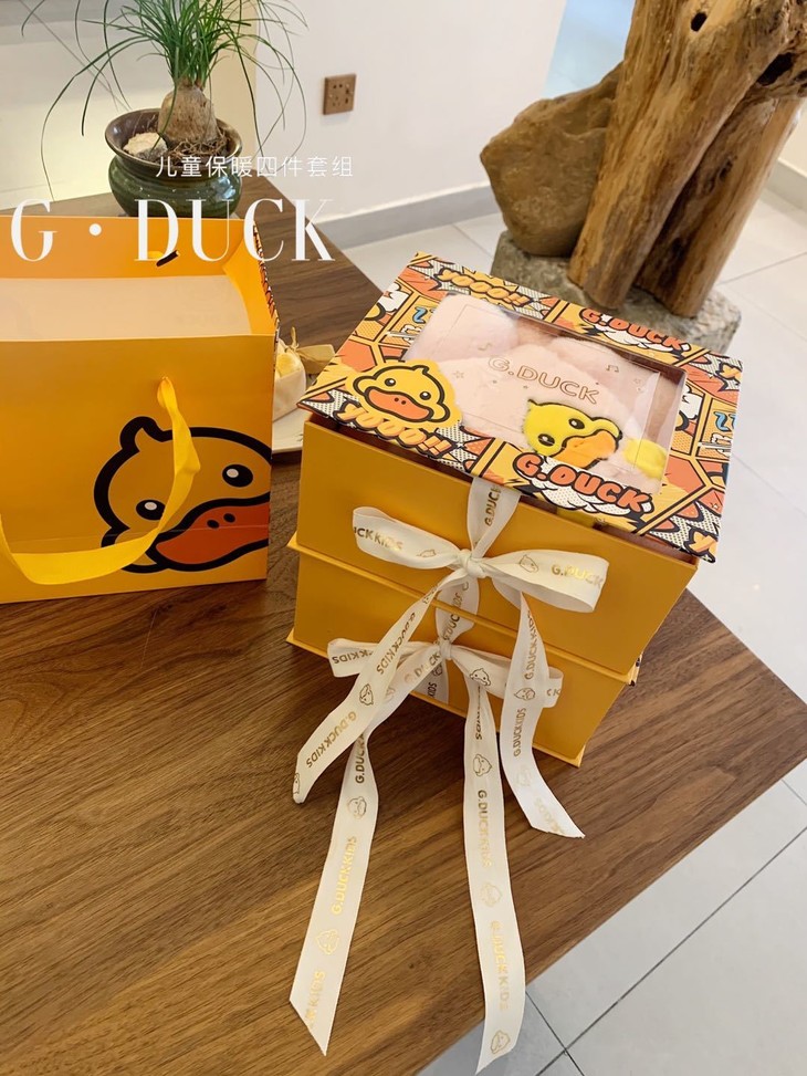𝗖𝗵𝗼𝗼𝘀𝗲 𝘆𝗼𝘂𝗿 𝗰𝗼𝗹𝗼𝗿 - 内含四件套 - 手提袋+精致礼盒 丝绒金字Logo丝带 妥妥的高级感~ 适用年龄(𝟑-𝟏𝟐岁) 立体保暖耳罩1⃞个 兔毛绒交叉围脖1⃞个 羊羔绒挂绳手套1⃞对 丝绒小黄鸭袖套1⃞对