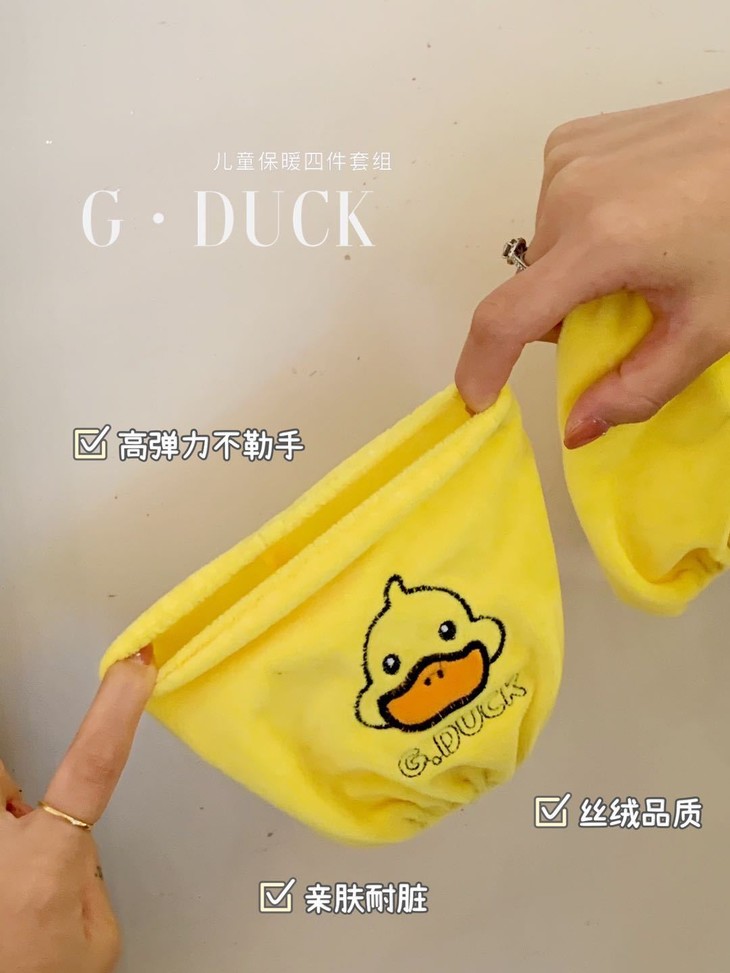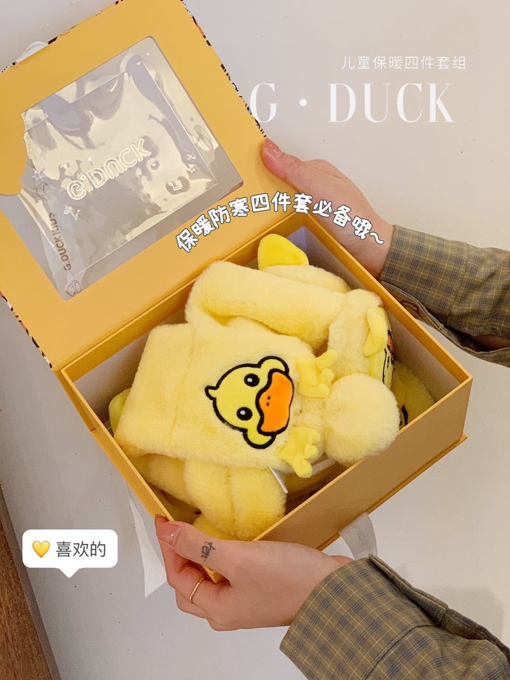 【🧣小黄鸭保暖四件套】 小黄鸭也太火了吧 谁戴谁可爱吖 天气越来越冷了 给宝贝们备起来 毛绒绒的单品 每个颜色都好看!! 超级软糯舒适的围脖摸起来手感太棒了 小朋友都说,戴上根本不想脱下 手感都超级棒更别说戴在脖子上了 给宝宝的东西我们一定要挑最好的!!
