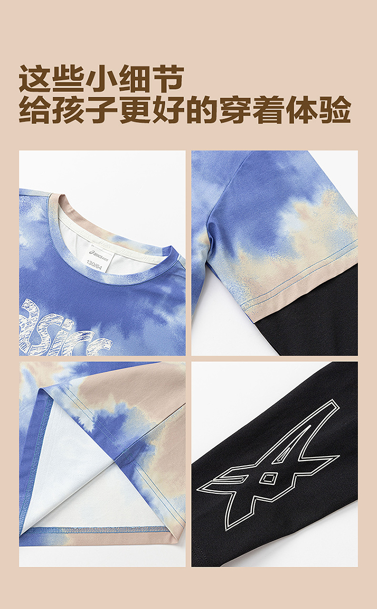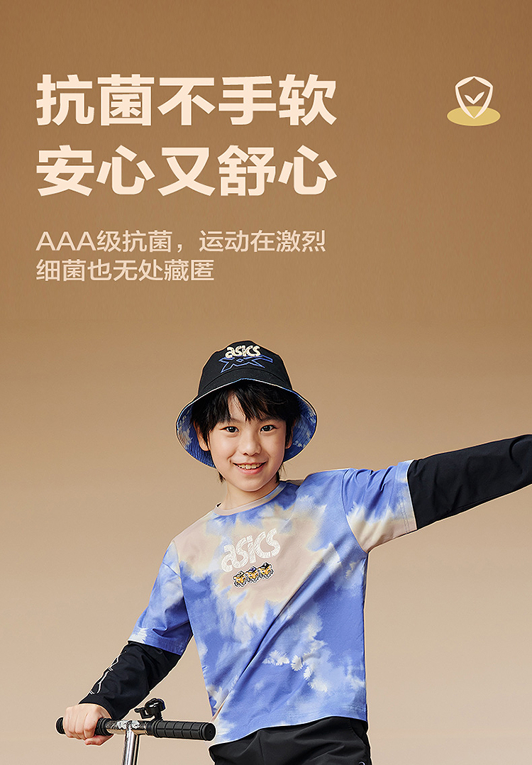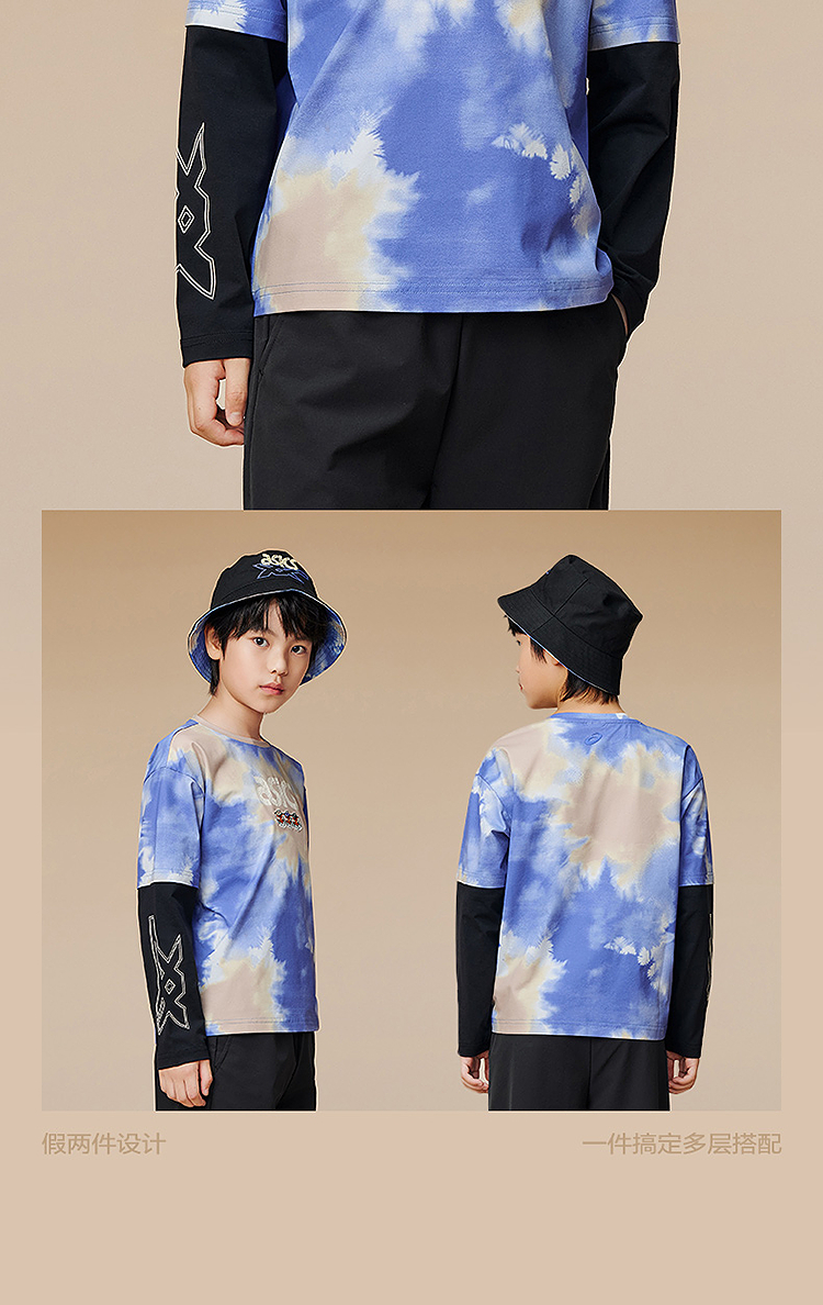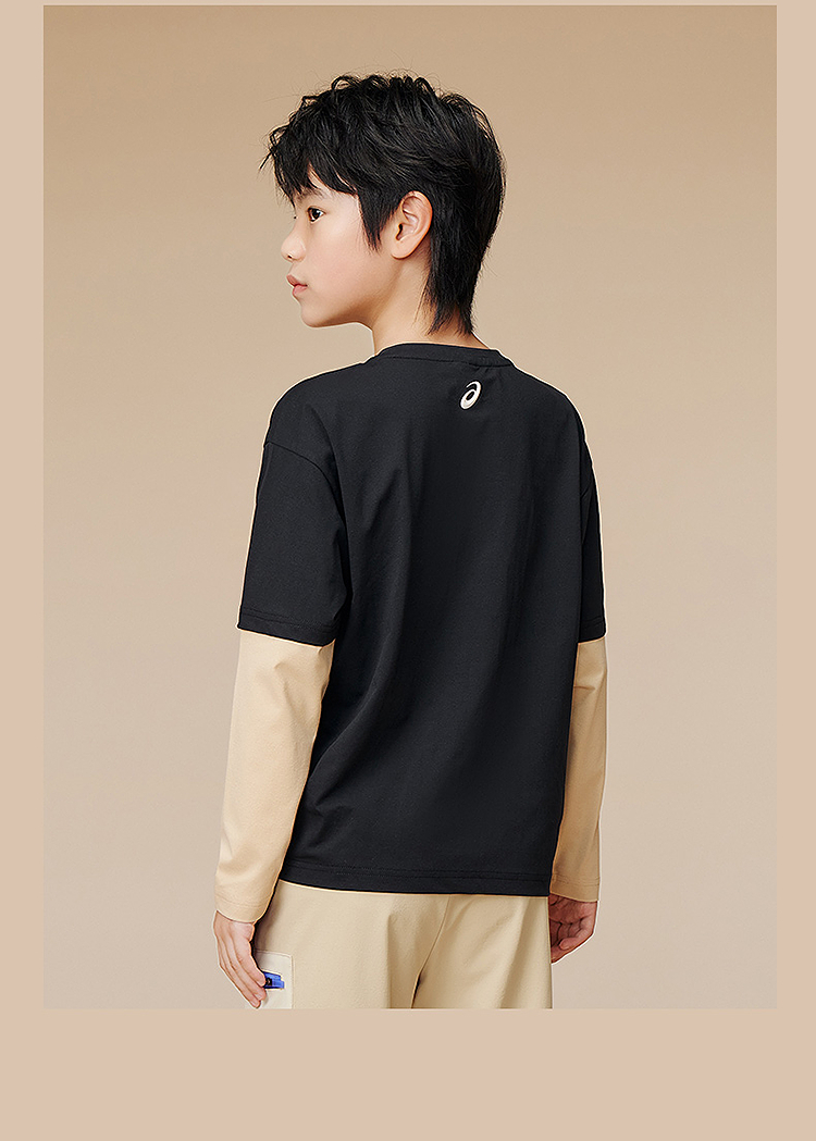 ASICS/亚瑟士儿童2025年秋季男童假两件圆领长袖T恤抗菌吸湿速干