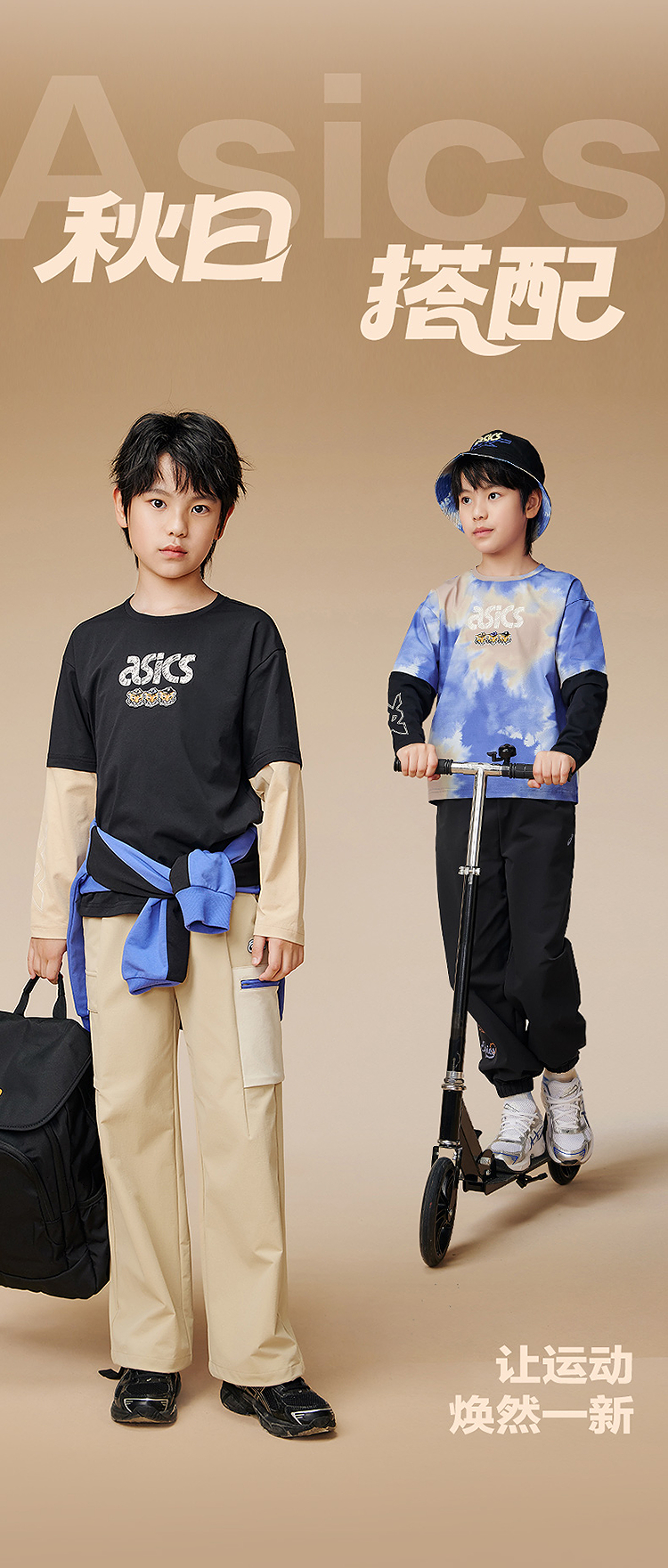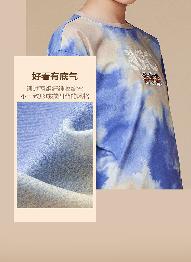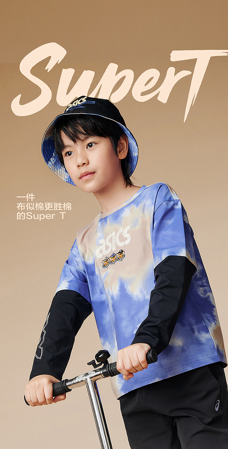 ASICS/亚瑟士儿童2025年秋季男童假两件圆领长袖T恤抗菌吸湿速干