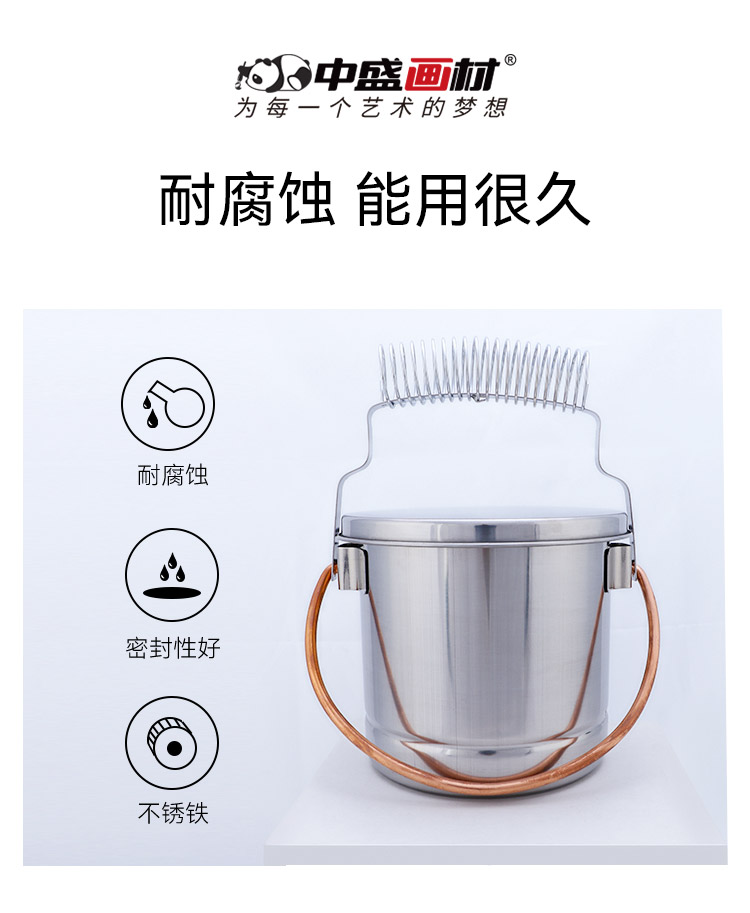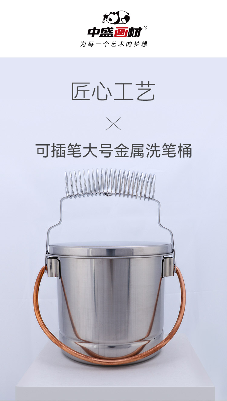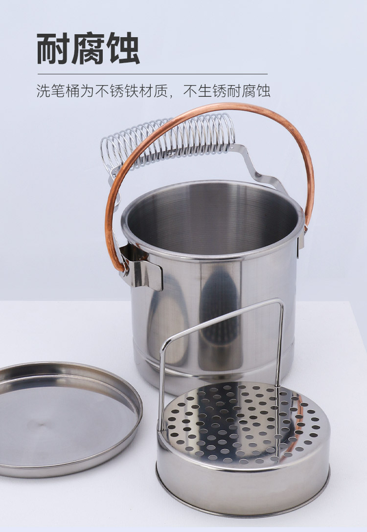中盛画材 大号不锈钢可提油画洗笔桶 洗笔筒洗笔器油画用品