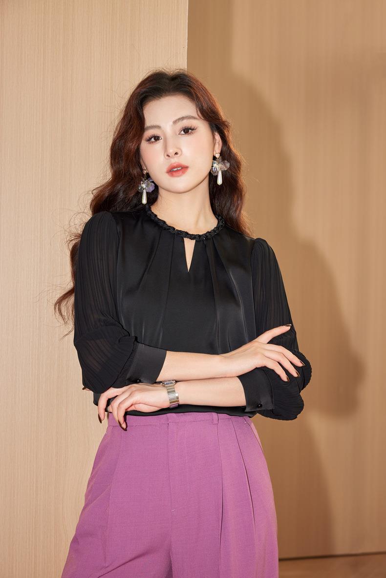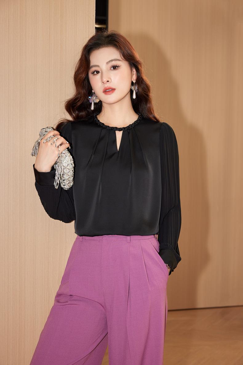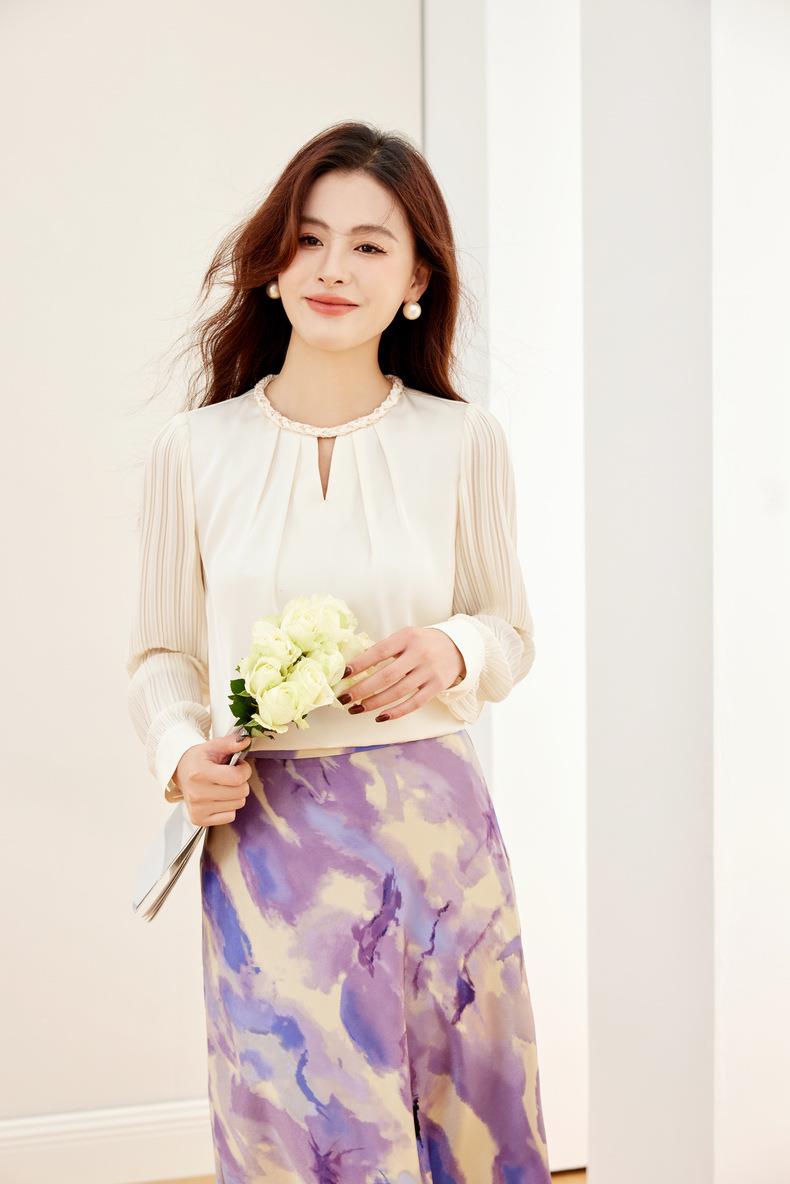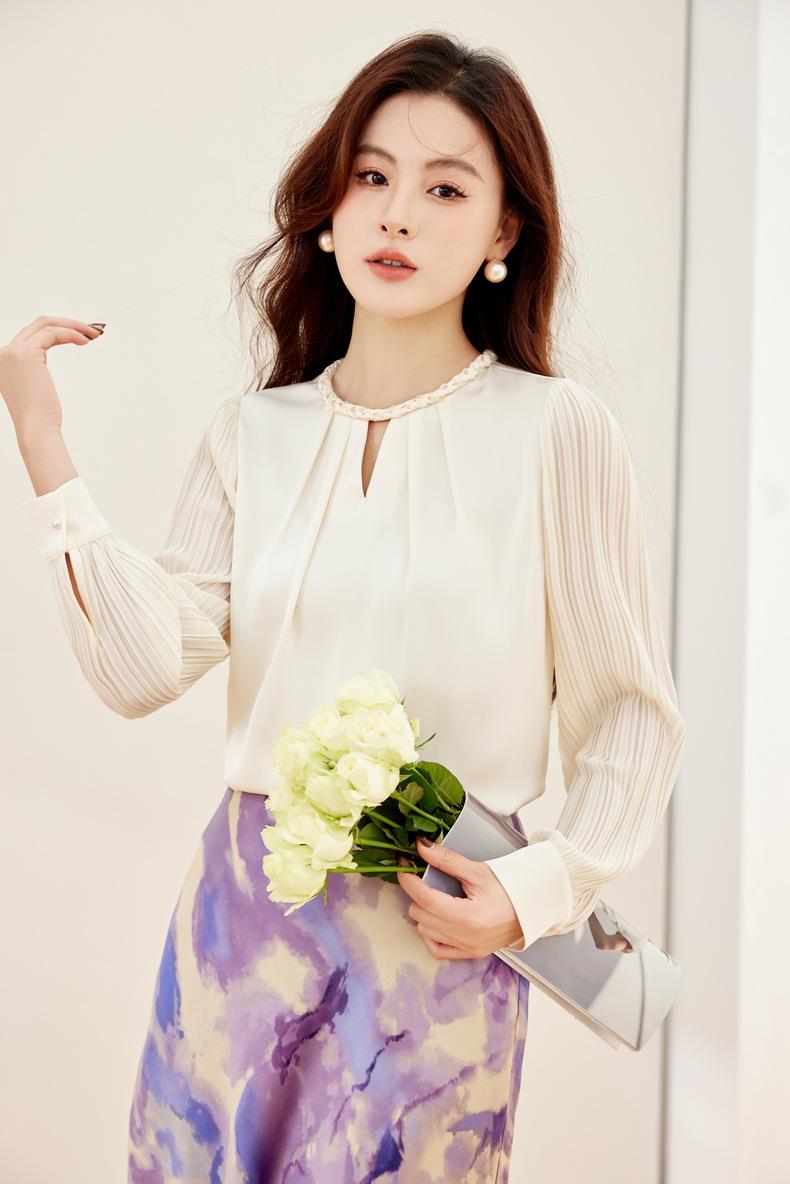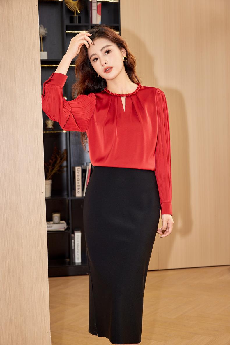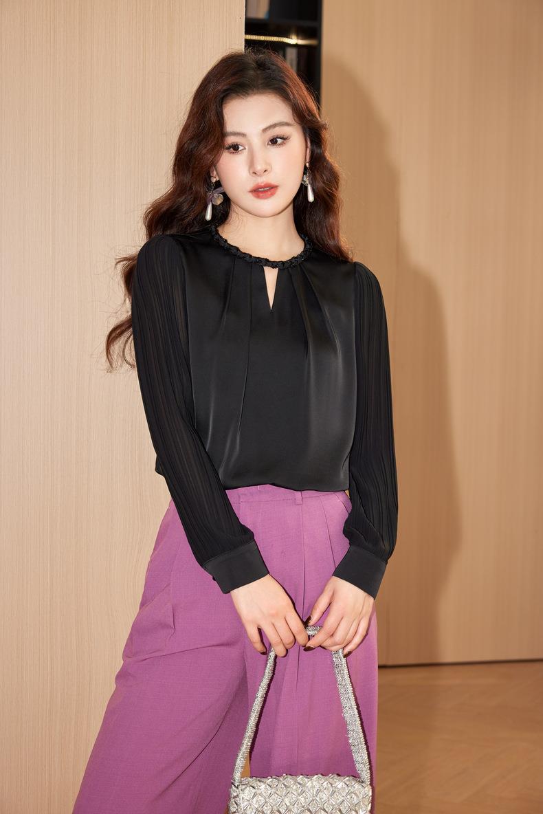 醋酸缎面雪纺衫女上衣2024春装新款小衫压皱长袖女衬衣8882