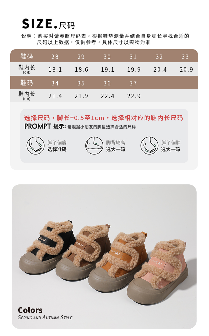 【童鞋】星期六加绒保暖绒绒毛边男女童高帮棉鞋SSC4192L6G
