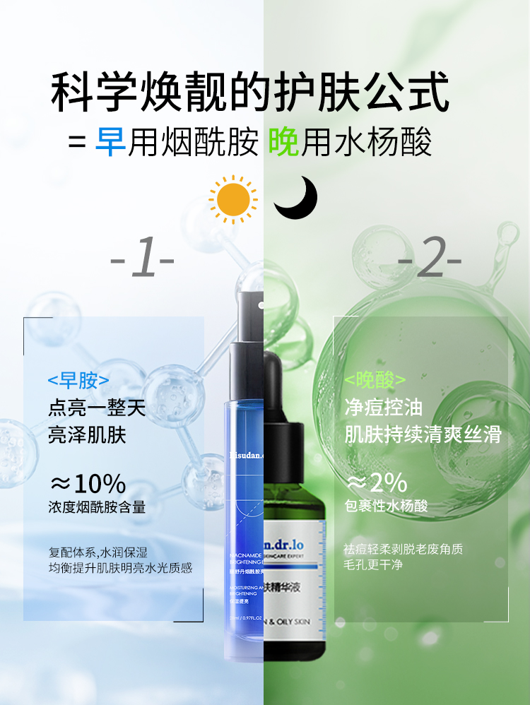 丽舒丹护早胺晚酸组合精华液提靓肤色缓解痘痘暗沉