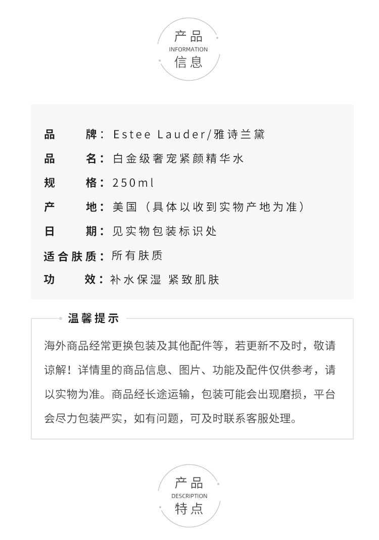 雅诗兰黛双重胶原滋养白金奢宠紧肤精华水250ml细致柔肤化妆水【CDF】 27年后