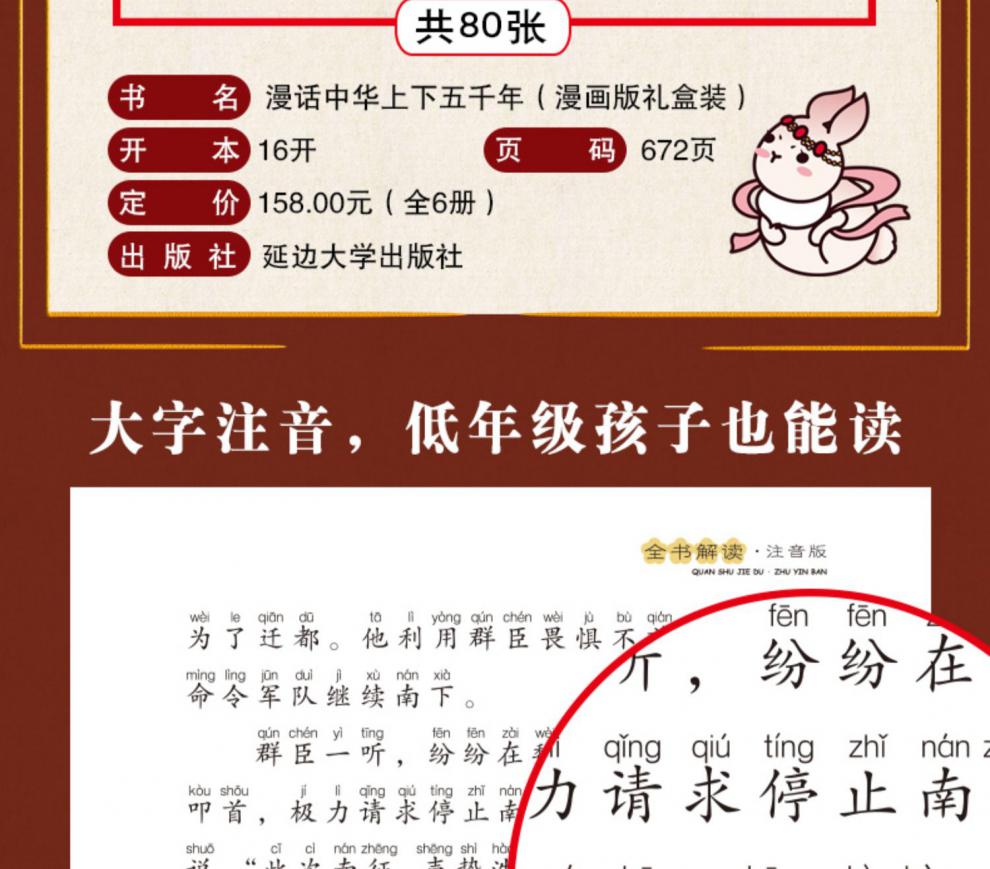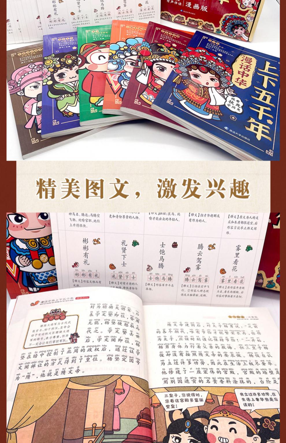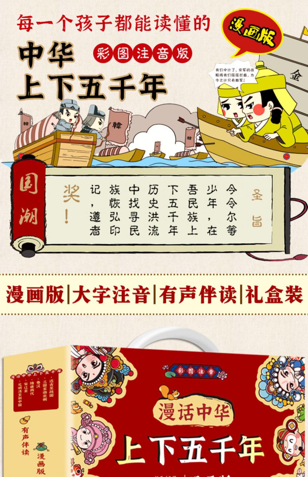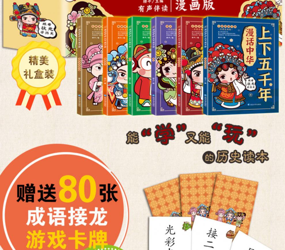 【5-9岁】《漫话中华上下五千年》(全6册)漫画版礼盒装 每一个孩子都读得懂的中华上下五千年 有声伴读 赠送80张成语接龙游戏卡牌