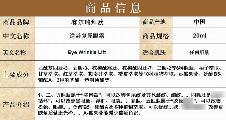 赛瑞 | 抗皱淡纹眼霜(原名逆龄复原眼霜) 20ml | 滋养眼周肌肤 改善松弛 缓解眼袋 提拉眼肌 抚平细纹