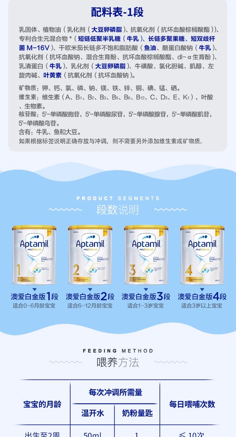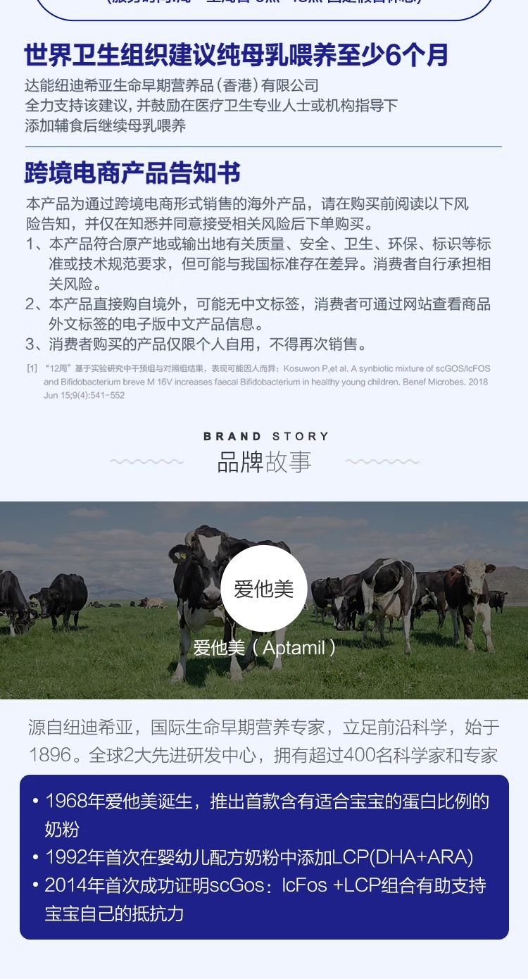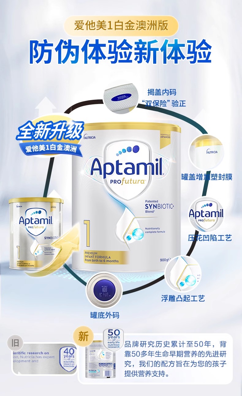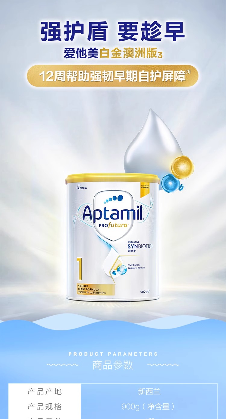 【中欧班列精选】澳洲版爱他美白金全新升级加量DHA叶黄素配方奶粉1段900g0-6月