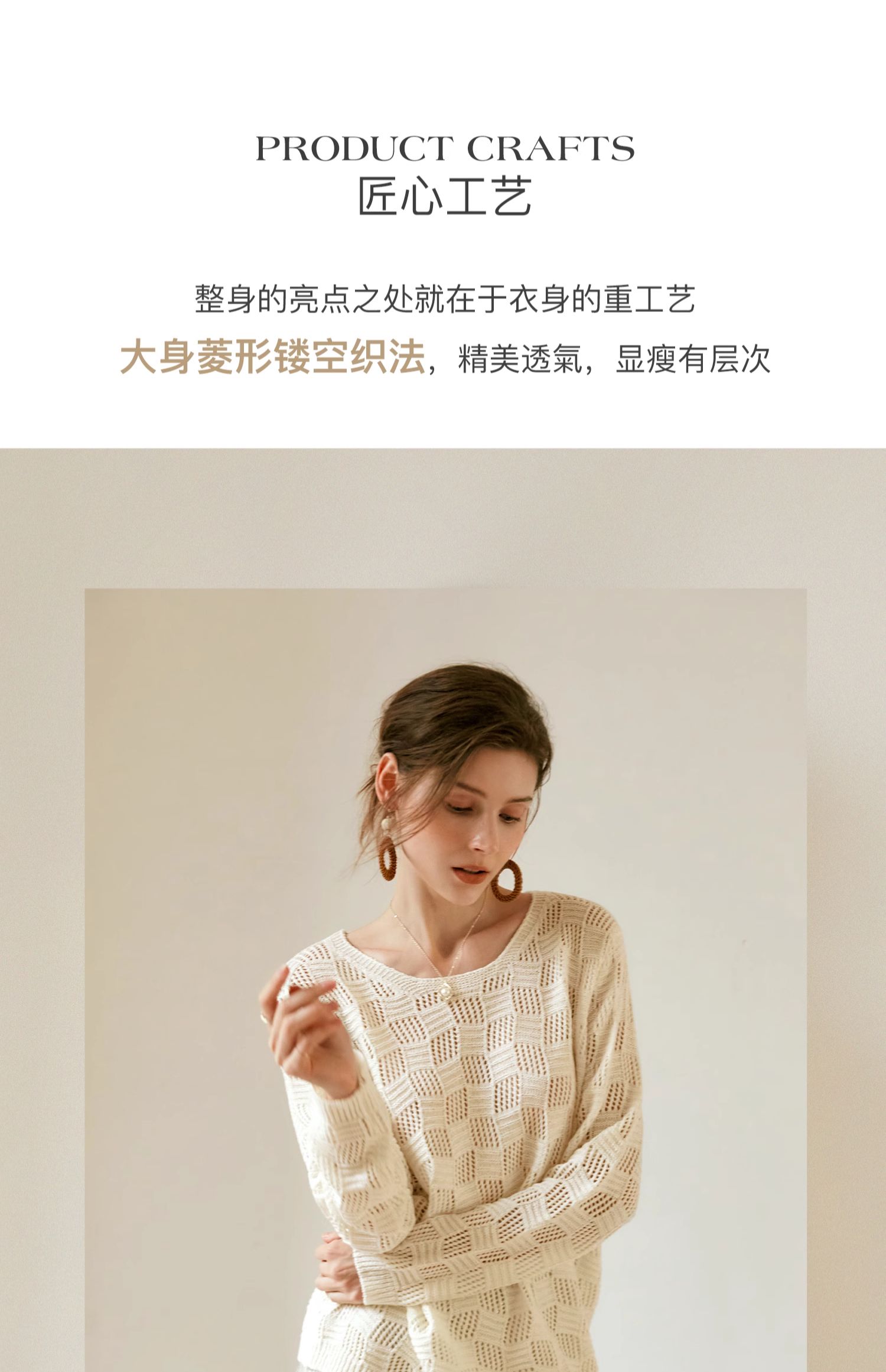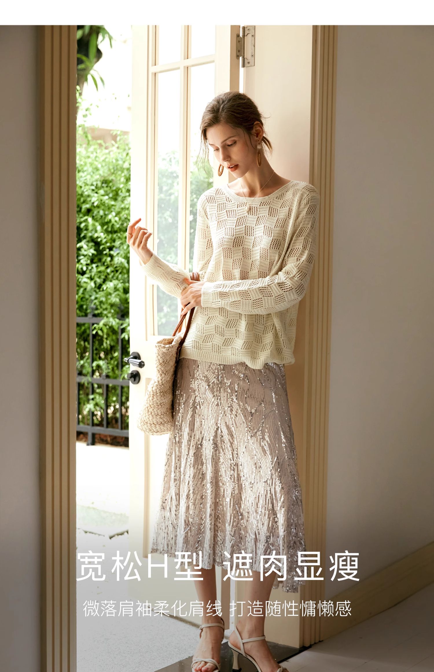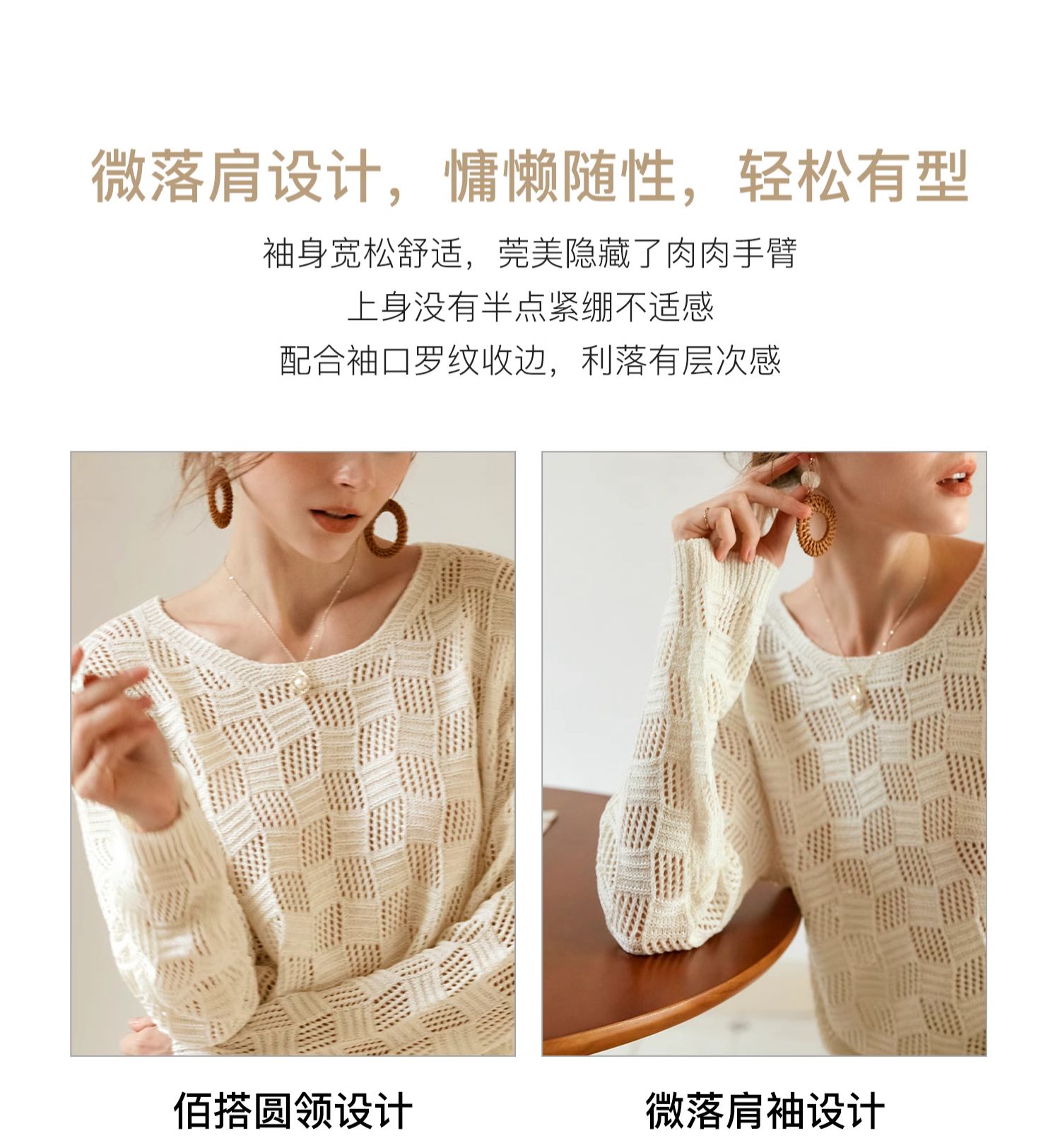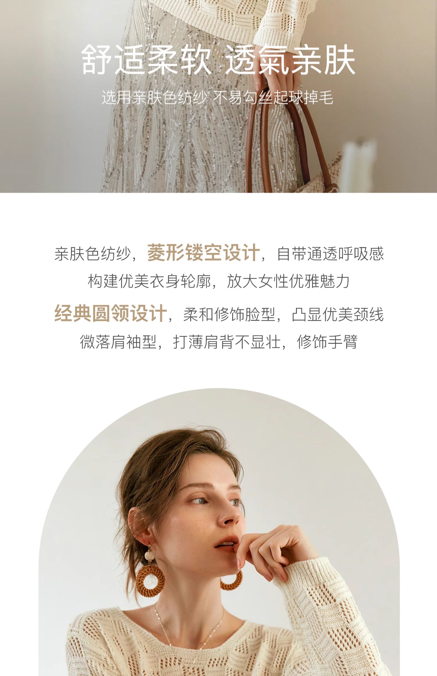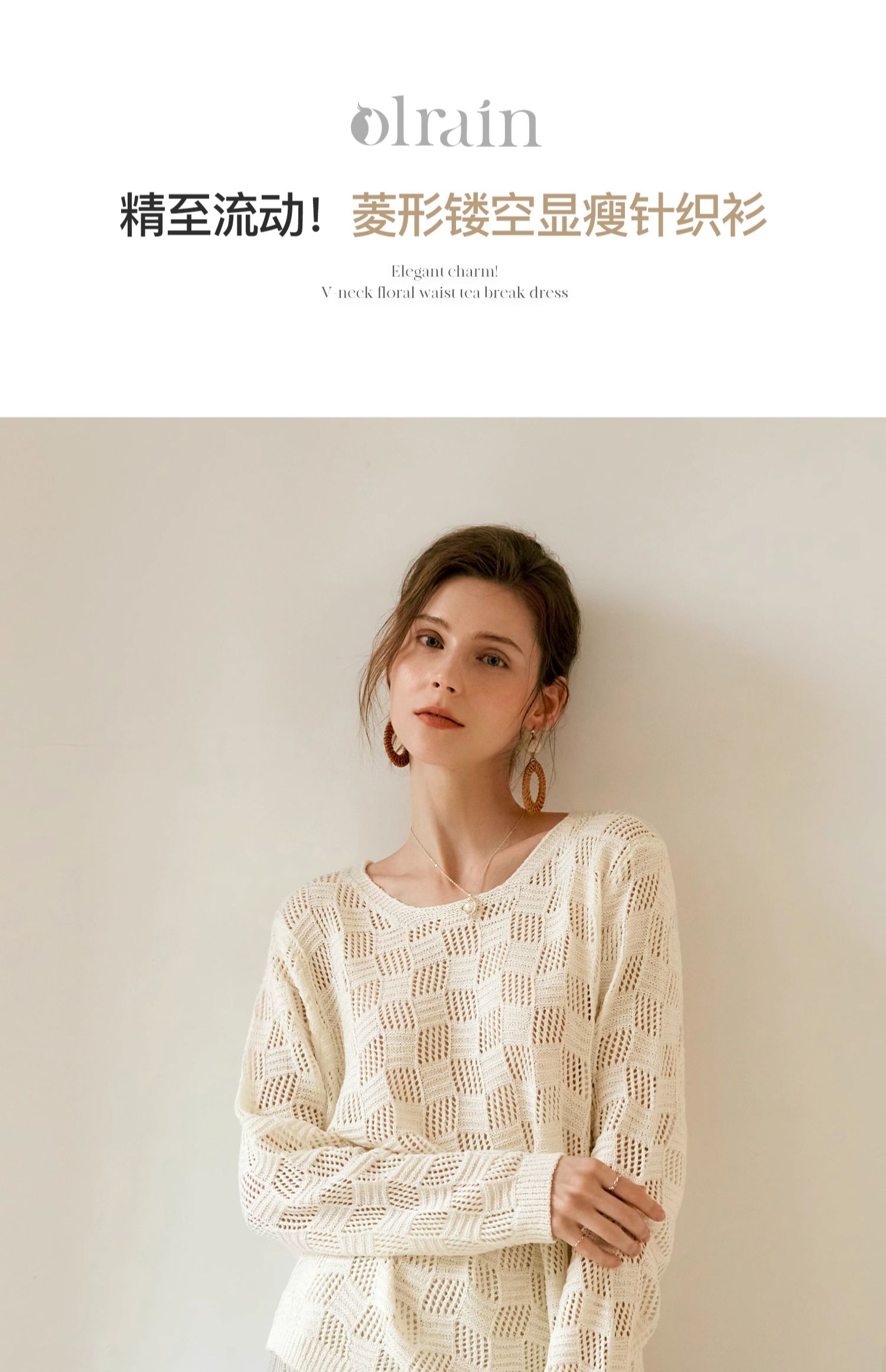 OLrain欧芮儿法式慵懒针织衫女早秋2024新款宽松镂空薄款套头上衣