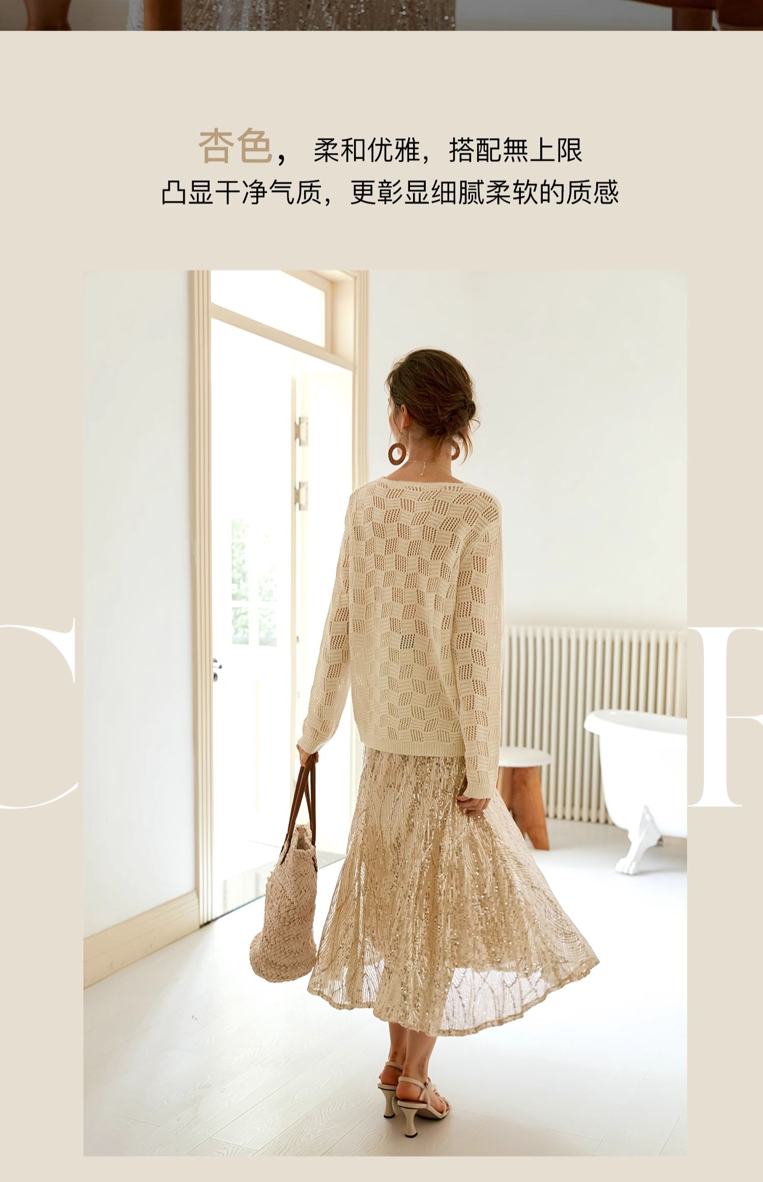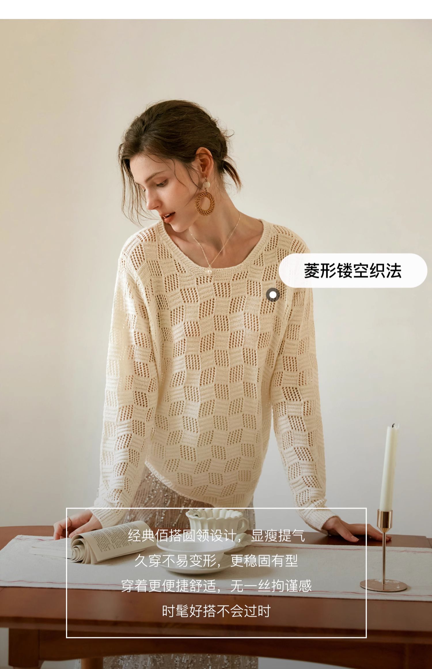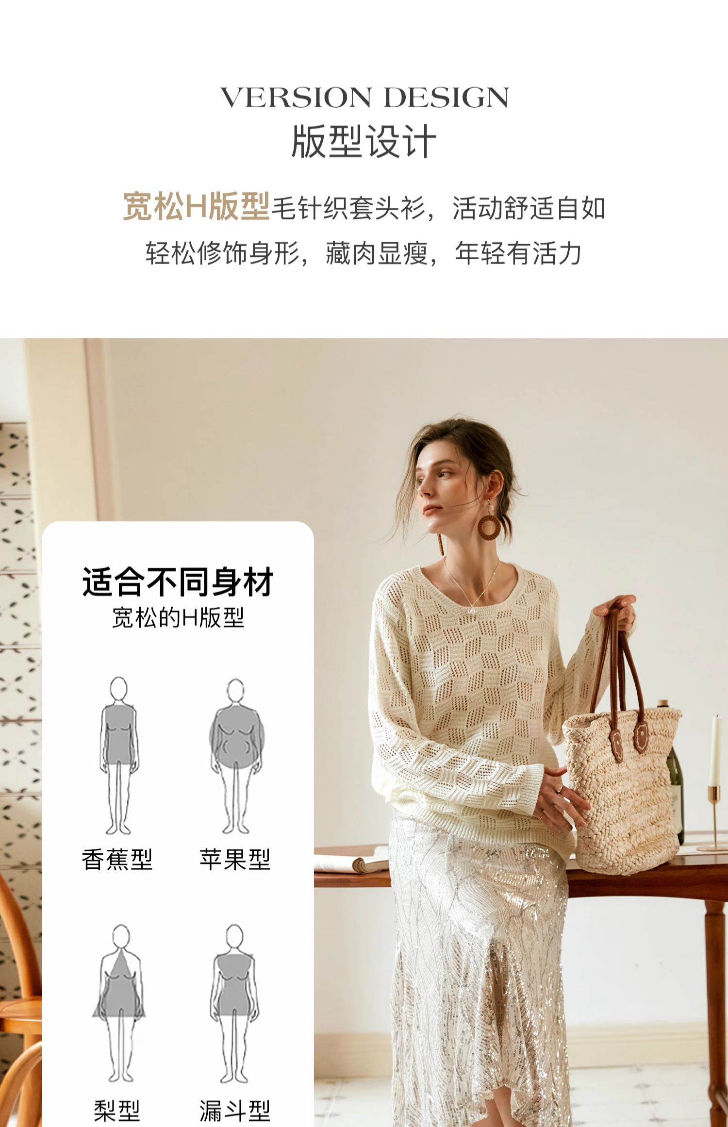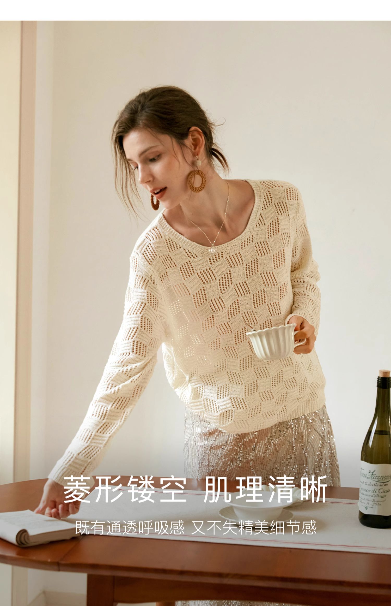 OLrain欧芮儿法式慵懒针织衫女早秋2024新款宽松镂空薄款套头上衣