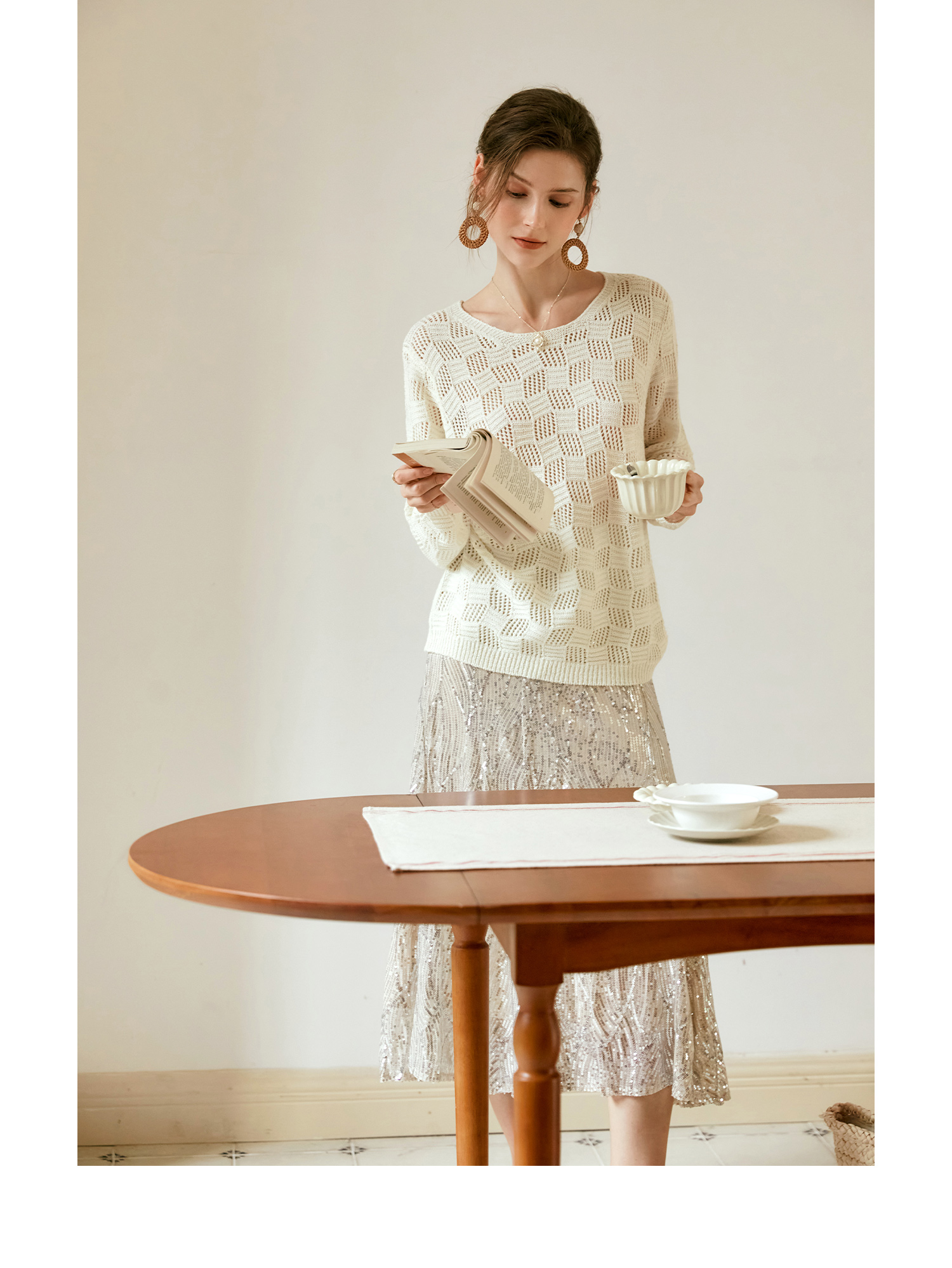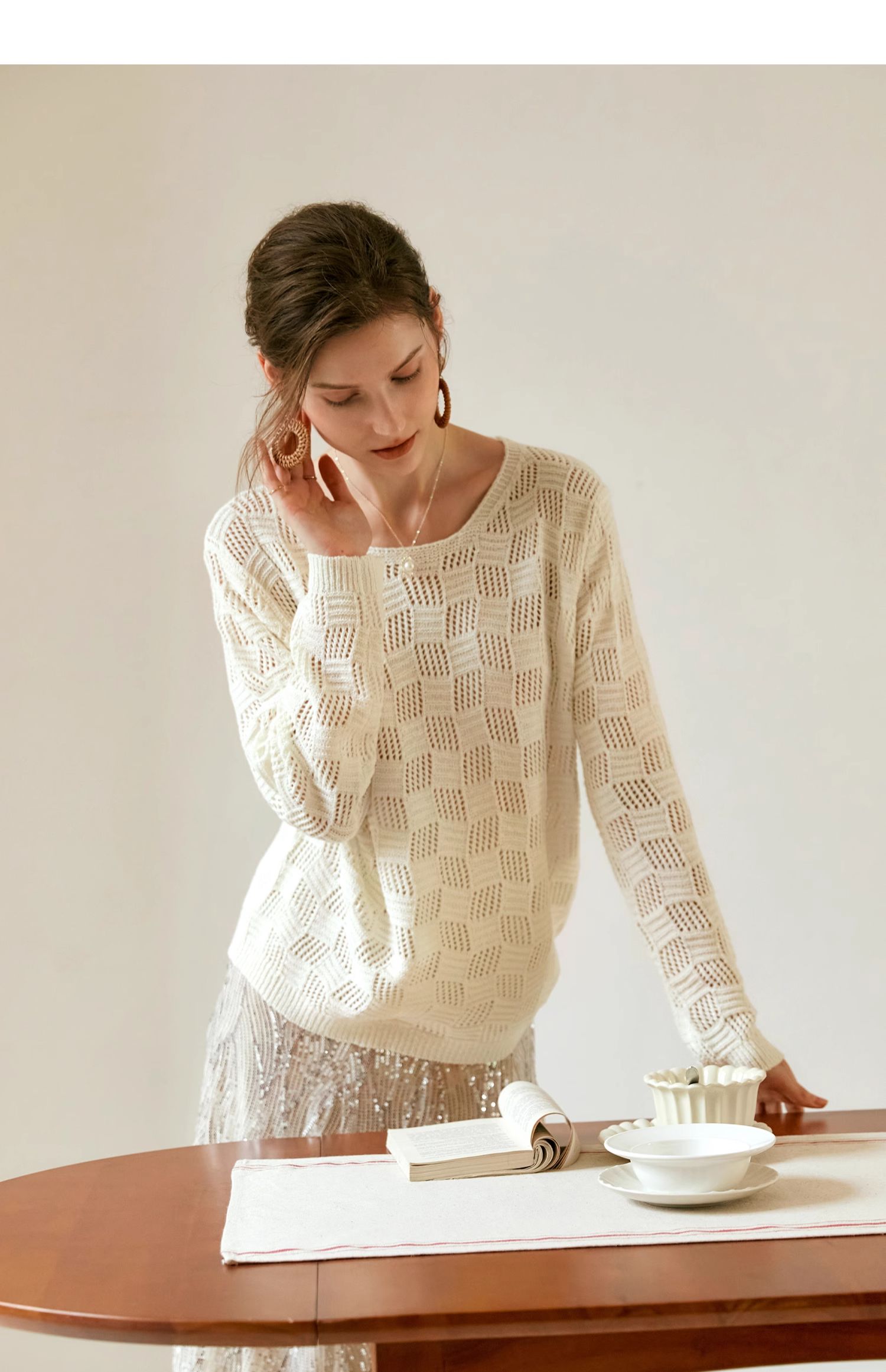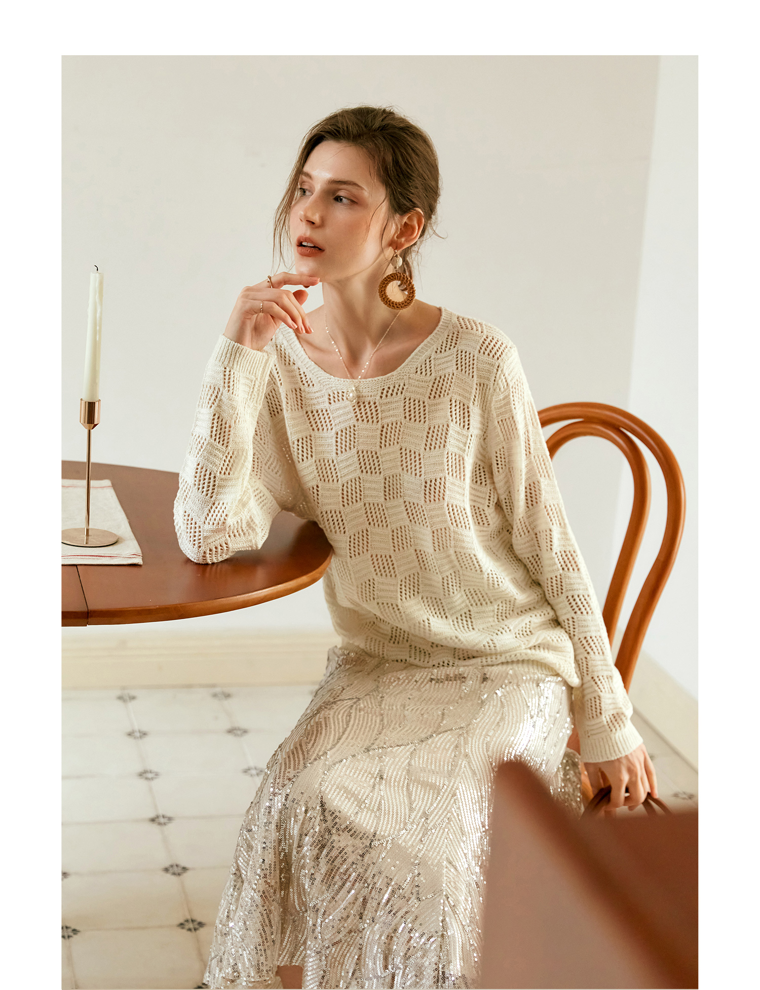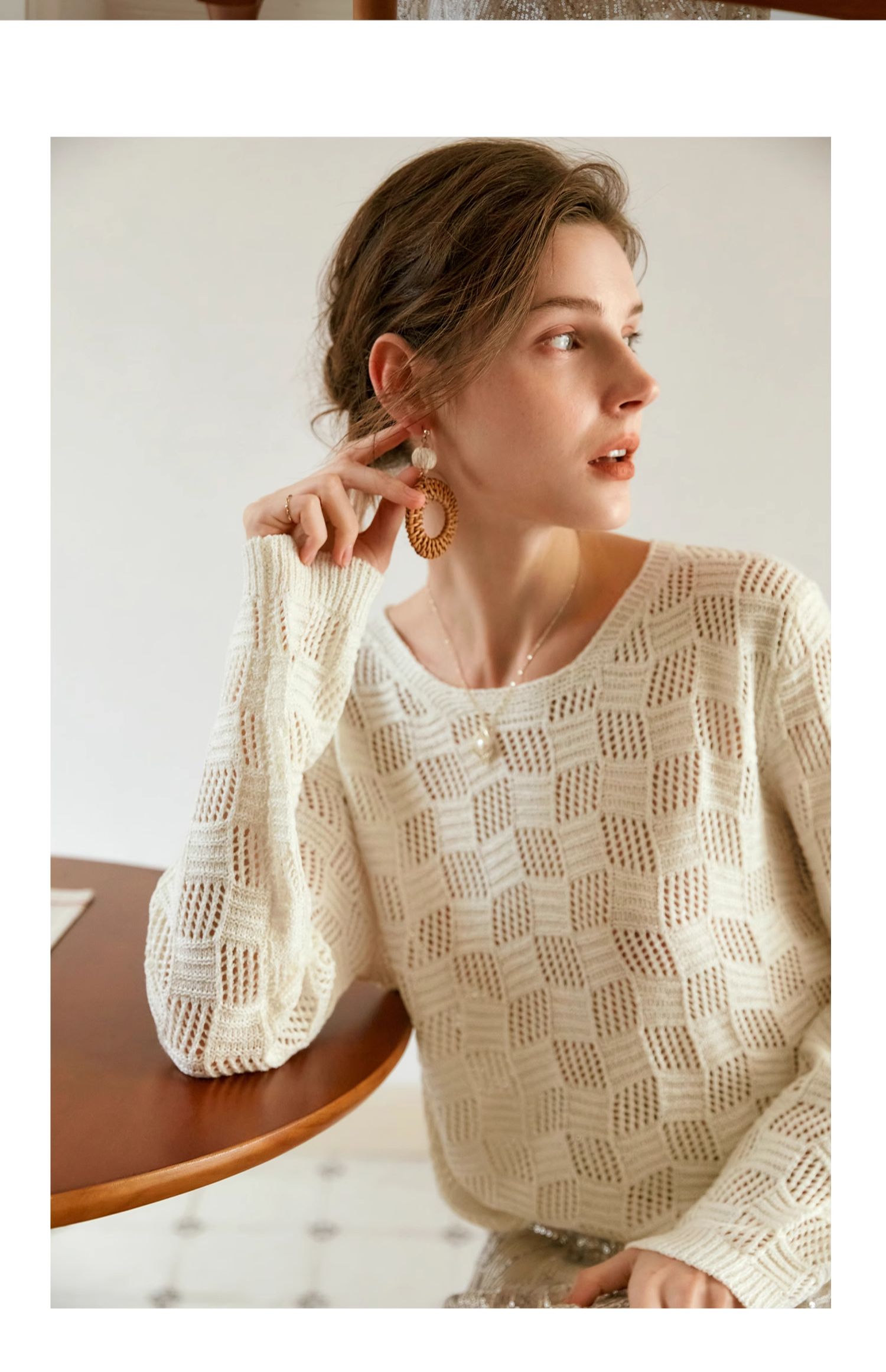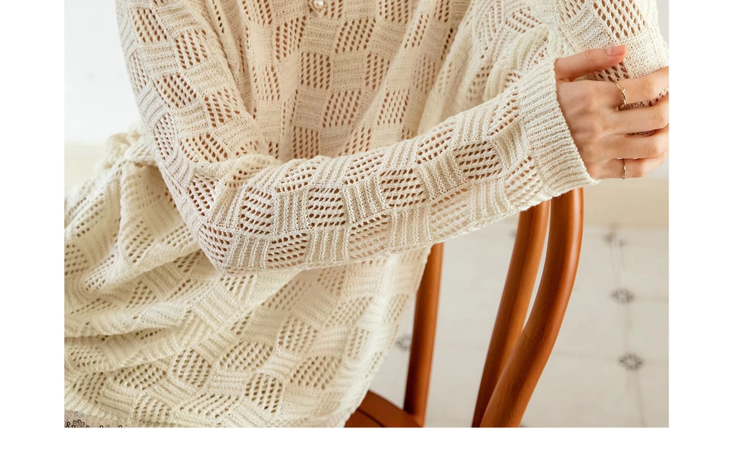 OLrain欧芮儿法式慵懒针织衫女早秋2024新款宽松镂空薄款套头上衣