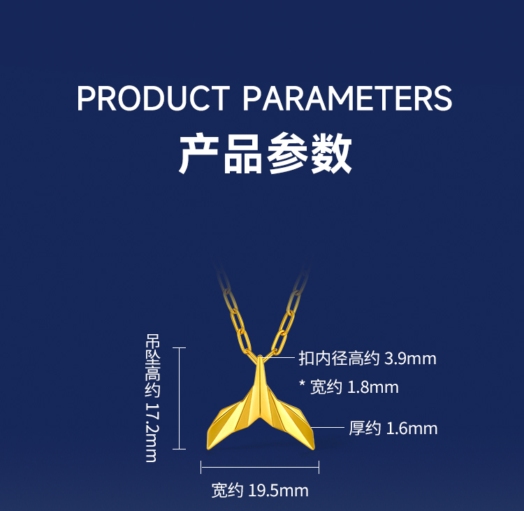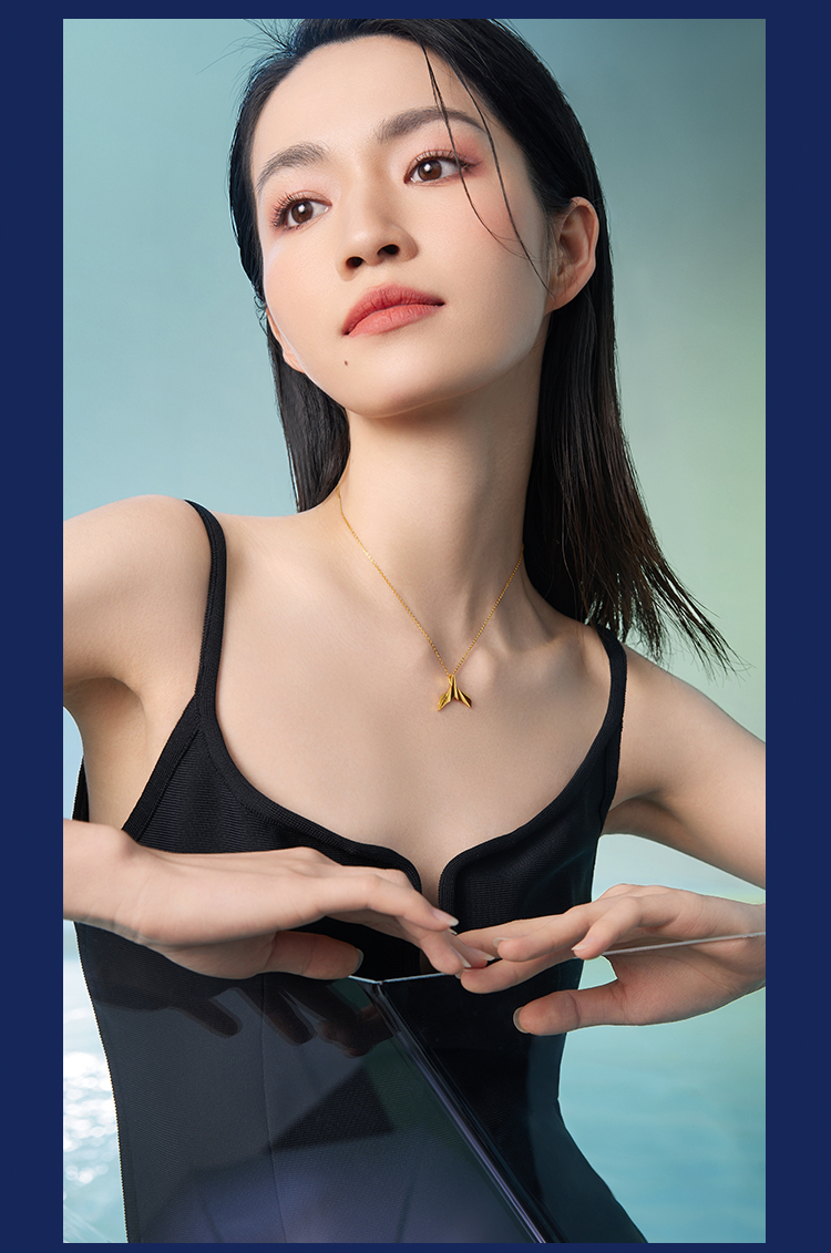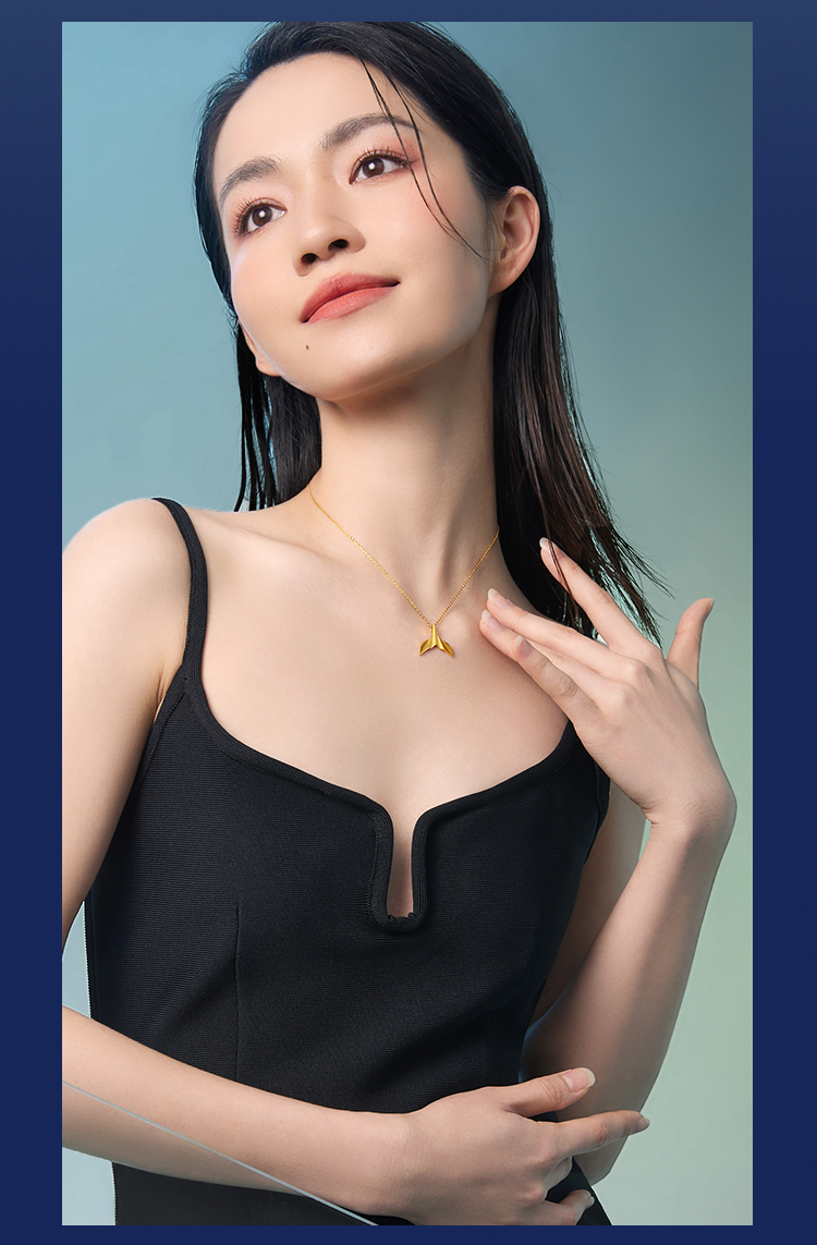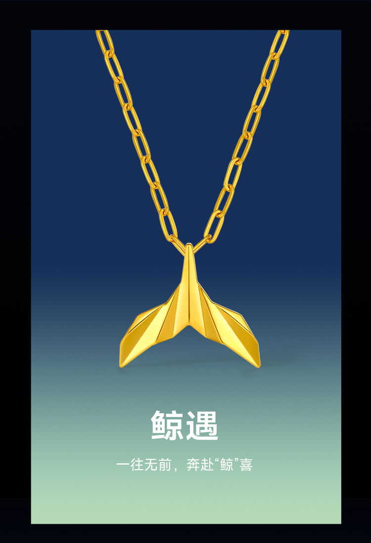 周六福黄景瑜同款黄金吊坠鲸遇瑜见系列计价足金鲸鱼尾颈饰