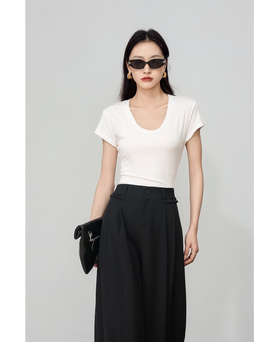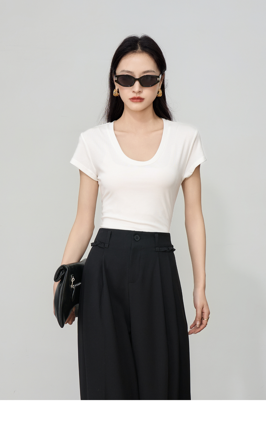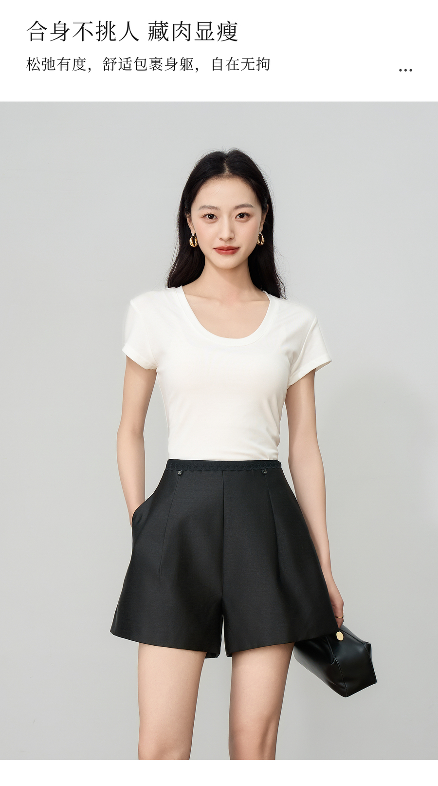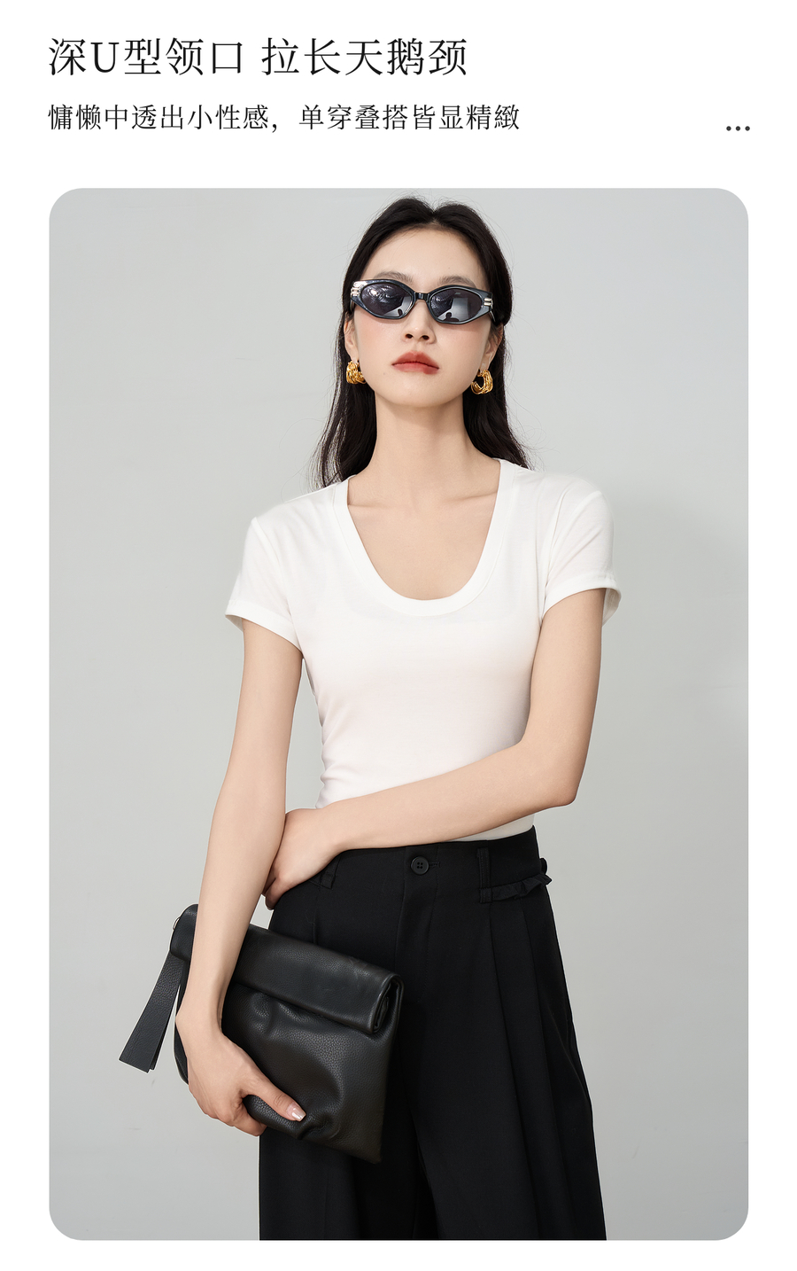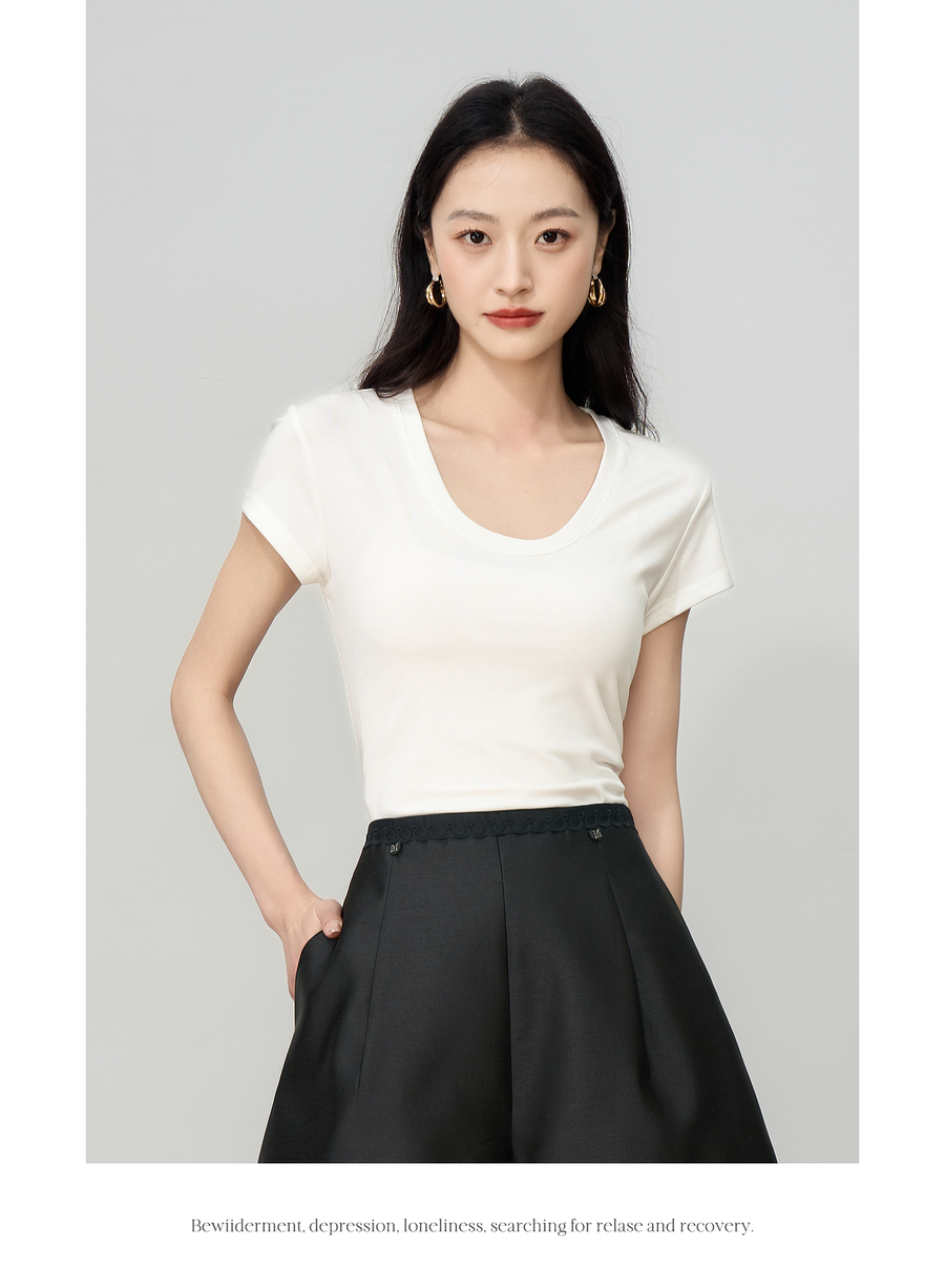 OLrain欧芮儿白色U领正肩百搭显瘦短袖T恤夏季2025新款小个子上衣