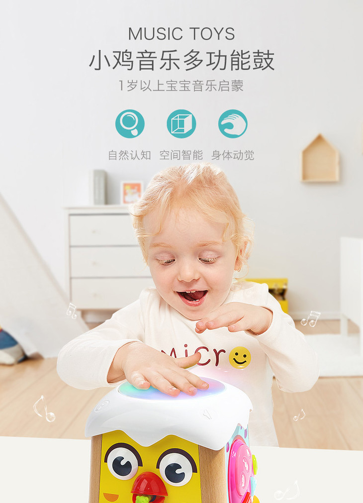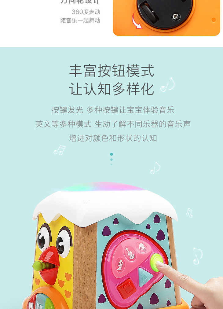 【1岁以上宝宝音乐启蒙】小鸡音乐多功能鼓 儿童小孩宝宝手敲拍打鼓六面体音乐益智玩具