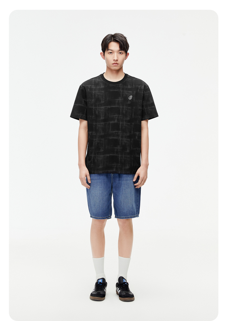 GXG男装 265g重磅字母绣花简约时尚圆领短袖T恤男士 夏季新品
